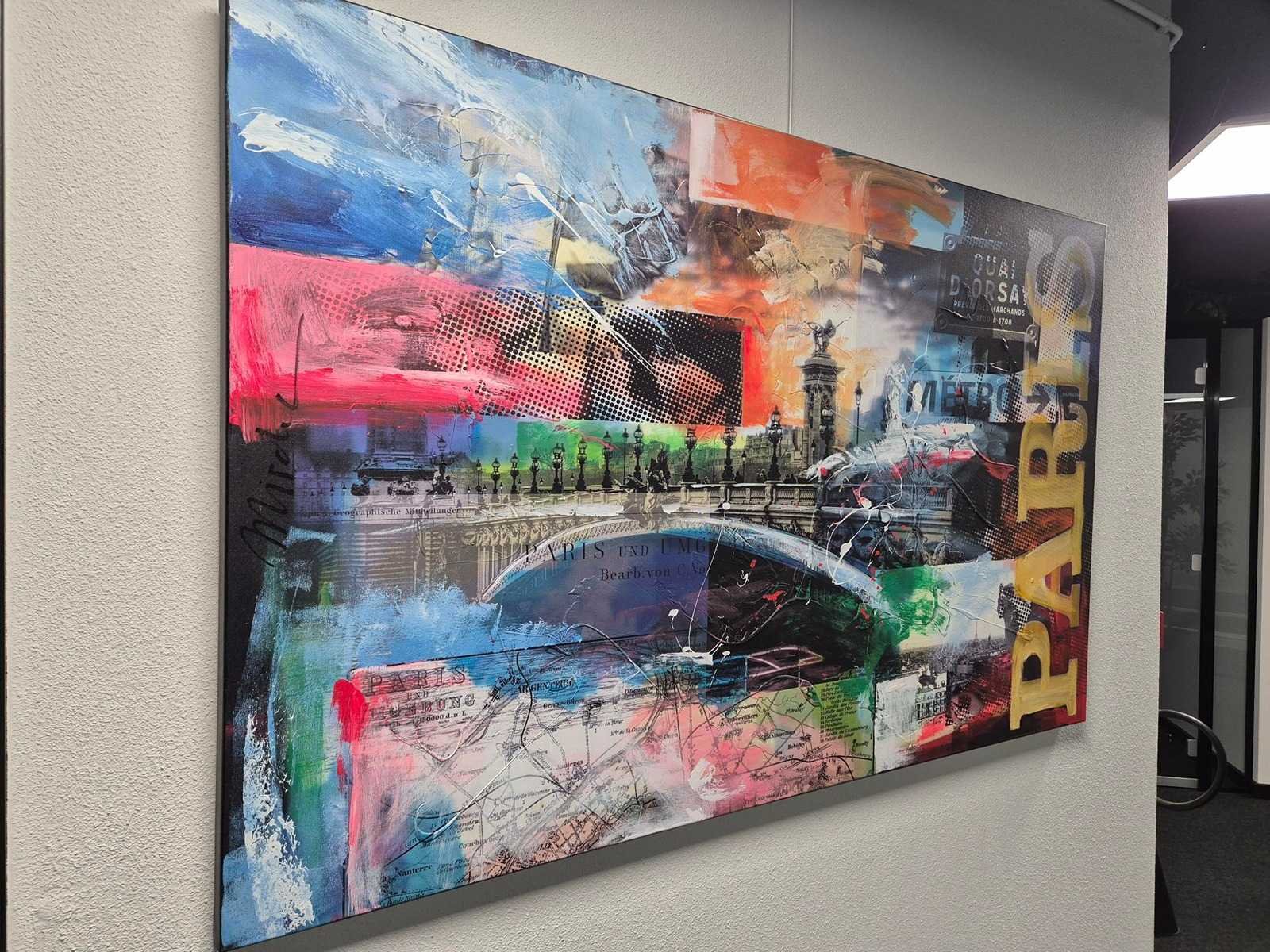Mischa: heeft meerdere periodes doorgebracht in diverse werelddelen; vandaar dat zijn werk in galeries op de gehele aardbol te vinden zijn. Hij schildert en fotografeert in een ware PopArt stijl, waarbij zijn iconische figuren, Comics, maar ook steden en landschappen een rol spelen. De techniek bestaat meestal uit met relief voorbewerkte doeken, prints, plaksels en tenslotte acrylverf. Een energieke Vibe, volop kleur en power; dat is de uitstraling van de kunstwerken van Mischa. Titel van werk: Paris Techniek: Mixed media/acryl op doek Hoogte: 100cm Breedte: 60cm