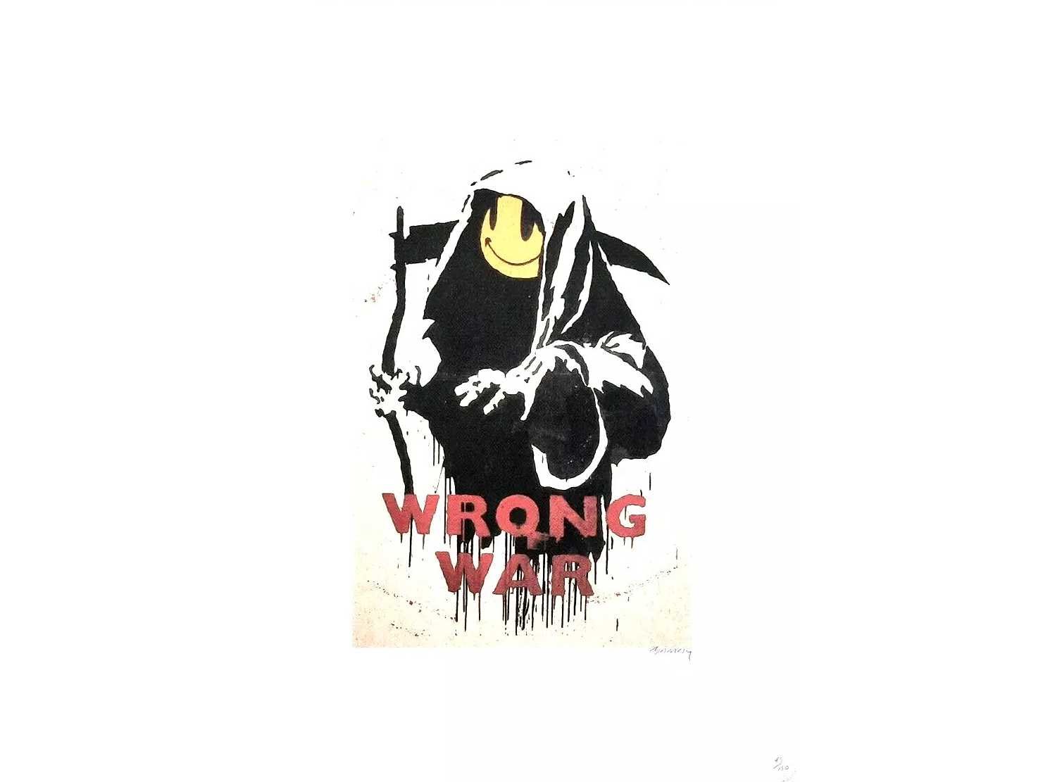 Gesigneerd en genummerd met potlood, Gelicentieerd met reliëfstempel POW, Certificaat Stima Titel van werk: Wrong War Techniek: Litho Oplage: 45/150 Hoogte: 70cm Breedte: 50cm