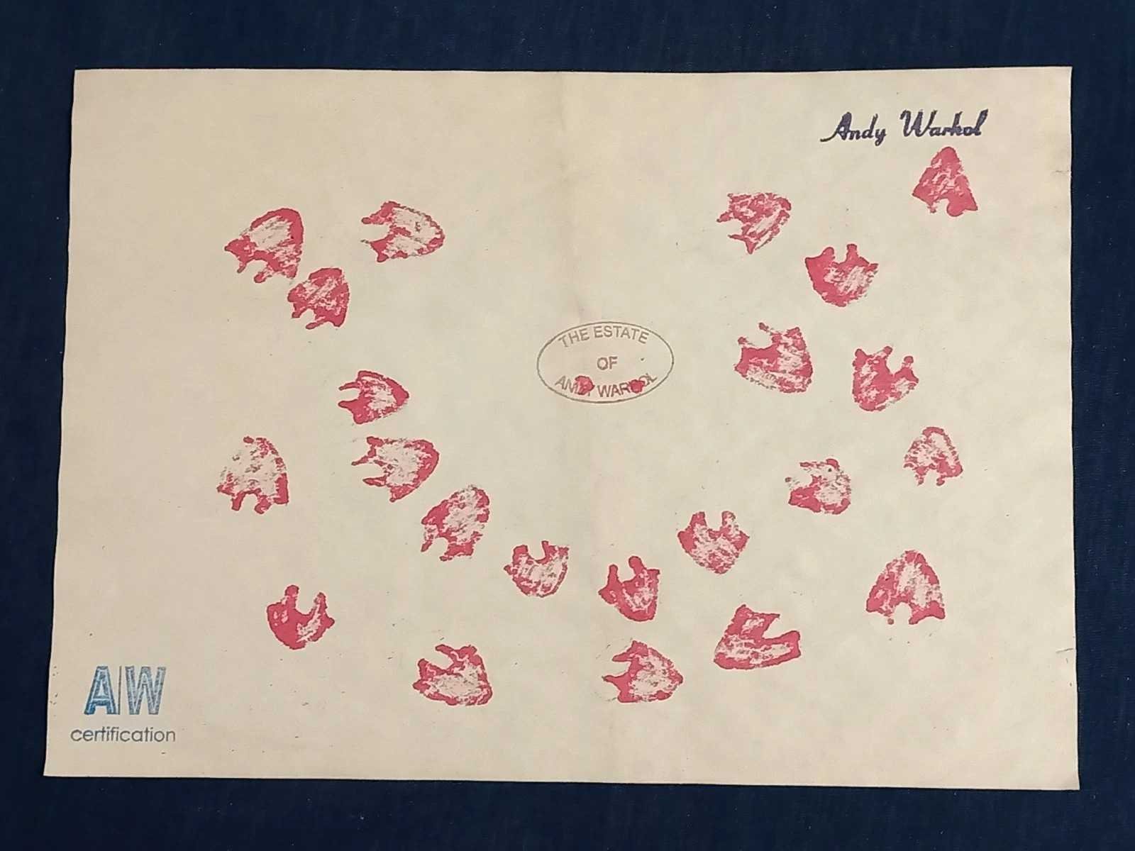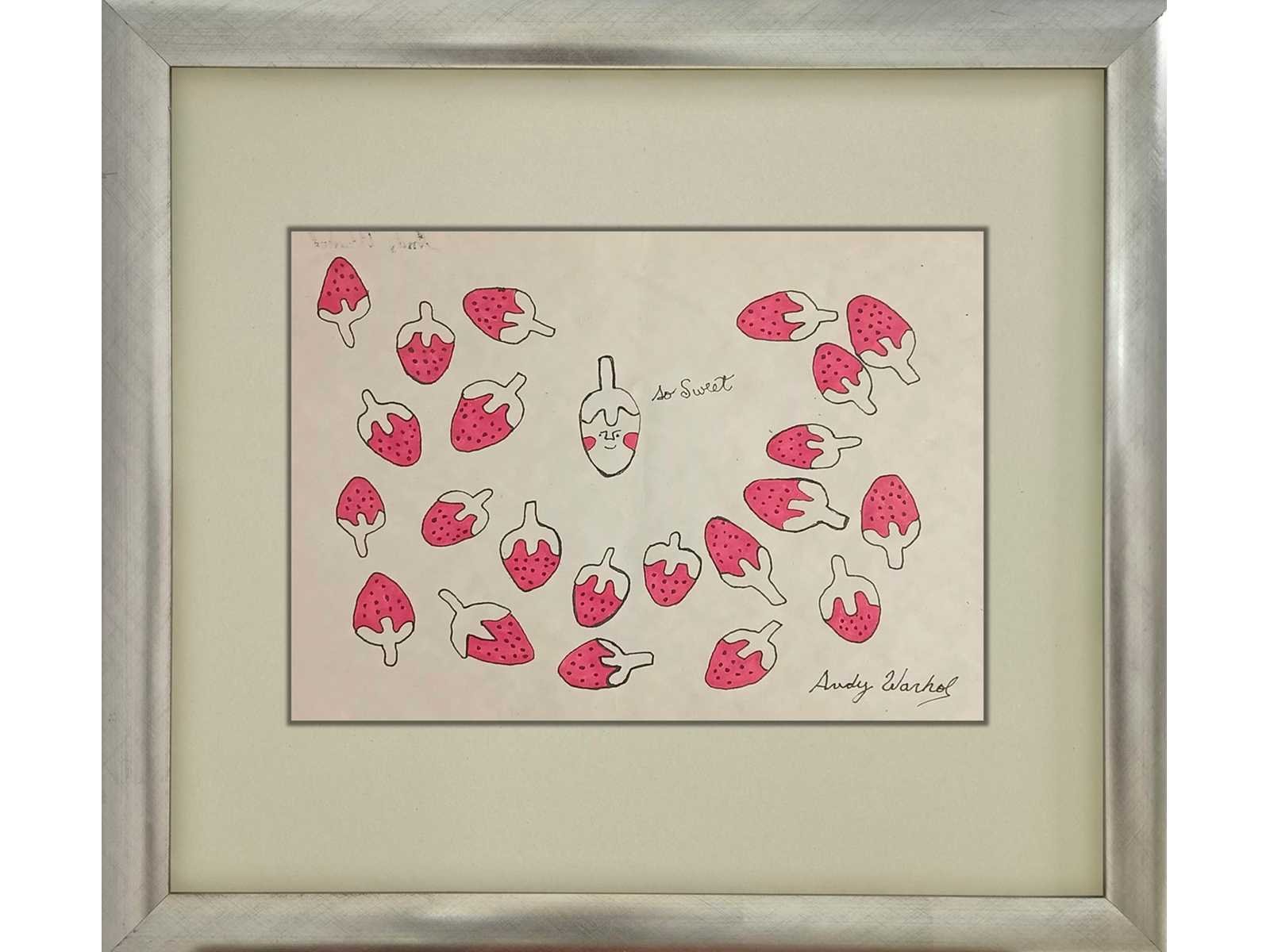 Formaat kunstwerk 21x30 cm, Incl.lijst 40x50 cm, Gesigneerd in het kunstwerk, Estate Andy Warhol, Gestempeld achterzijde Kunstenaar: Andy warhol Techniek: tekening op papier Gesigneerd: ja Hoogte: 40cm Breedte: 50cm
