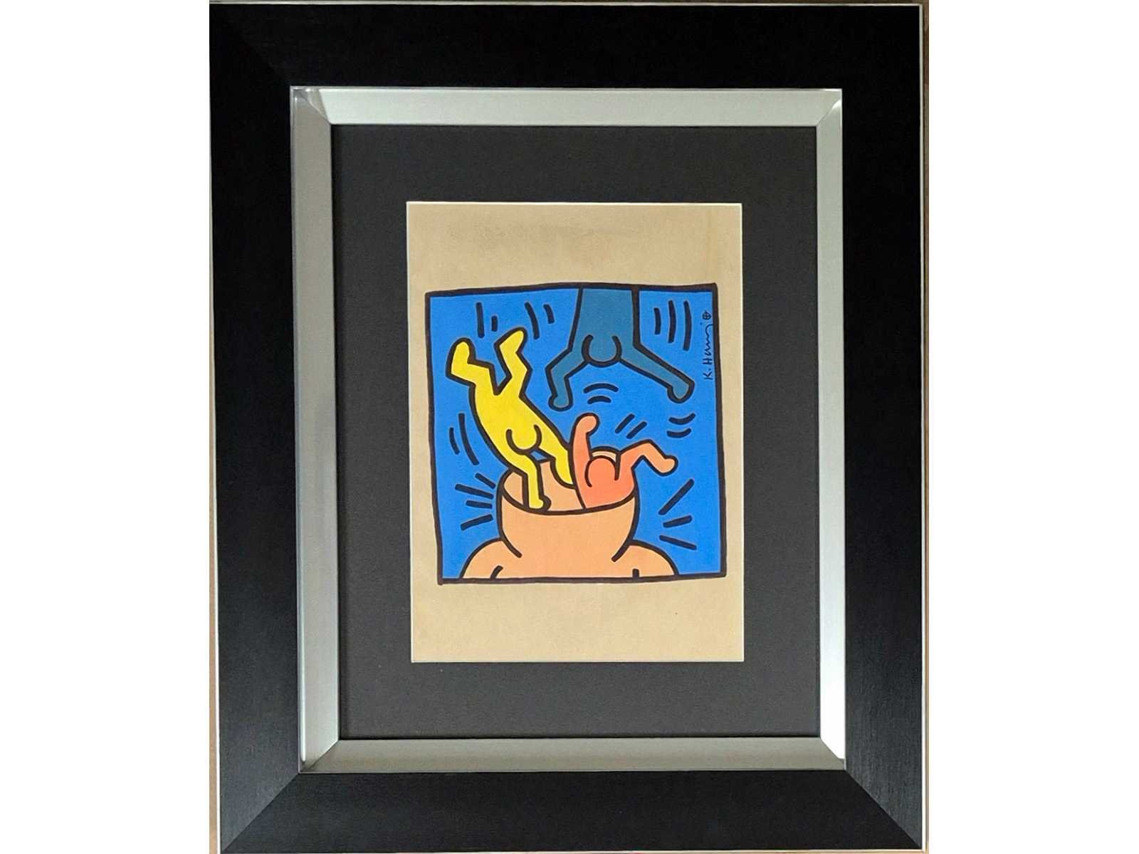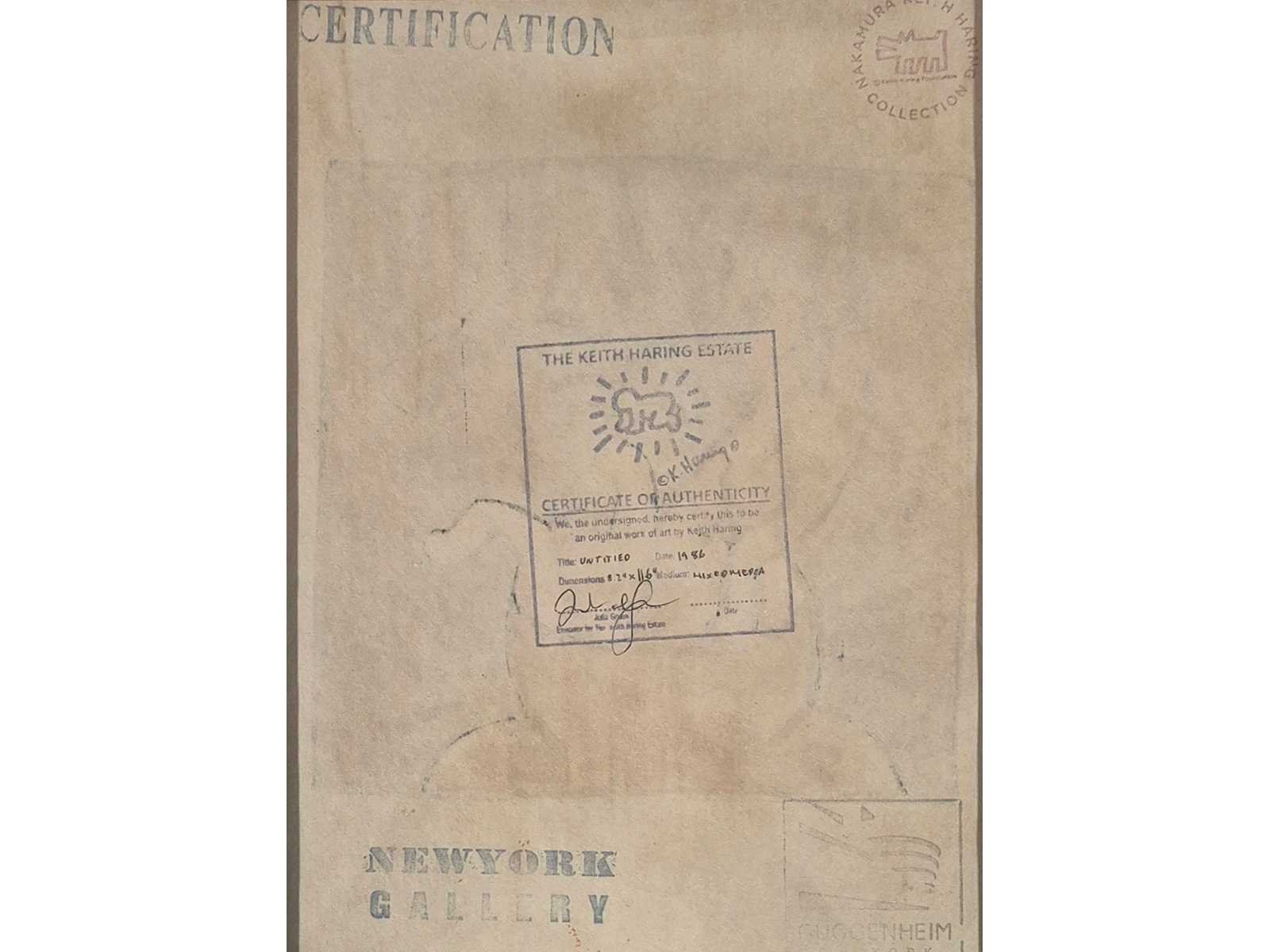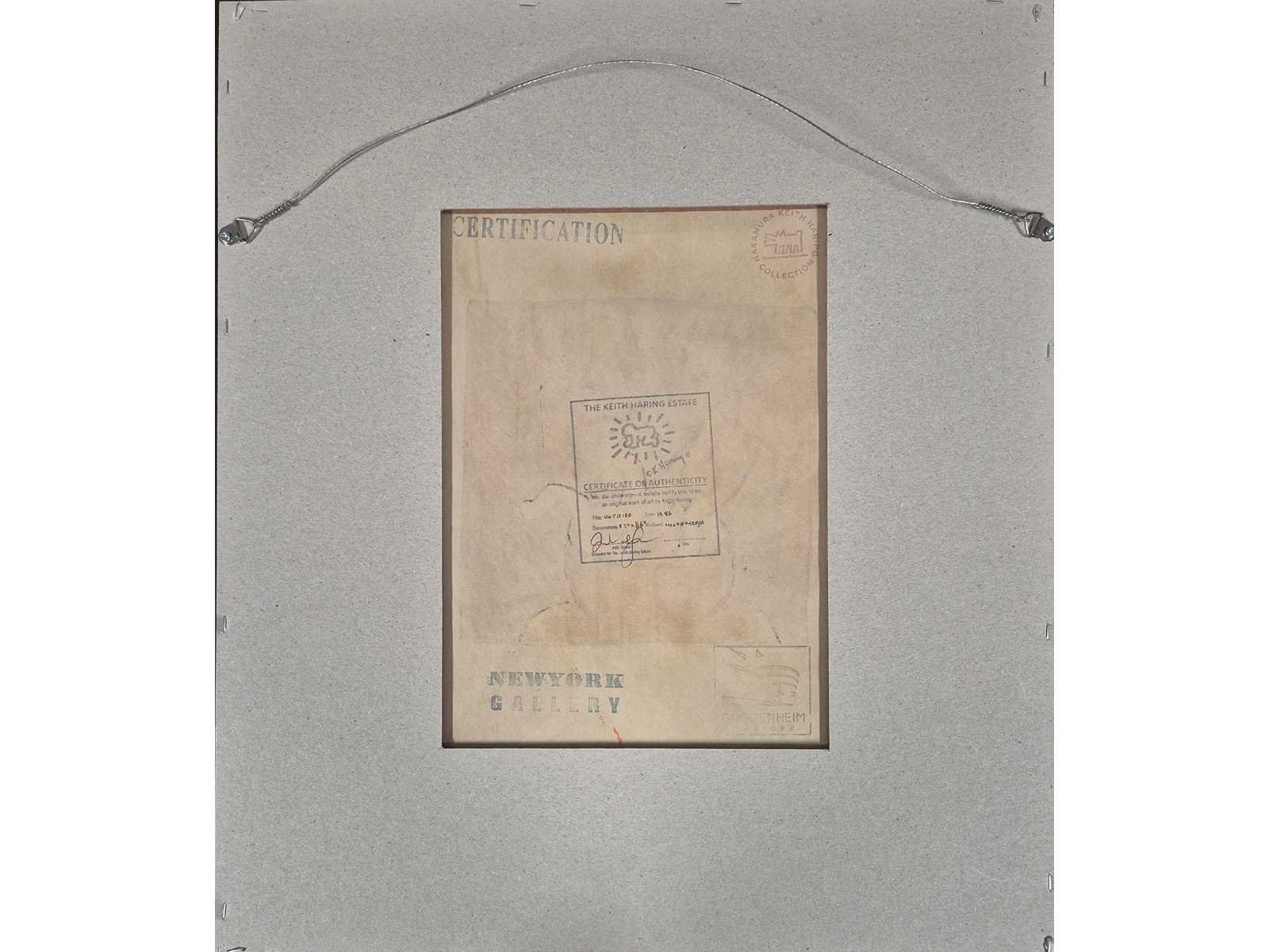 Gesigneerd op het kunstwerk, Certificatie Keith Haring Estate, Julia Gruer, Inclusief lijst. Techniek: Gouache Hoogte: 50cm Breedte: 45cm
