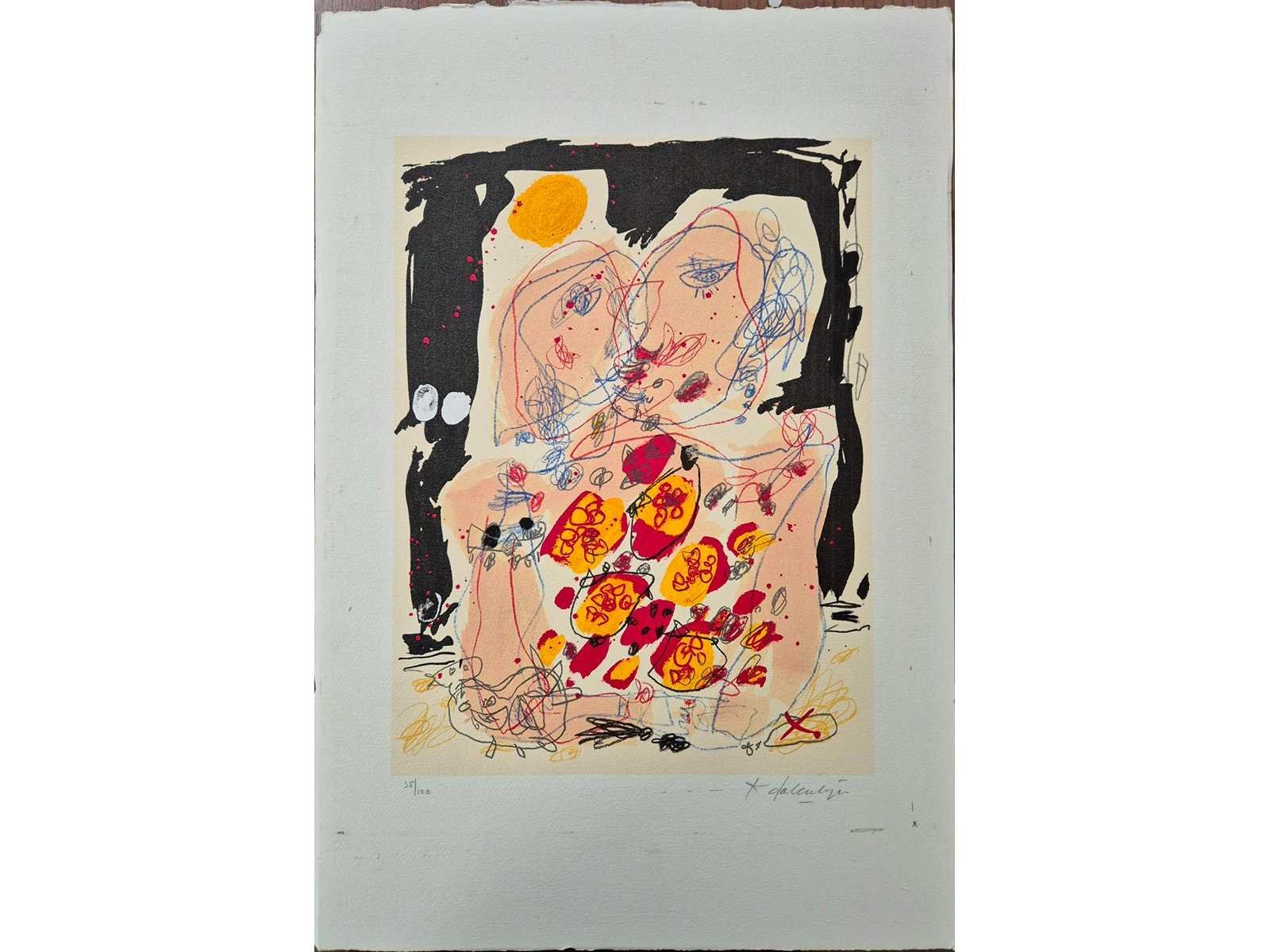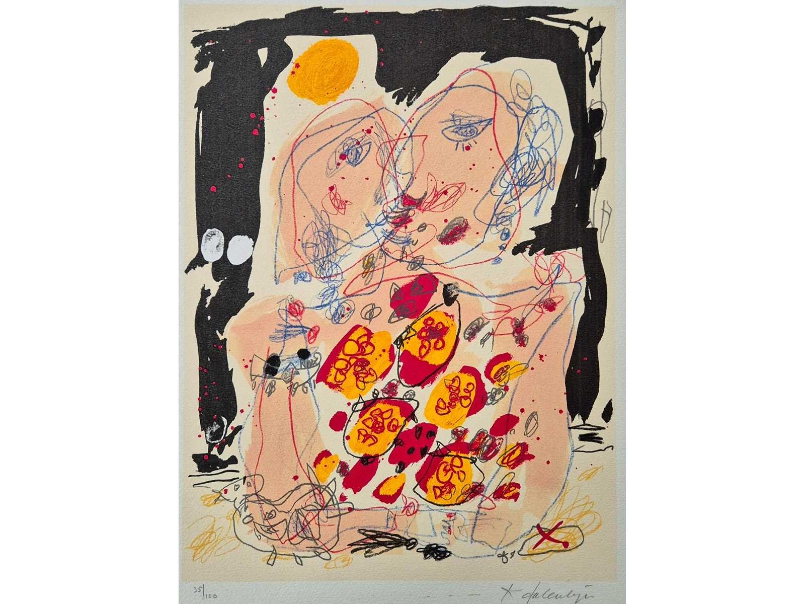 Kees Salentijn: (Amsterdam 1947) is schilder, collagist en tekenaar. Salentijn volgde de opleiding aan de Amsterdamse Rijksacademie van beeldende kunsten, afdeling vrije schilderskunst bij Otto de Kat (1907) en aan de Gerrit Rietveld Academie. Salentijn richt zich in zijn werk op onbewuste spontane creatie en voelt zich verwant met diverse stromingen die dat ook doen waaronder Cobra. Een andere belangrijke invloed is zijn liefde voor het Spaanse leven: stierenvechten, stranden, feesten en landschappen die typisch voor Spanje zijn zijn dan ook alom aanwezig in zijn werk. Techniek: Zeefdruk Oplage: 35/100 Hoogte: 59cm Breedte: 40cm