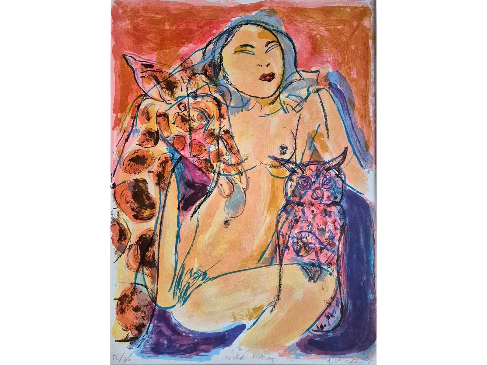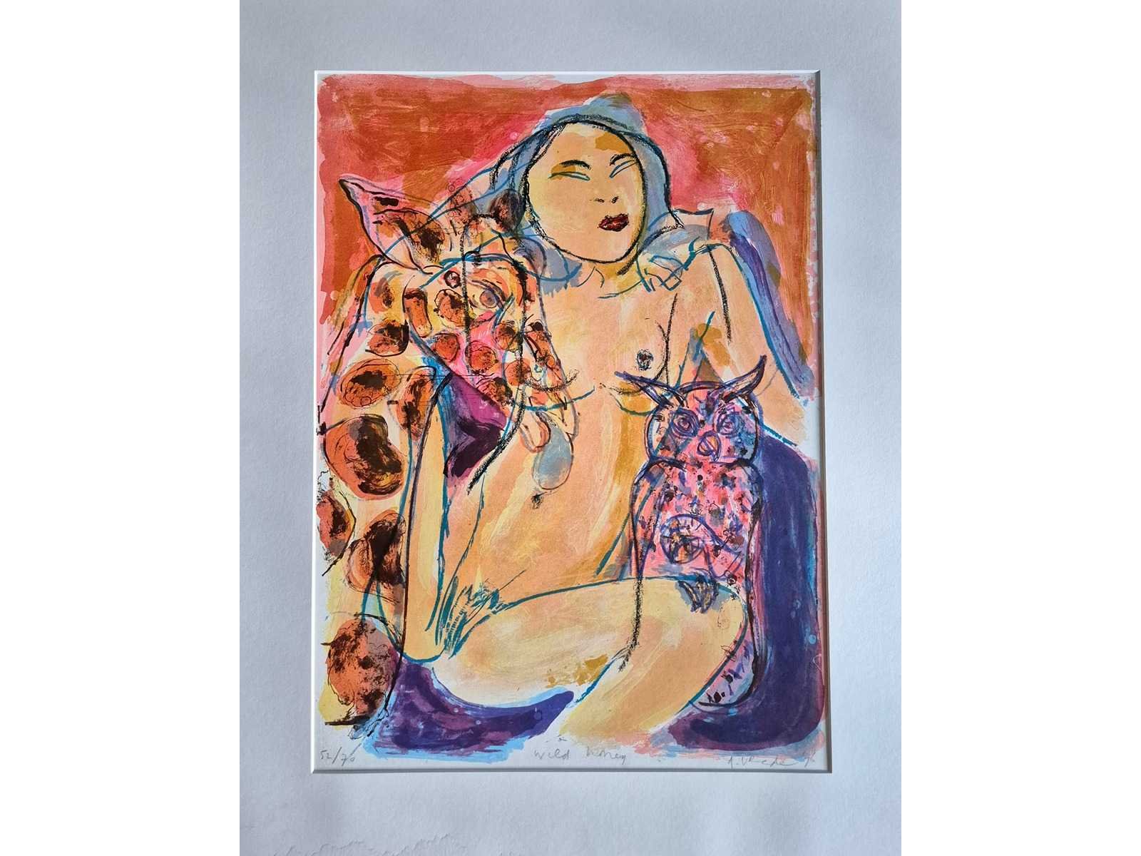 Anton Vrede: (Willemstad (Curaçao), 6 december 1953) is een Nederlands beeldend kunstenaar van Antilliaans-Surinaamse afkomst, die werkt als schilder, graficus, illustrator en beeldhouwer in een expressionistische, figuratieve, soms abstraherende stijl.In het werk van Anton Vrede spelen dierfiguren veelal een hoofdrol, waarbij de verschillende figuren hun eigen betekenis hebben.[1] In zijn schilderijen en grafiek vertrouwt hij met vlotte penseelstreken een naïeve sprookjesachtige wereld aan het doek of papier toe. Titel van werk: Wild Honey Techniek: Zeefdruk Oplage: 52/70 Hoogte: 95cm Breedte: 75cm