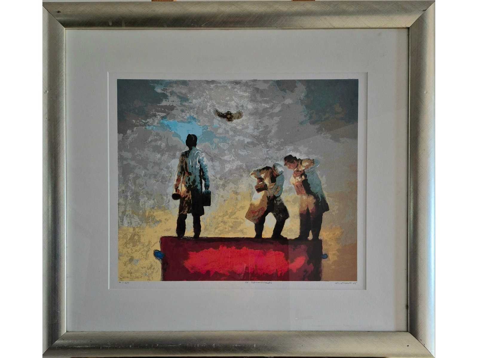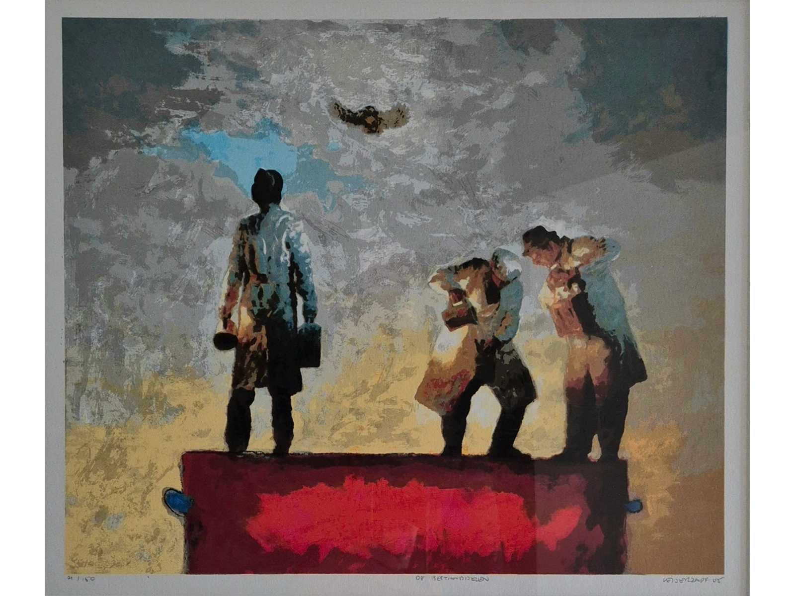 Compleet ingelijst met passe partout. Techniek: Zeefdruk Oplage: 21/150 Hoogte: 63cm Breedte: 70cm