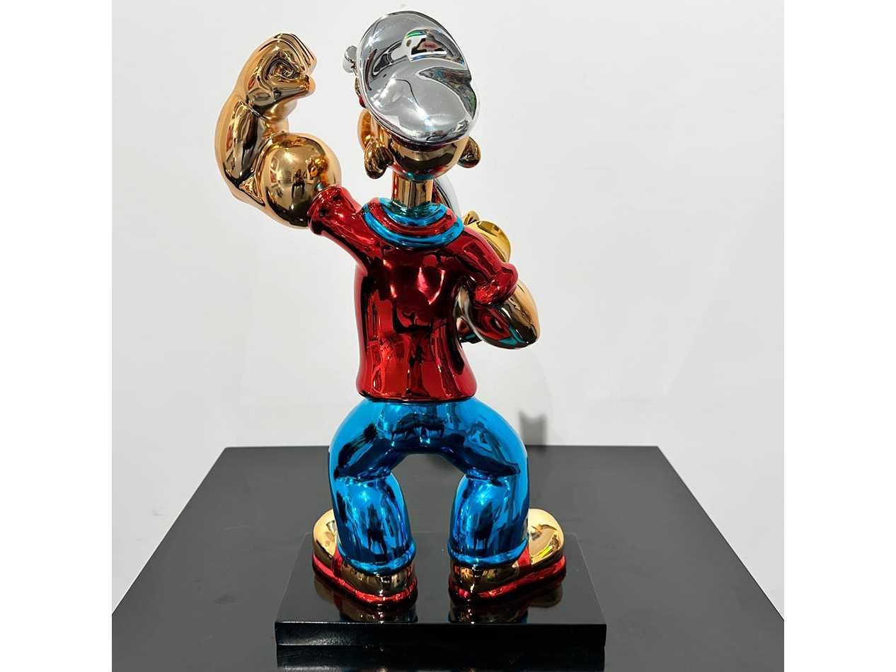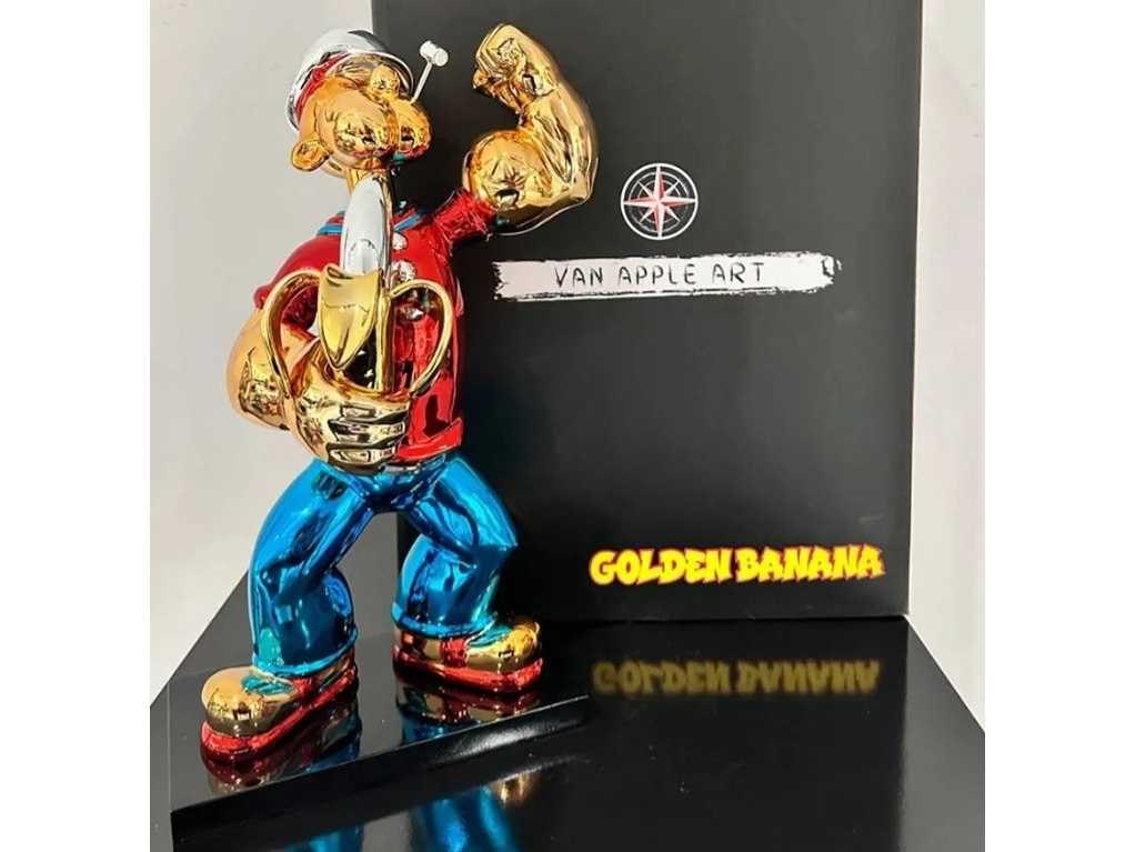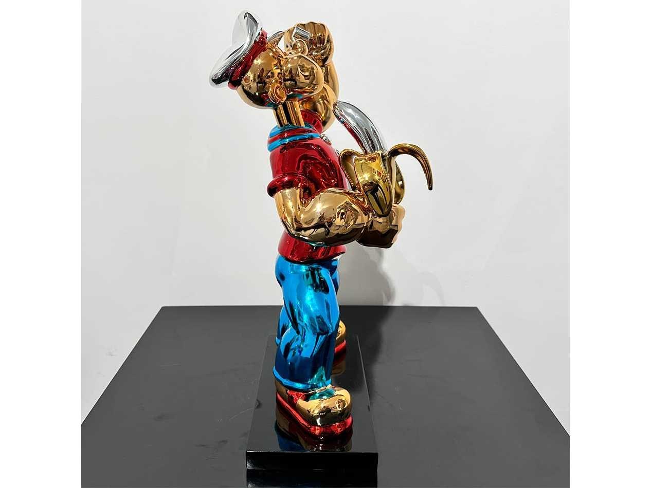 De Popeye is handgesigneerd en wordt geleverd in een zwarte ArtBox, Medium Uitvoering Titel van werk: Popeye Banana Techniek: Chroom & Hars Lengte: 42cm Breedte: 26cm Hoogte: 18cm