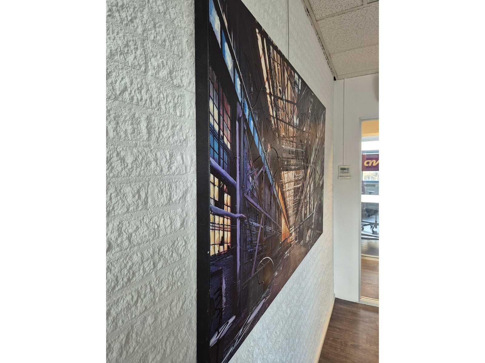 Mischa: heeft meerdere periodes doorgebracht in diverse werelddelen; vandaar dat zijn werk in galeries op de gehele aardbol te vinden zijn. Hij schildert en fotografeert in een ware PopArt stijl, waarbij zijn iconische figuren, Comics, maar ook steden en landschappen een rol spelen. De techniek bestaat meestal uit met relief voorbewerkte doeken, prints, plaksels en tenslotte acrylverf. Een energieke Vibe, volop kleur en power; dat is de uitstraling van de kunstwerken van Mischa. Techniek: Mixed media/acryl op doek Hoogte: 100cm Breedte: 160cm
