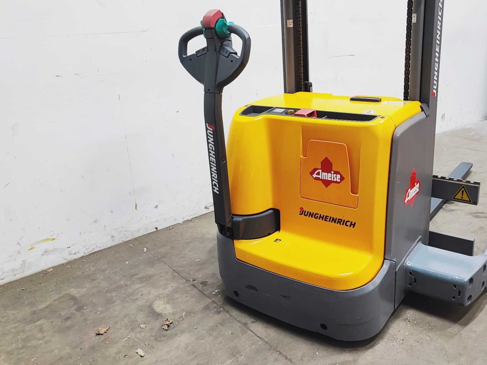 Jungheinrich EJC B16 elektro breedspoor stapelaar v.v. duplo mast Merk: Jungheinrich Type: EJC B16 Bouwjaar: 2017 Serienummer: 91615064 Hefvermogen: 1600kg Hefhoogte: 2400mm Lepellengte: 1600mm Afgelezen urenstand: 217 Eigen gewicht: 1200kg Minimale doorrijhoogte: 1710mm Totale afmeting L: 2700mm Totale afmeting Breedte: 1480mm Totale afmeting Hoogte: 1710mm Accu lader: true