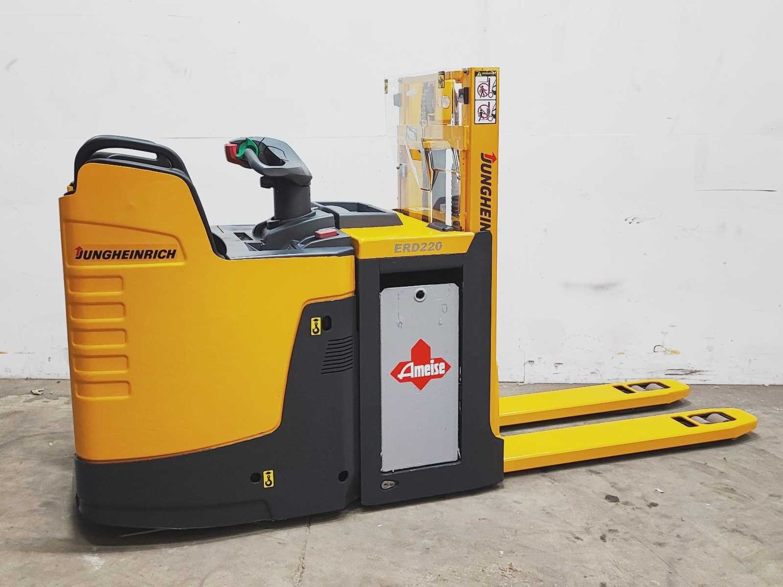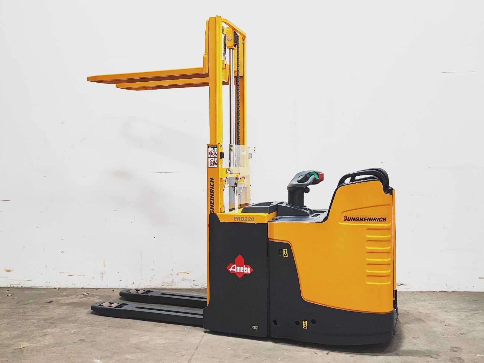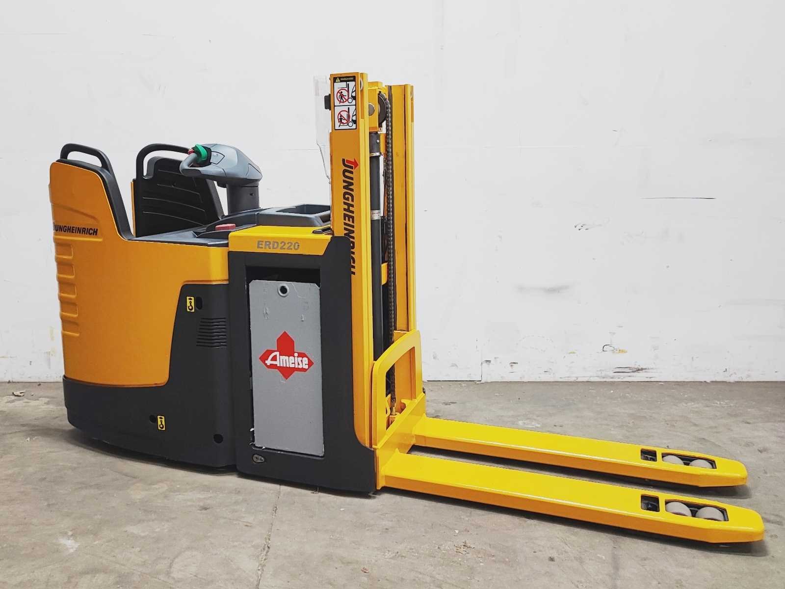Jungheinrich ERD 220 elektro dubbelstock stapelaar v.v. duplo mast met dubbelstock functie, hefhoogte 210 / 2200 mm, hefvermogen 2000 / 1000 kg Merk: Jungheinrich Type: ERD 220 Bouwjaar: 2012 Serienummer: 90406269 Hefvermogen: 2000kg Hefhoogte: 2200mm Lepellengte: 1180mm Afgelezen urenstand: 10480 Eigen gewicht: 1270kg Minimale doorrijhoogte: 1480mm Totale afmeting L: 2700mm Totale afmeting Breedte: 800mm Totale afmeting Hoogte: 1480mm Meerij stapelaar: true Accu lader: true