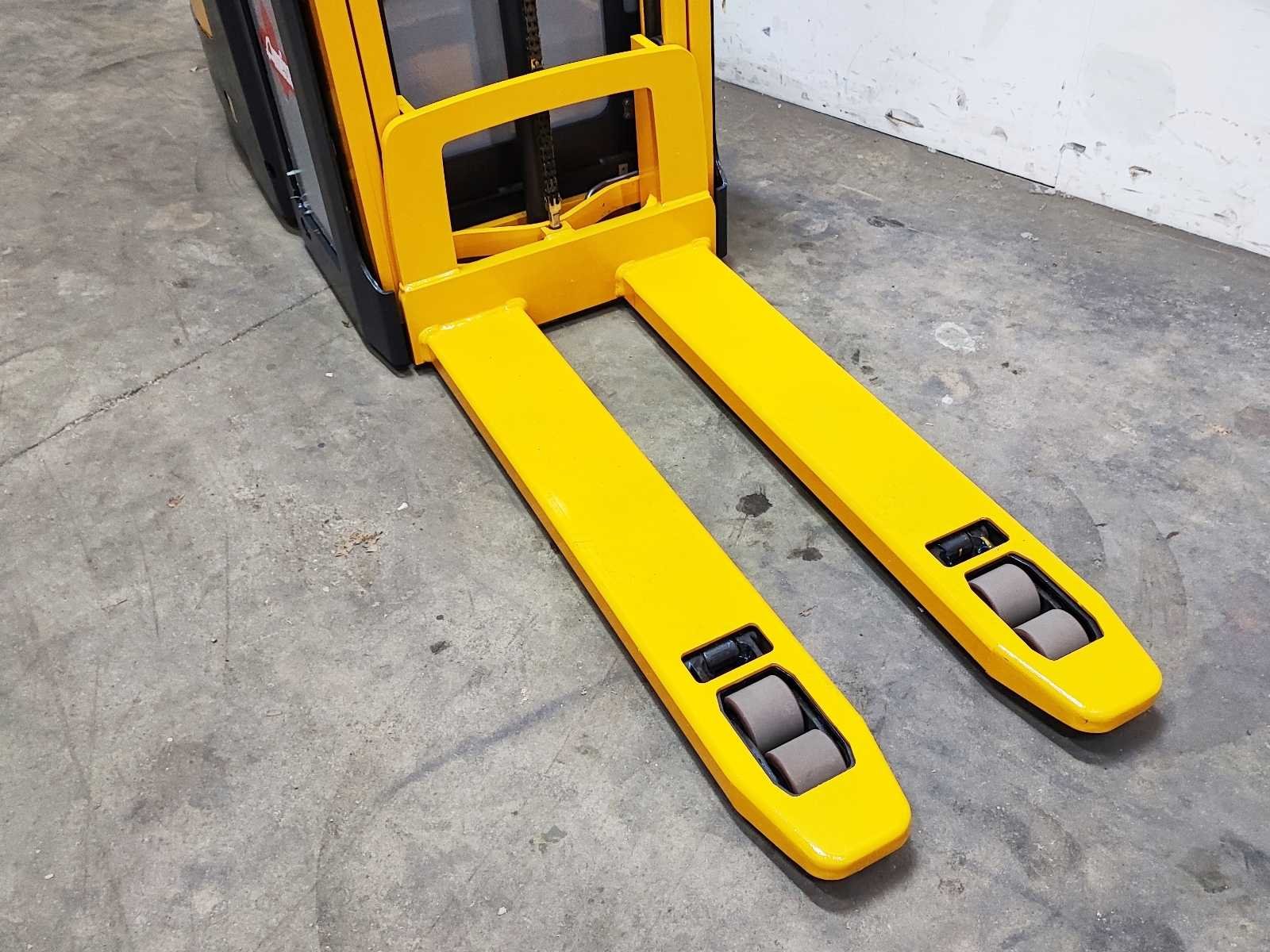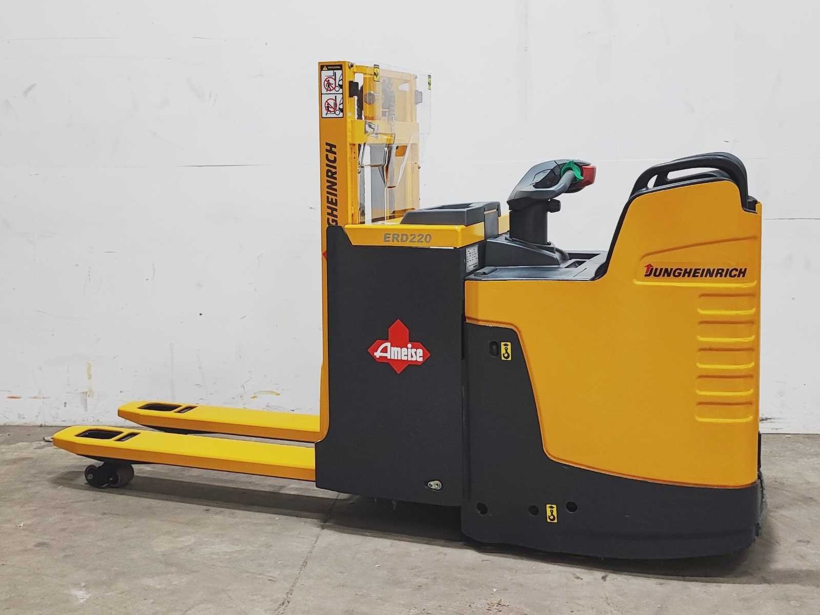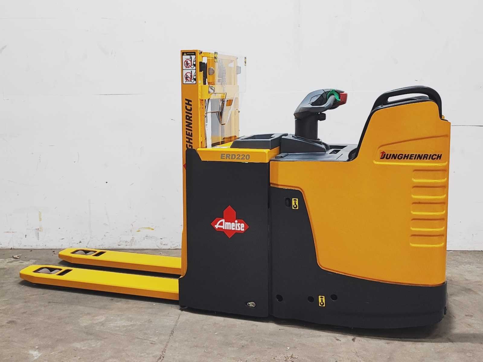 Jungheinrich ERD 220 elektro dubbelstock stapelaar v.v. duplo mast met dubbelstock functie, hefhoogte 210 / 2200 mm, hefvermogen 2000 / 1000 kg Merk: Jungheinrich Type: ERD 220 Bouwjaar: 2012 Serienummer: 90406269 Hefvermogen: 2000kg Hefhoogte: 2200mm Lepellengte: 1180mm Afgelezen urenstand: 10480 Eigen gewicht: 1270kg Minimale doorrijhoogte: 1480mm Totale afmeting L: 2700mm Totale afmeting Breedte: 800mm Totale afmeting Hoogte: 1480mm Meerij stapelaar: true Accu lader: true