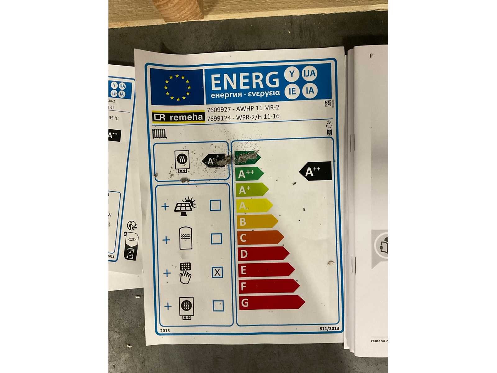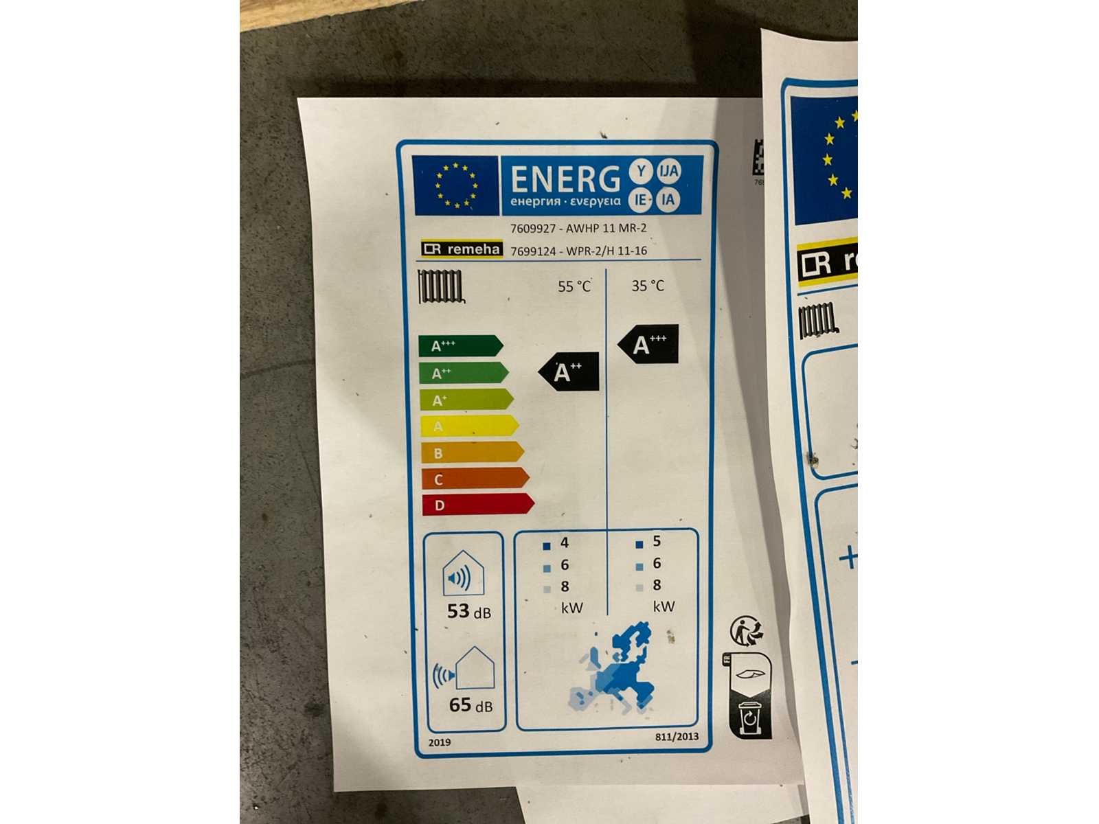 Bestaande uit: (1x) Buitenmodule, Type: AWHP 11 TR-2 (2023), 400V, R410A. (1x) Binnenmodule, Type: WPR-2/H 11-16, Mercuria, R410A. Merk: Remeha Model: Mercuria