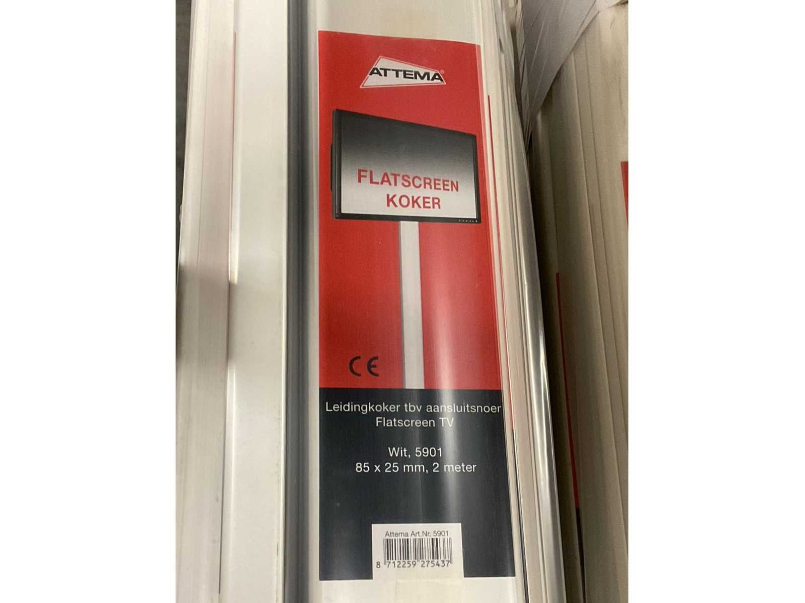 Leidingkoker t.b.v. aansluitsnoer Flatscreen TV; 85x25mm, 2mtr Merk: Attema Product type: 5901 Kleur: Wit Lengte: 8.5cm Breedte: 2.5cm Hoogte: 200cm Materiaal: Kunststof