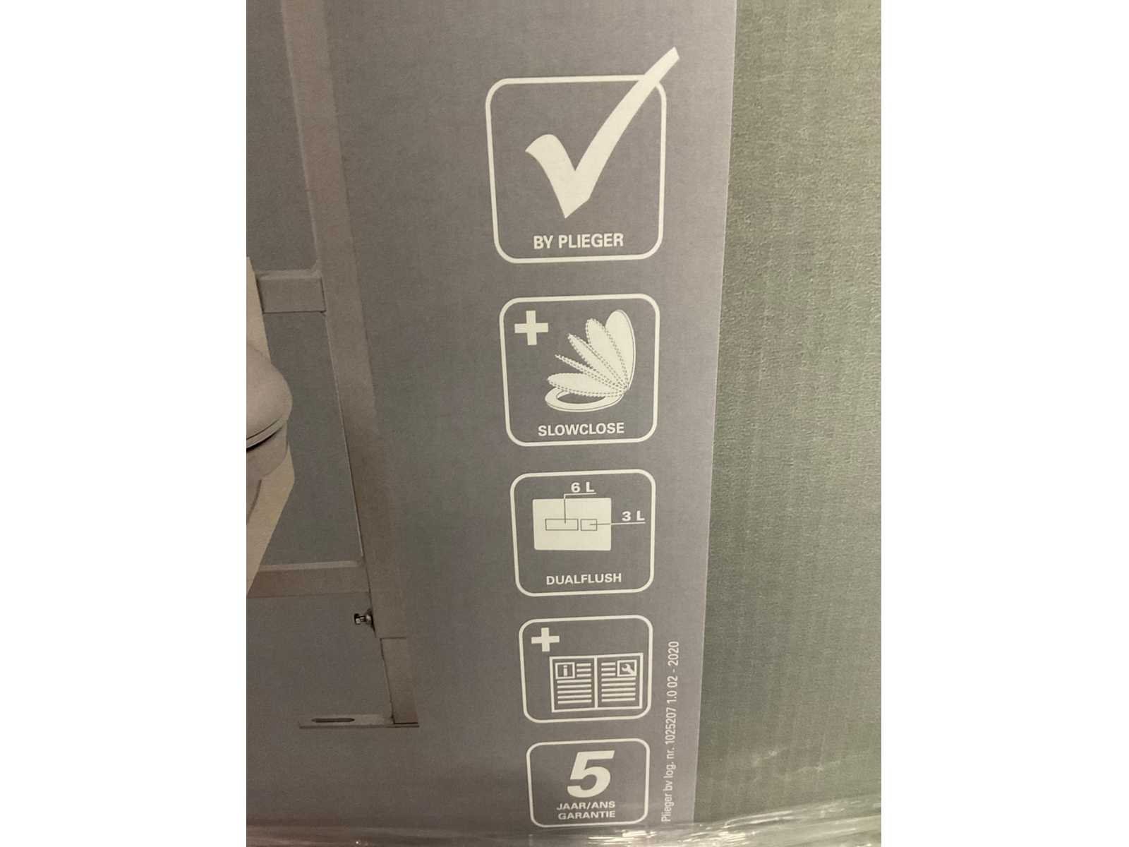 Inbouwset bestaande uit: Inbouwreservoir, wandcloset, closetzitting en bedieningsplaat dualflush. Merk: Plieger Model: Flair Kleur: Wit Materiaal: Keramiek