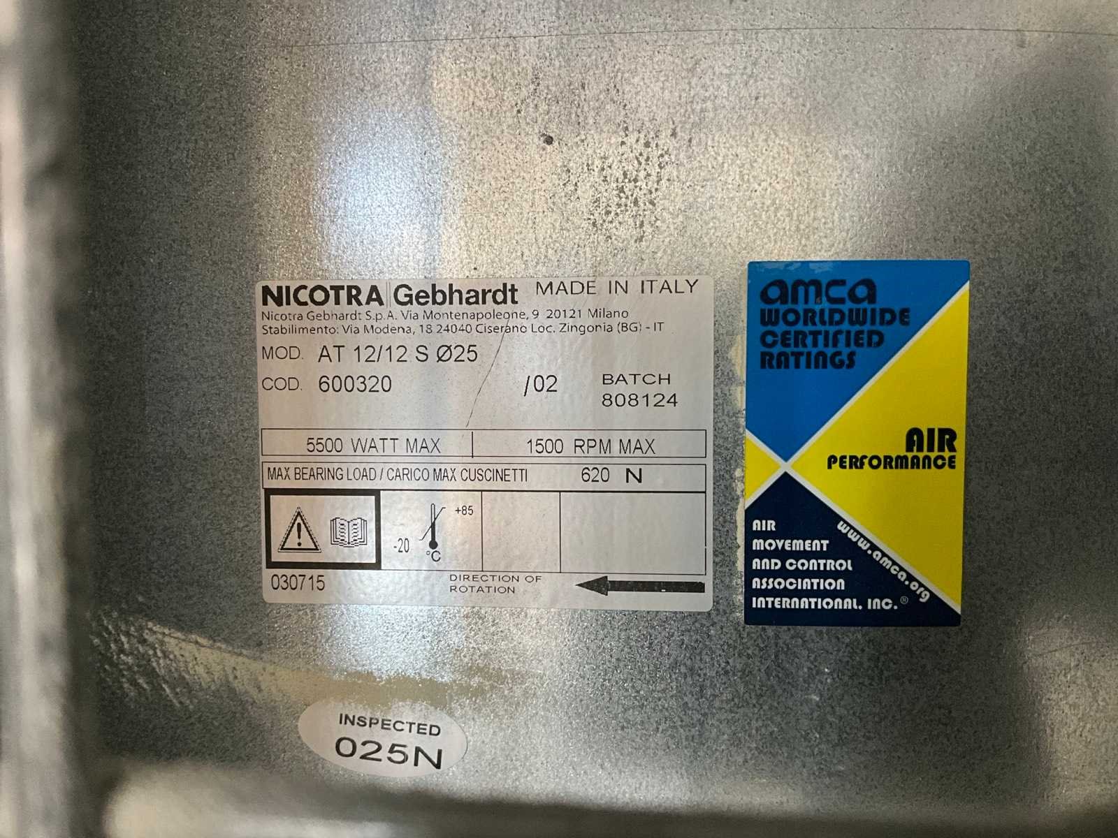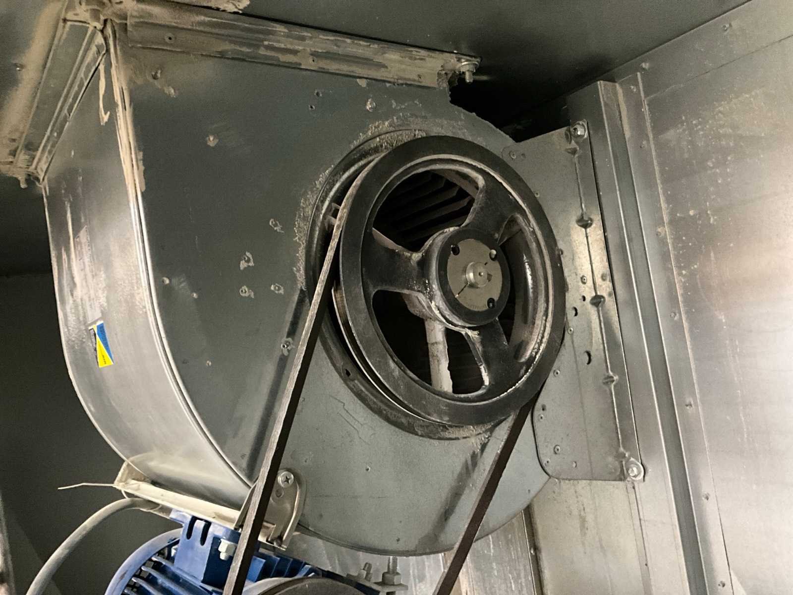 Lengte buis 6000 mm tot retourfilter, gemonteerd op 350 cm hoogte. Diameter afzuiging 400 mm. Merk: Nicotra Gebhardt Serienummer: 808124 Afzuiginstallatie: true Aansluiting: 380V Afmeting l: 780mm Afmeting b: 2000mm Afmeting h: 2000mm