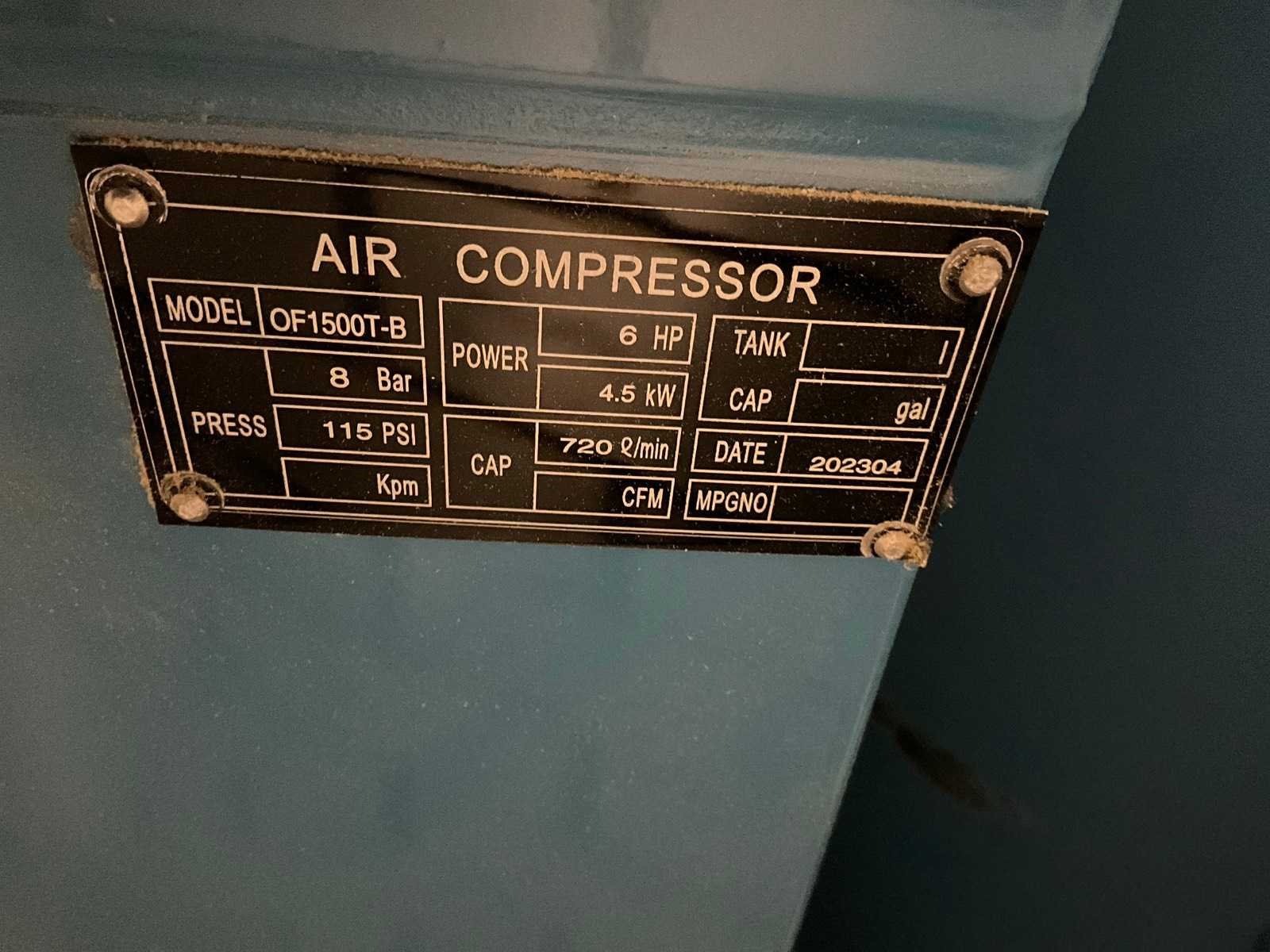 Type: OF1500T-B Bouwjaar: 2023 Serienummer: 23060150 Capaciteit.: 8bar Vermogen: 4.5kW Buffertank inhoud: 500l Aansluiting: 230V Totale afmeting L: 700mm Totale afmeting Breedte: 980mm Totale afmeting Hoogte: 2050mm