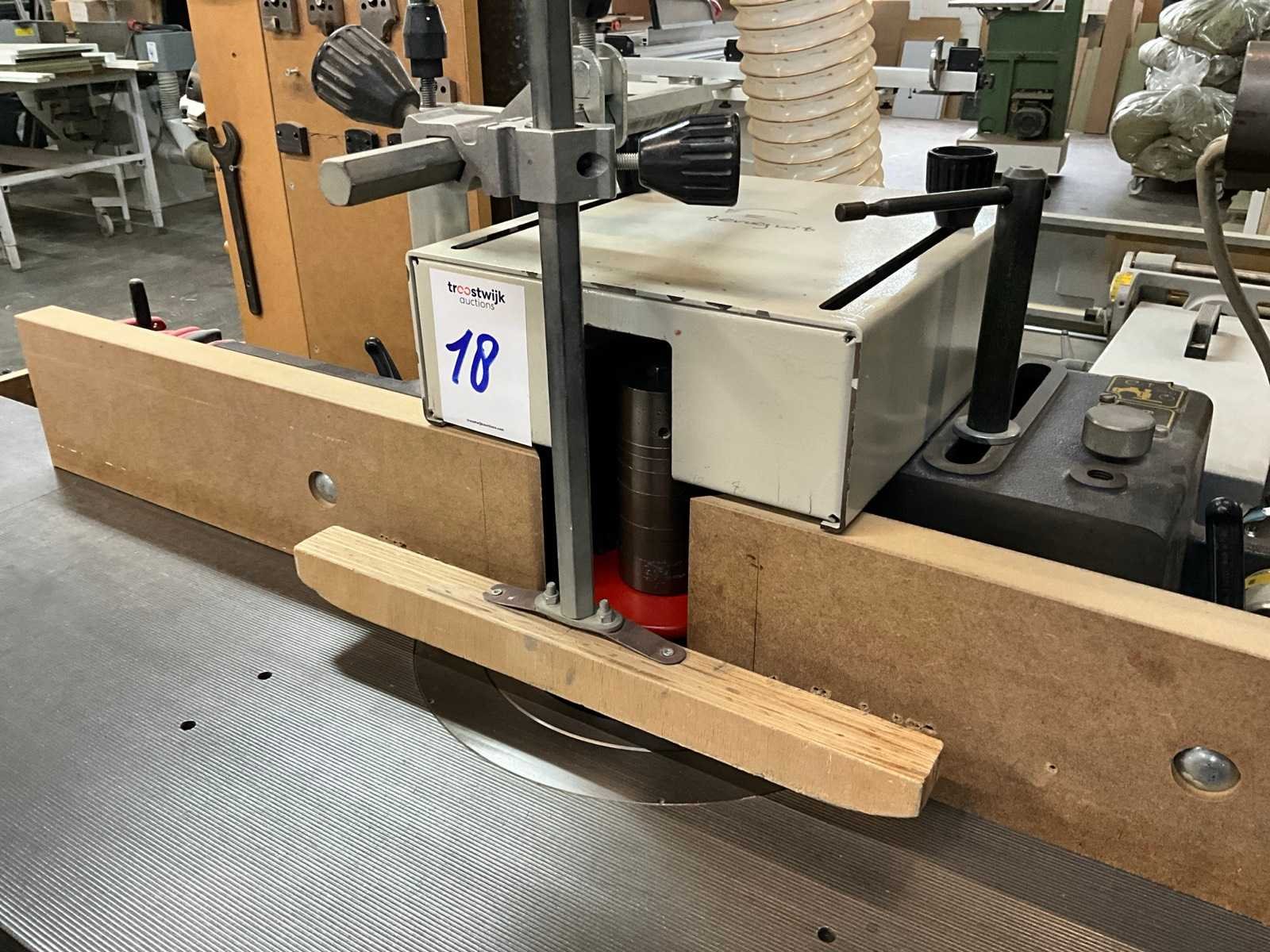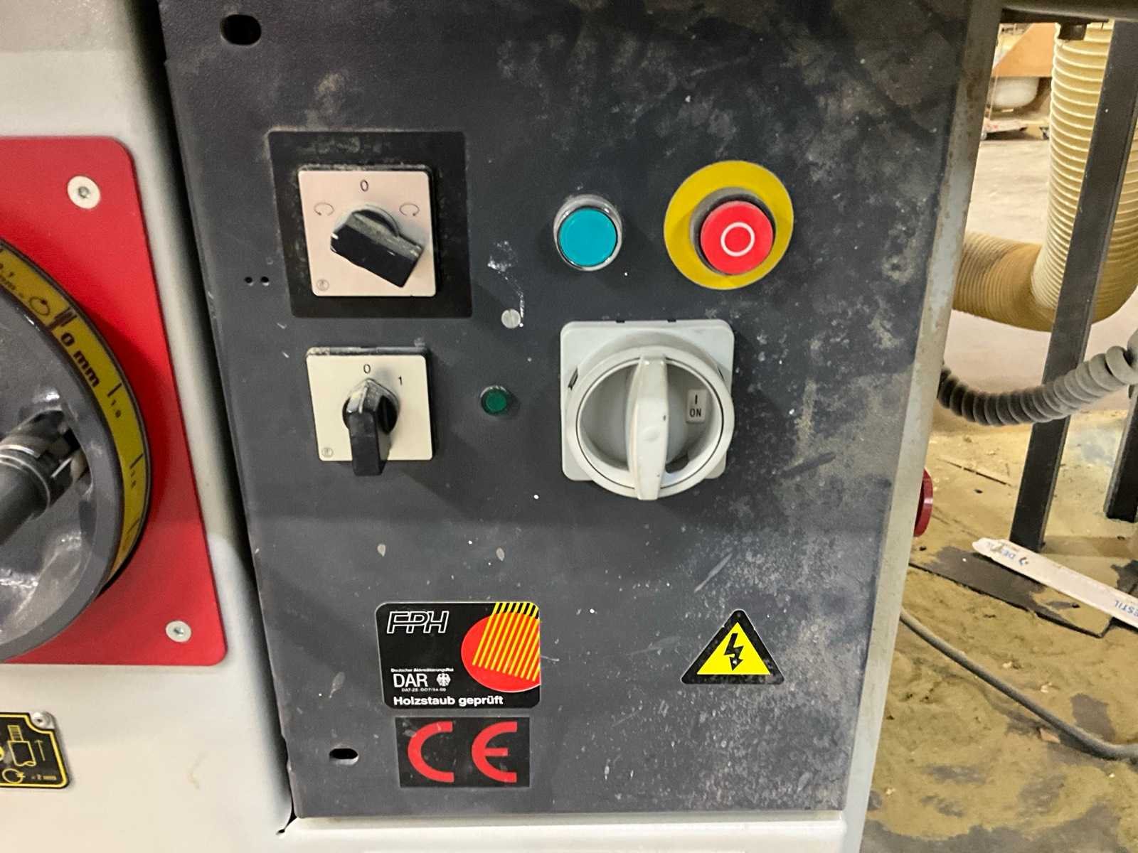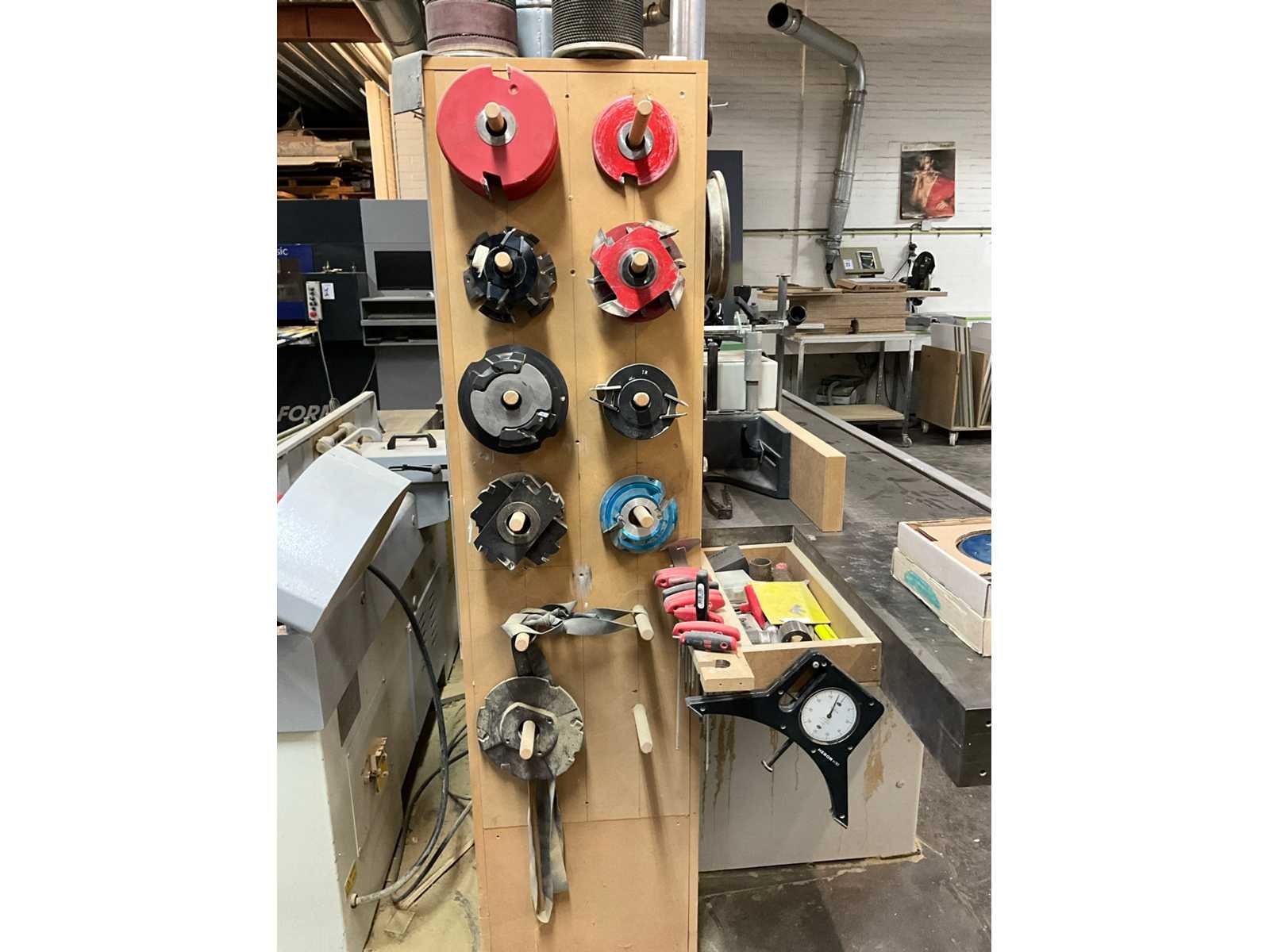 Voorzien van Maggi aandrijving. Inclusief diverse koppen Merk: Robland Type: T 120 Bouwjaar: 1999 Aansluiting: 380V Snelheid tot n =: 7000rpm Spil Ø: 30mm Tafel afmeting l: 2540mm Snelheid van n =: 3000rpm Tafel afmeting b: 410mm Totale afmeting L: 2630mm Totale afmeting Breedte: 800mm Totale afmeting Hoogte: 1780mm