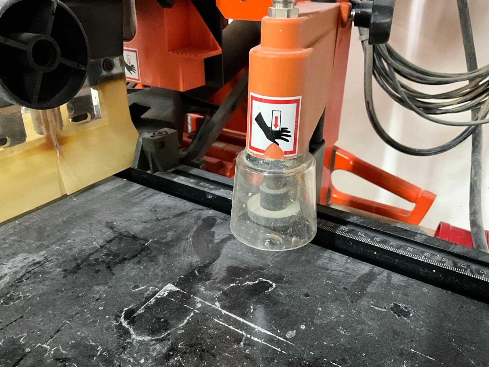 Merk: Blum Type: MZK 2200 Bouwjaar: 2000 Serienummer: AE 02768 Tafel afmeting l: 450mm Tafel afmeting b: 790mm Aansluiting: 380V Machinegewicht: 100kg Afmeting l: 950mm Afmeting b: 1600mm Afmeting h: 870mm