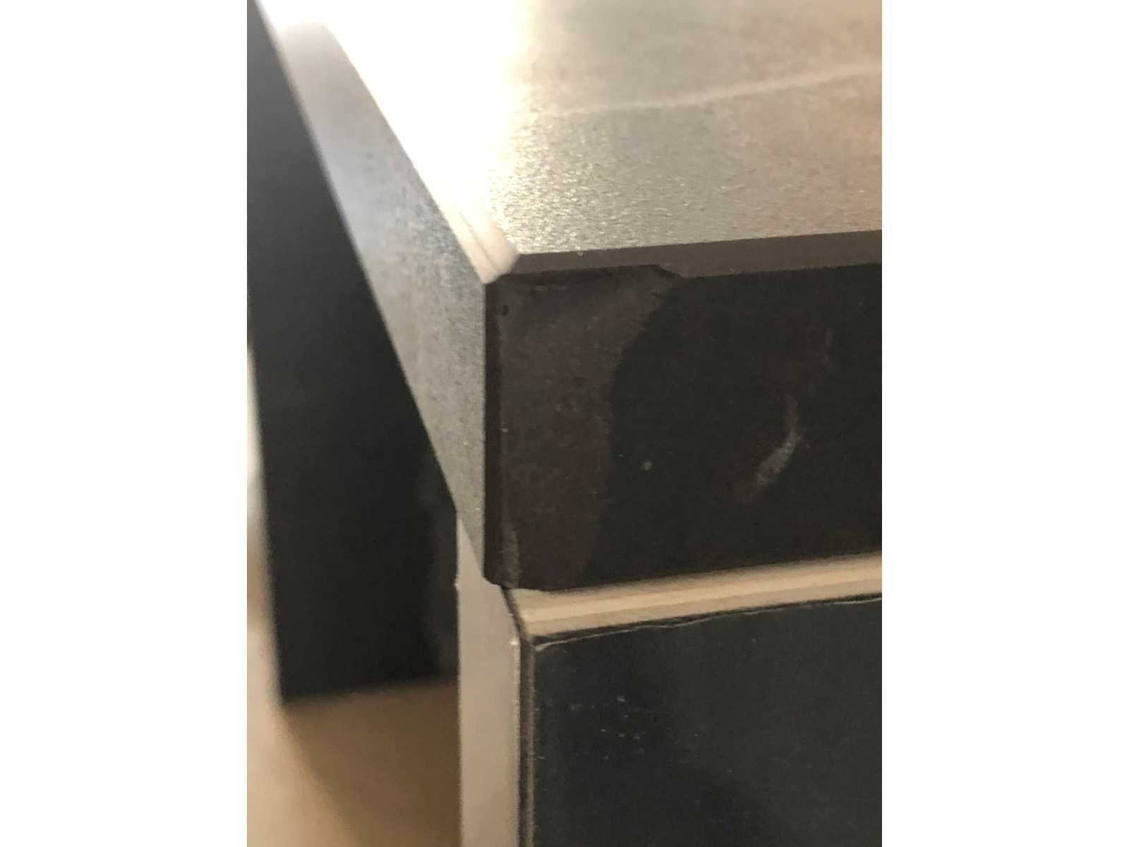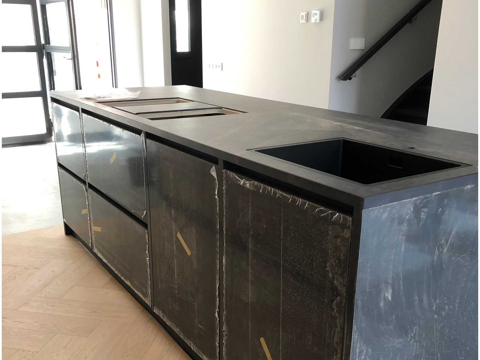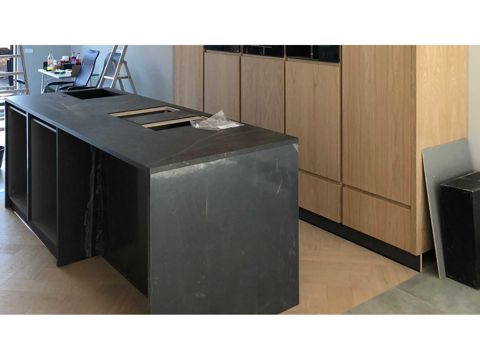 Let op! Hoek beschadigd. Voorzien van Bora- en spoelbak uitsparing. Lengte: 100cm Breedte: 280cm Hoogte: 3cm
