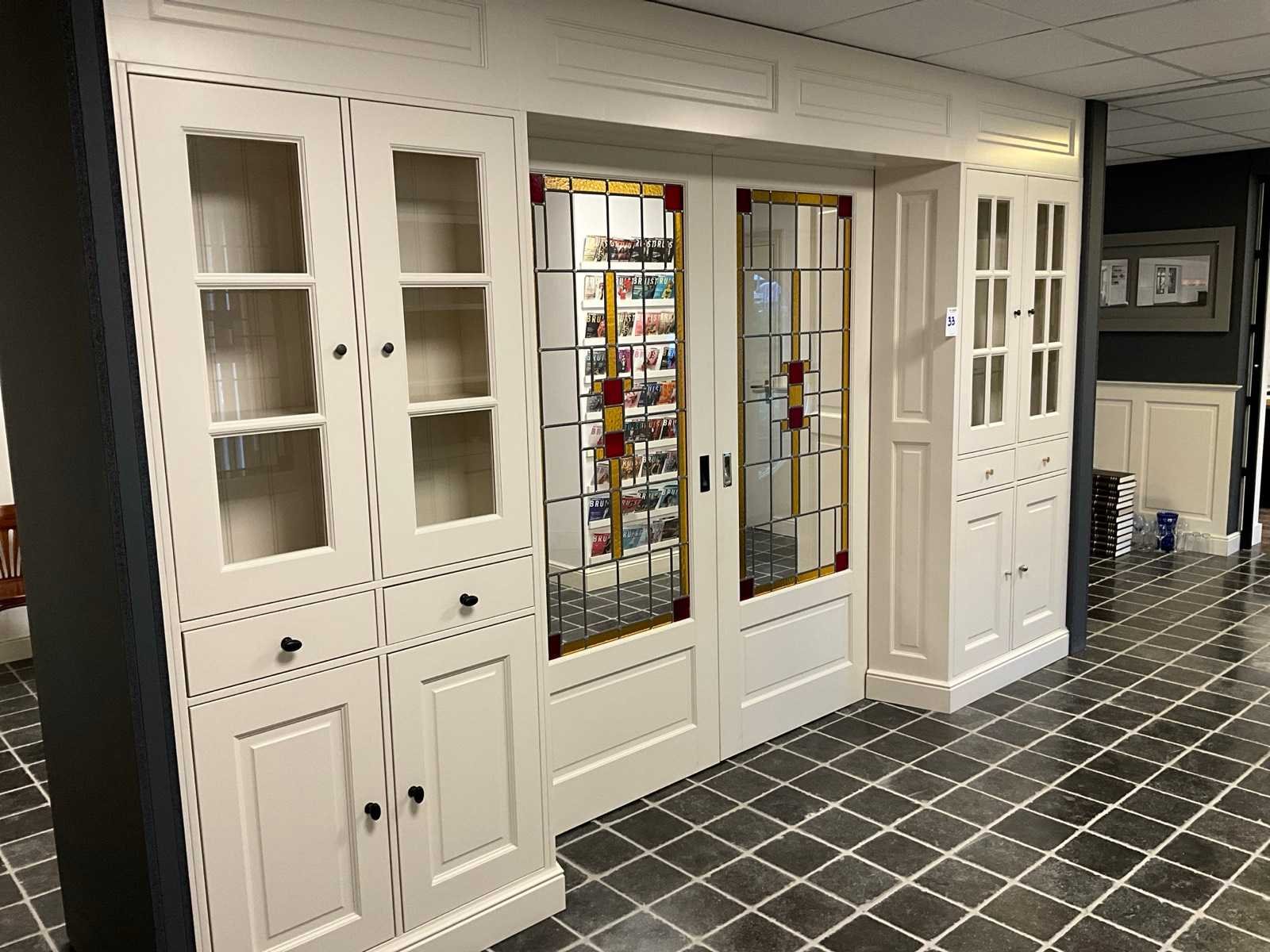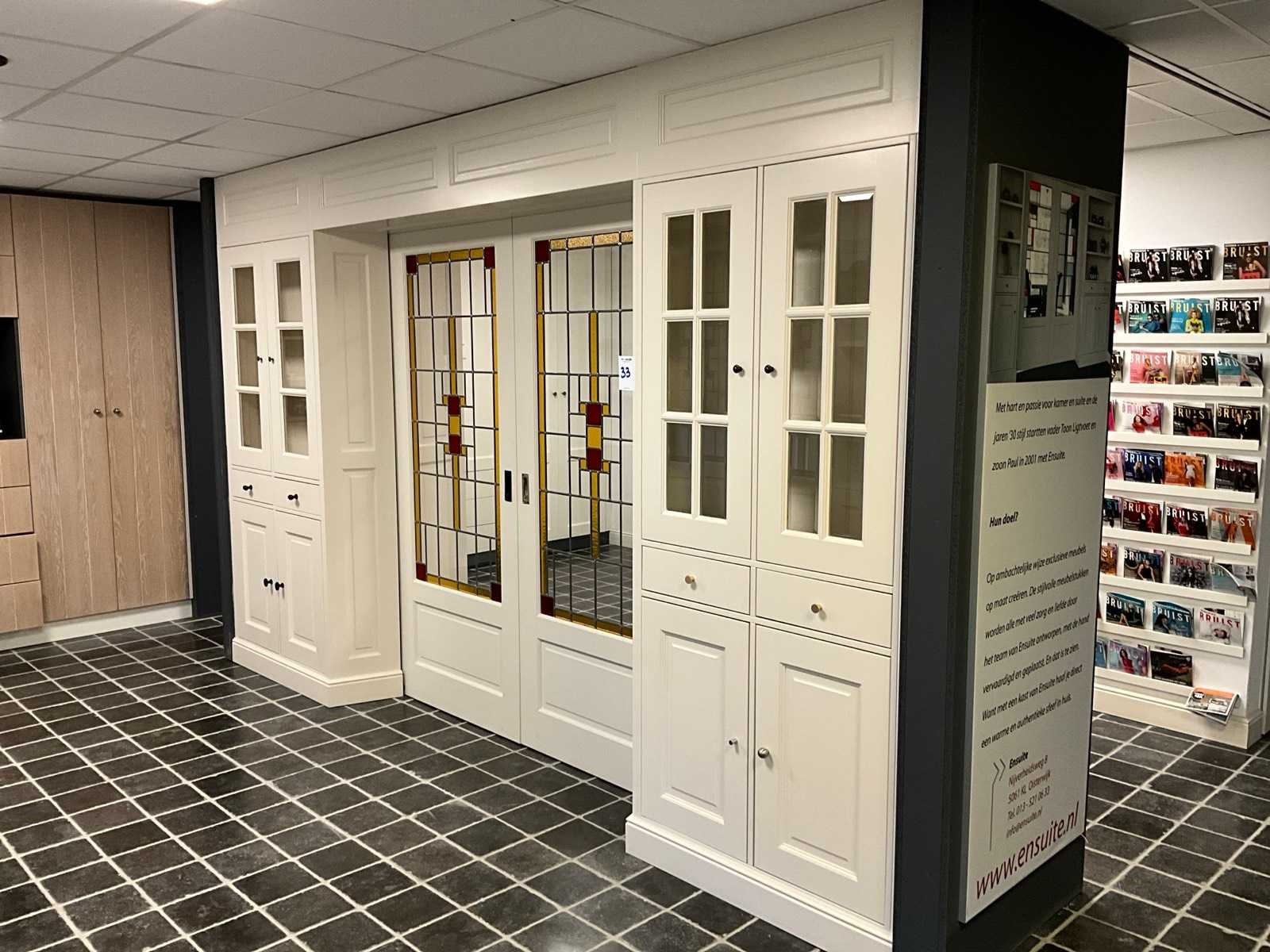 Zonder inhoud. Let op! Kast is gemonteerd, bestaat uit 5 kastdelen. Lengtes 385 + 243 cm. Schuifdeuren 210x 870 Merk: Ensuite Breedte: 91.5cm Hoogte: 240cm Diepte: 60cm
