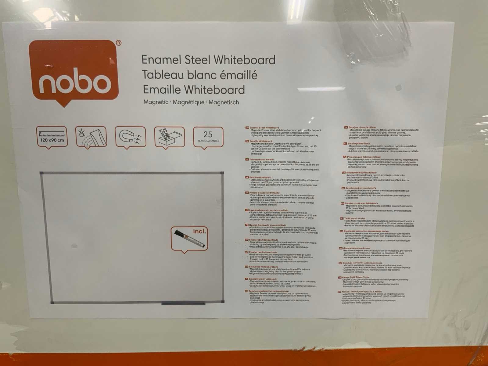 Magnetisch Merk: Nobo Model: Enamel steel Kleur: Wit Breedte: 120cm Hoogte: 90cm
