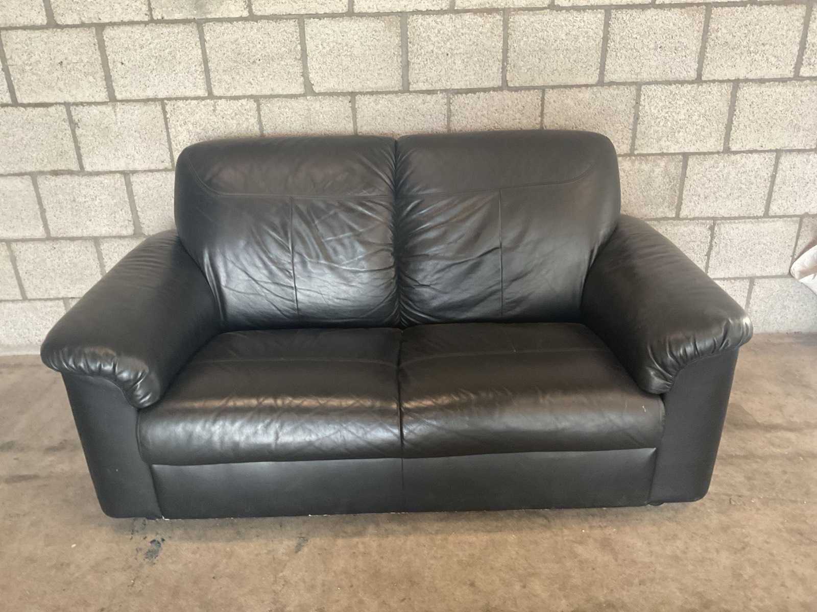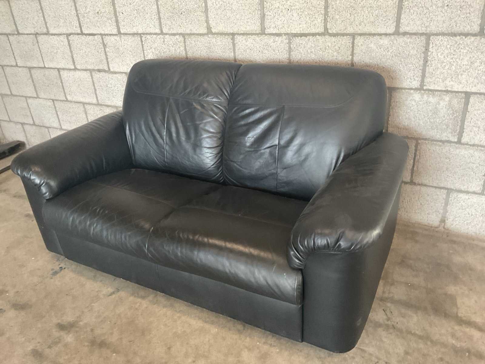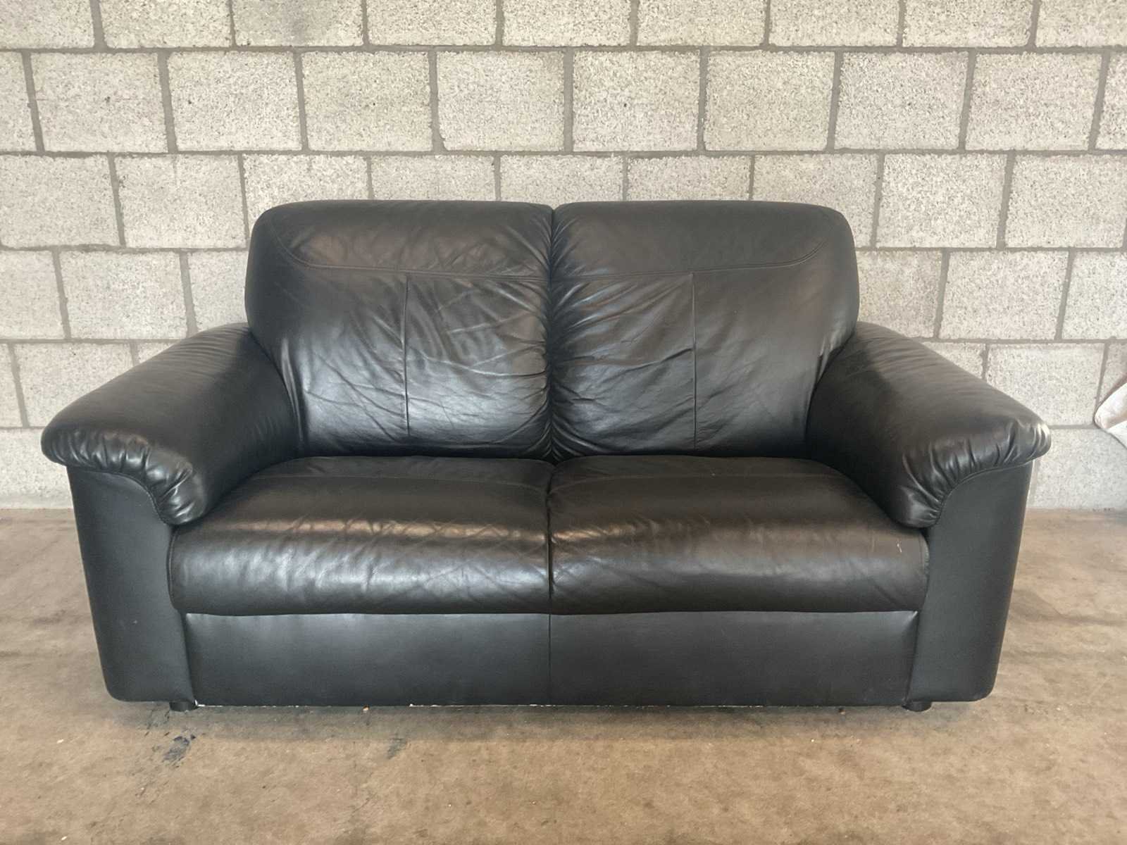 Gebruikt. Zitplaatsen: 2 Kleur: Zwart Lengte: 90cm Breedte: 170cm Zithoogte: 40cm Diepte: 55cm