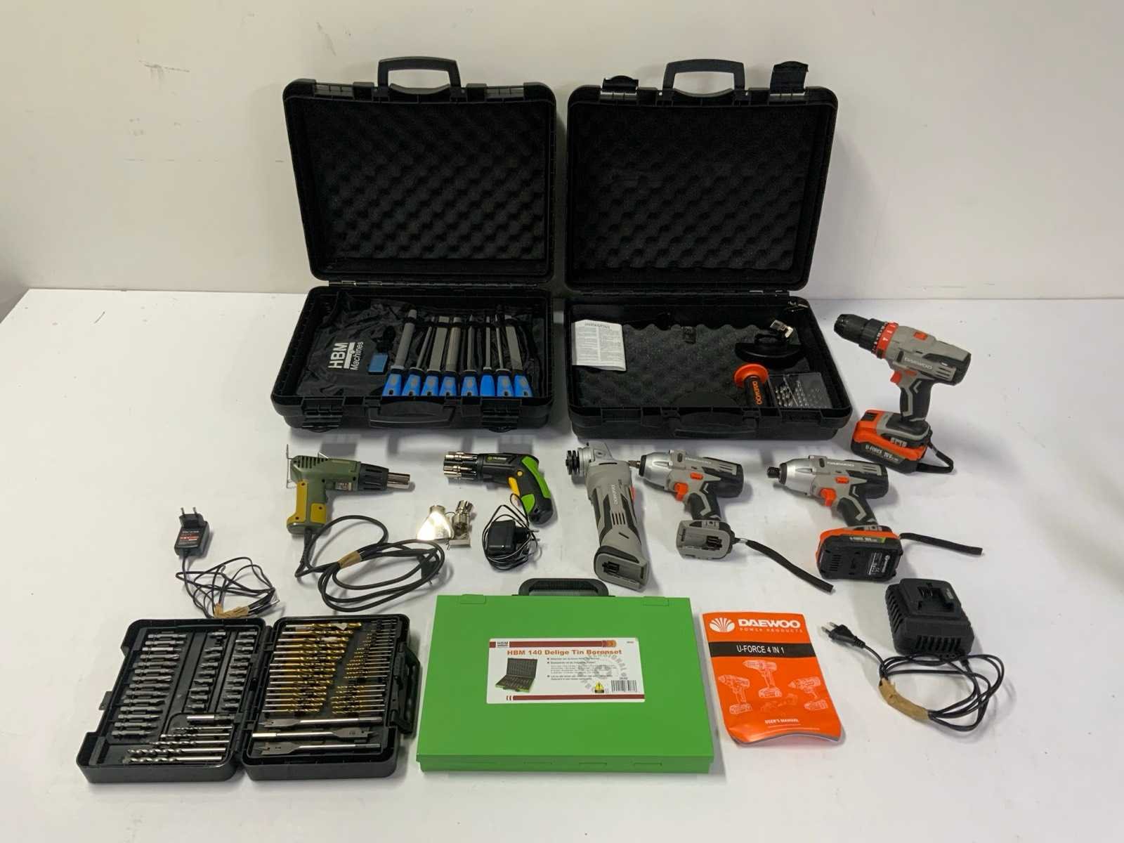 Hbm, daewoo, fieldman, proxxon accugereedschap met koffers en toebehoren