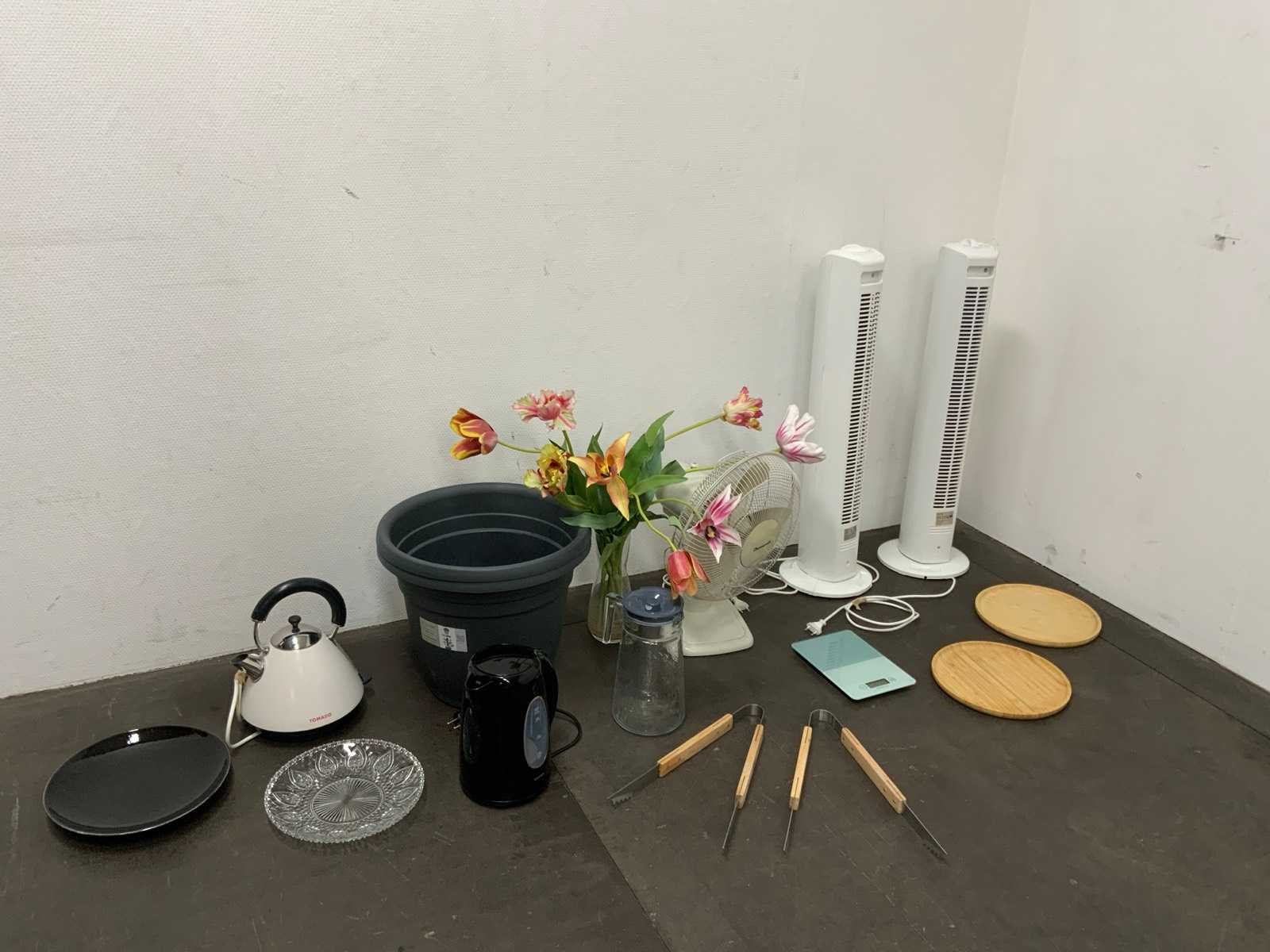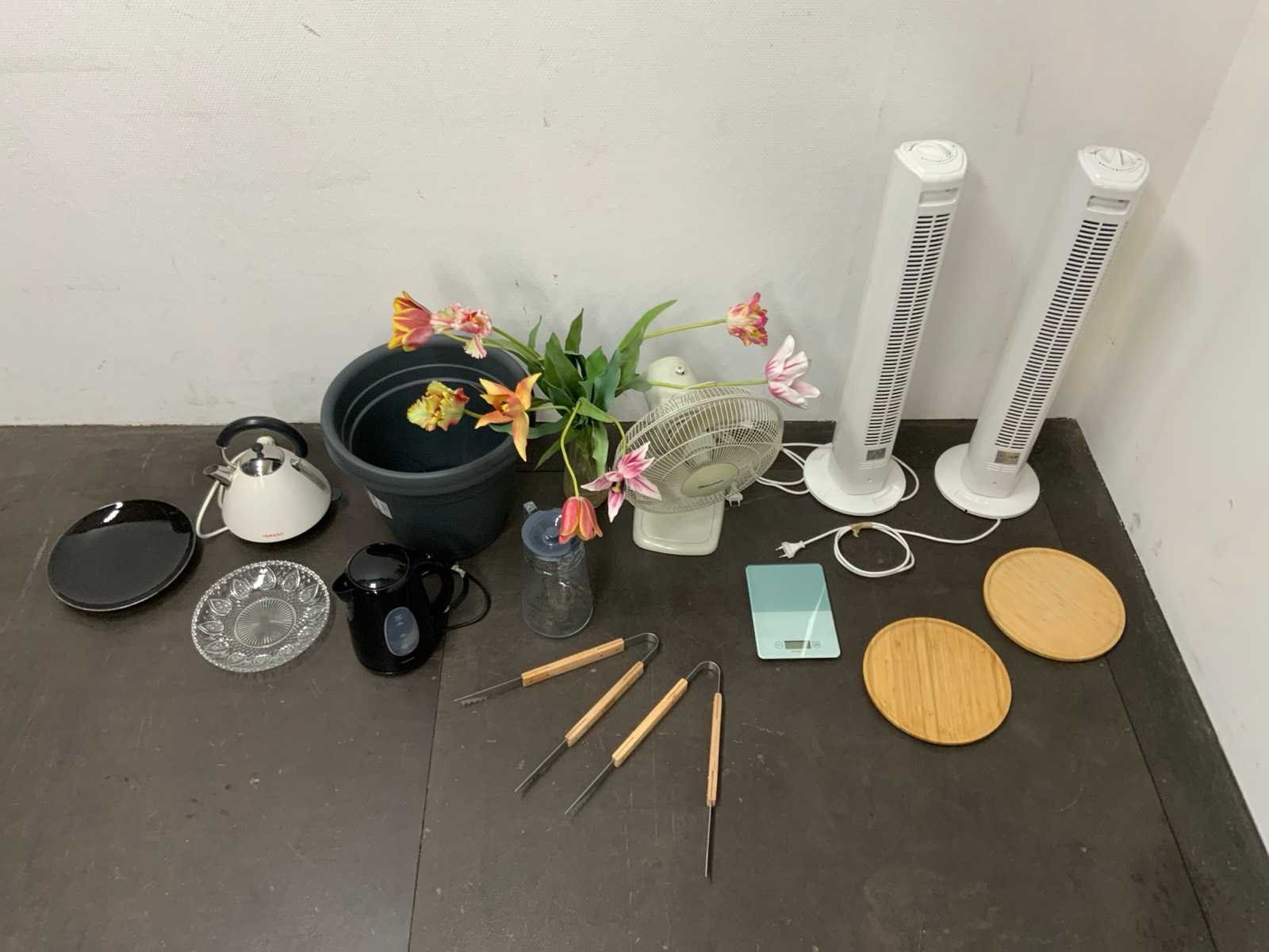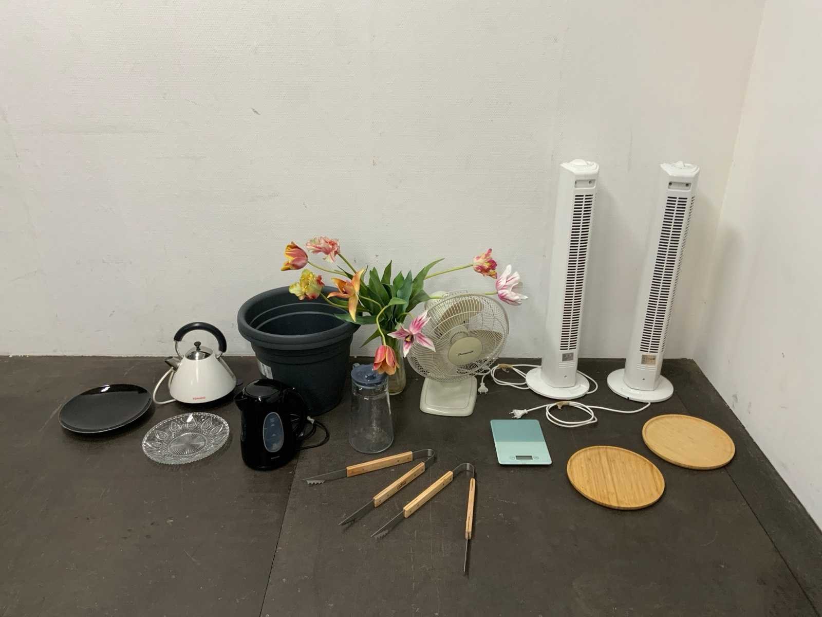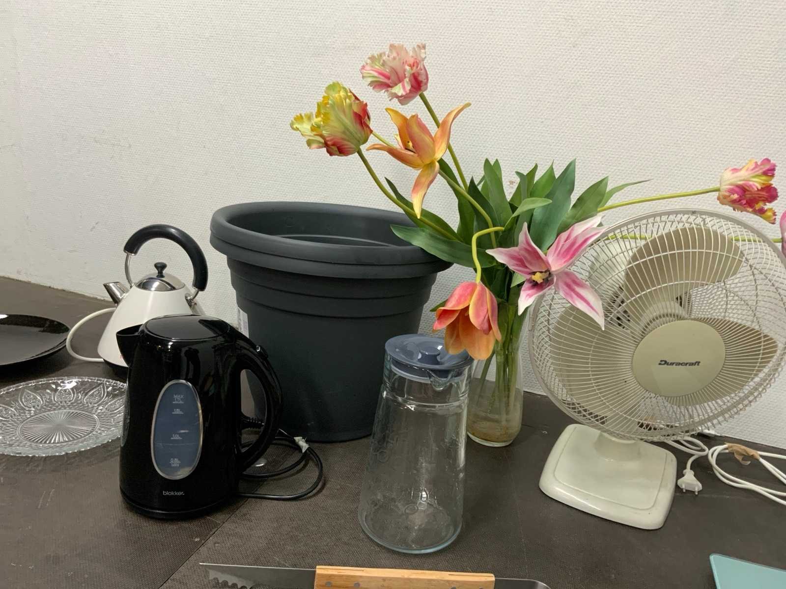 1e: Ventilatoren 2e: Waterkokers 3e: Bord 4e: Schaal 5e: Nepbloemen 6e: Plantenpot 7e: Etc.