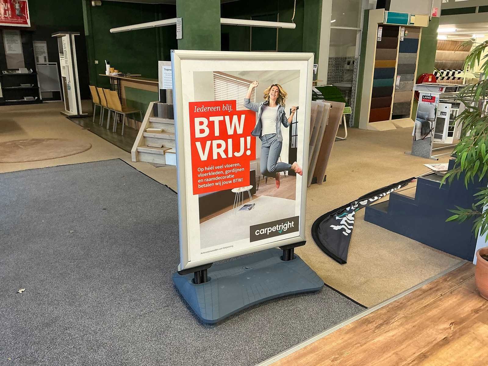 Stoepbord is 95x60x150 cm Vlaggen zijn 60x310 cm