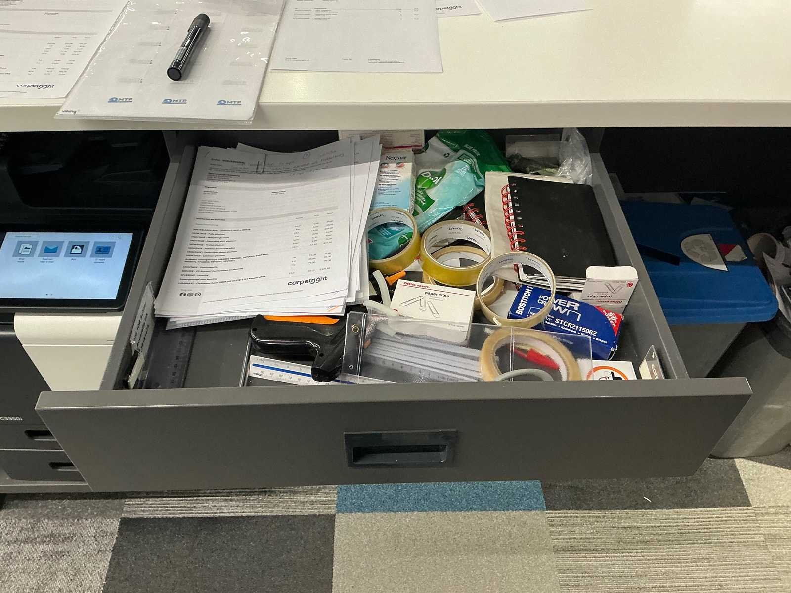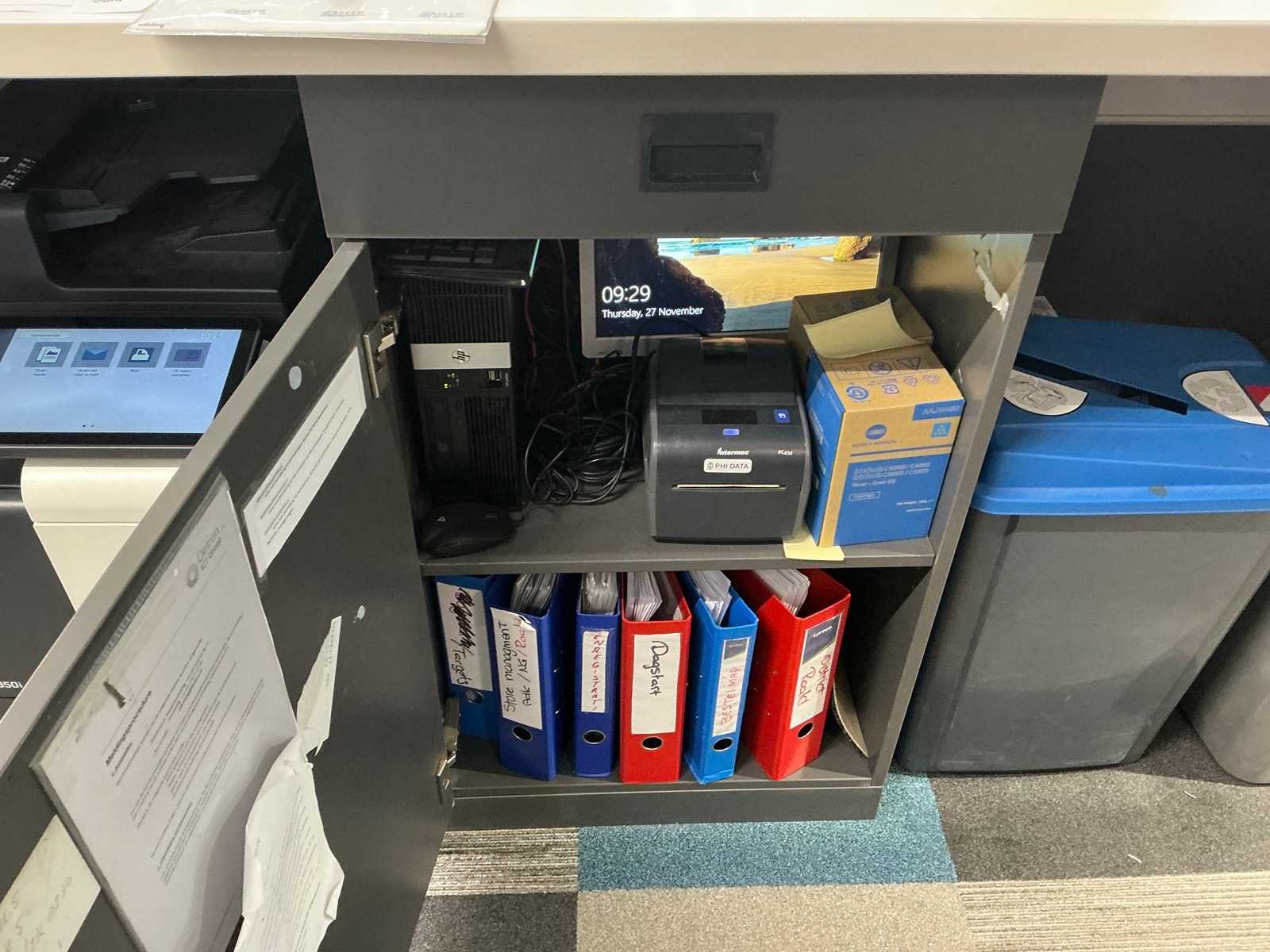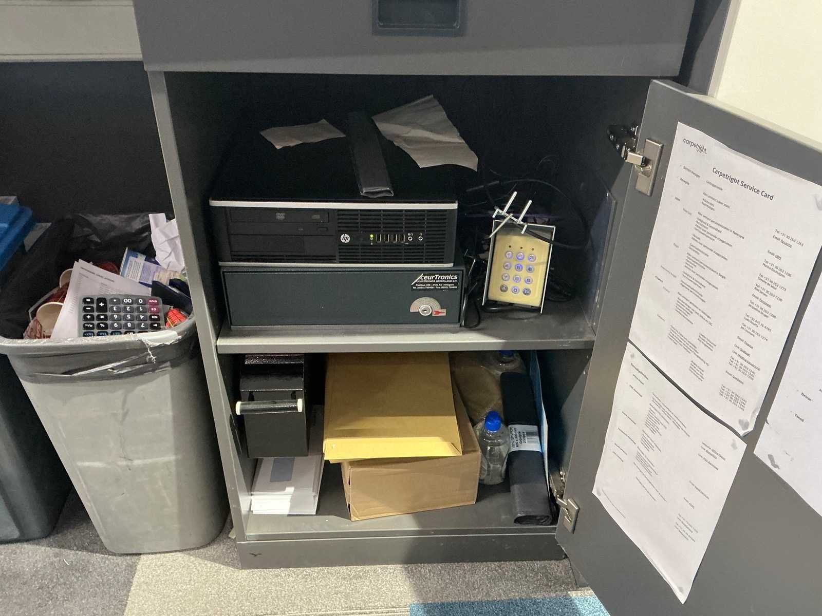 Dit kavel dient door de koper professioneel gedemonteerd te worden. Inclusief inhoud. Eventuele administratie en ICT horen niet bij het kavel. Exclusief printer en tafel Totale afmeting L: 3000mm Totale afmeting Breedte: 800mm Totale afmeting Hoogte: 2800mm