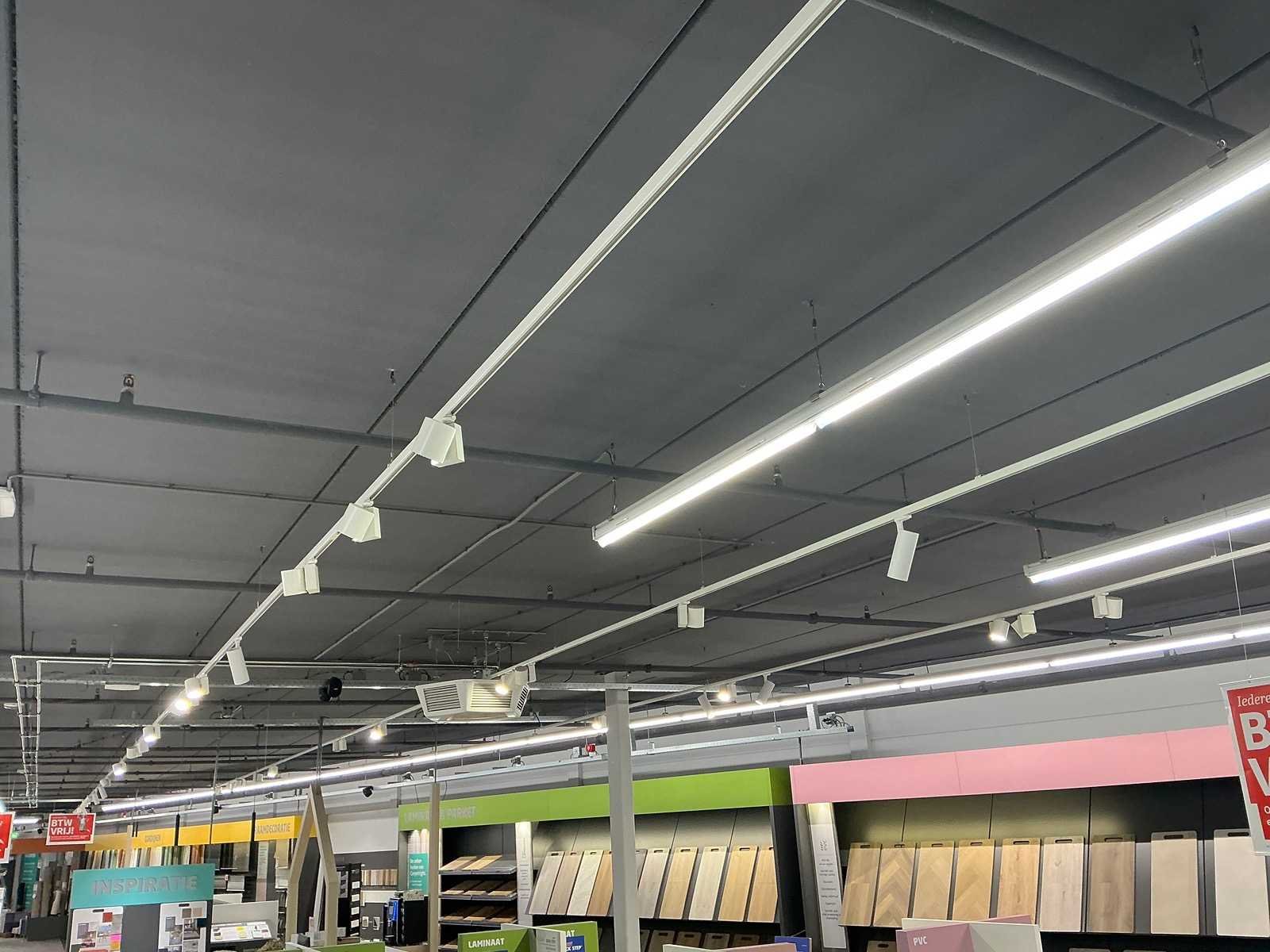 Dit kavel dient door de koper professioneel gedemonteerd te worden. Het kavel bestaat uit circa 110 meter met led balken en 100 meter rails met led spots. Kavel is gemonteerd op circa 4 meter hoog, hang op circa 3,5 meter hoog
