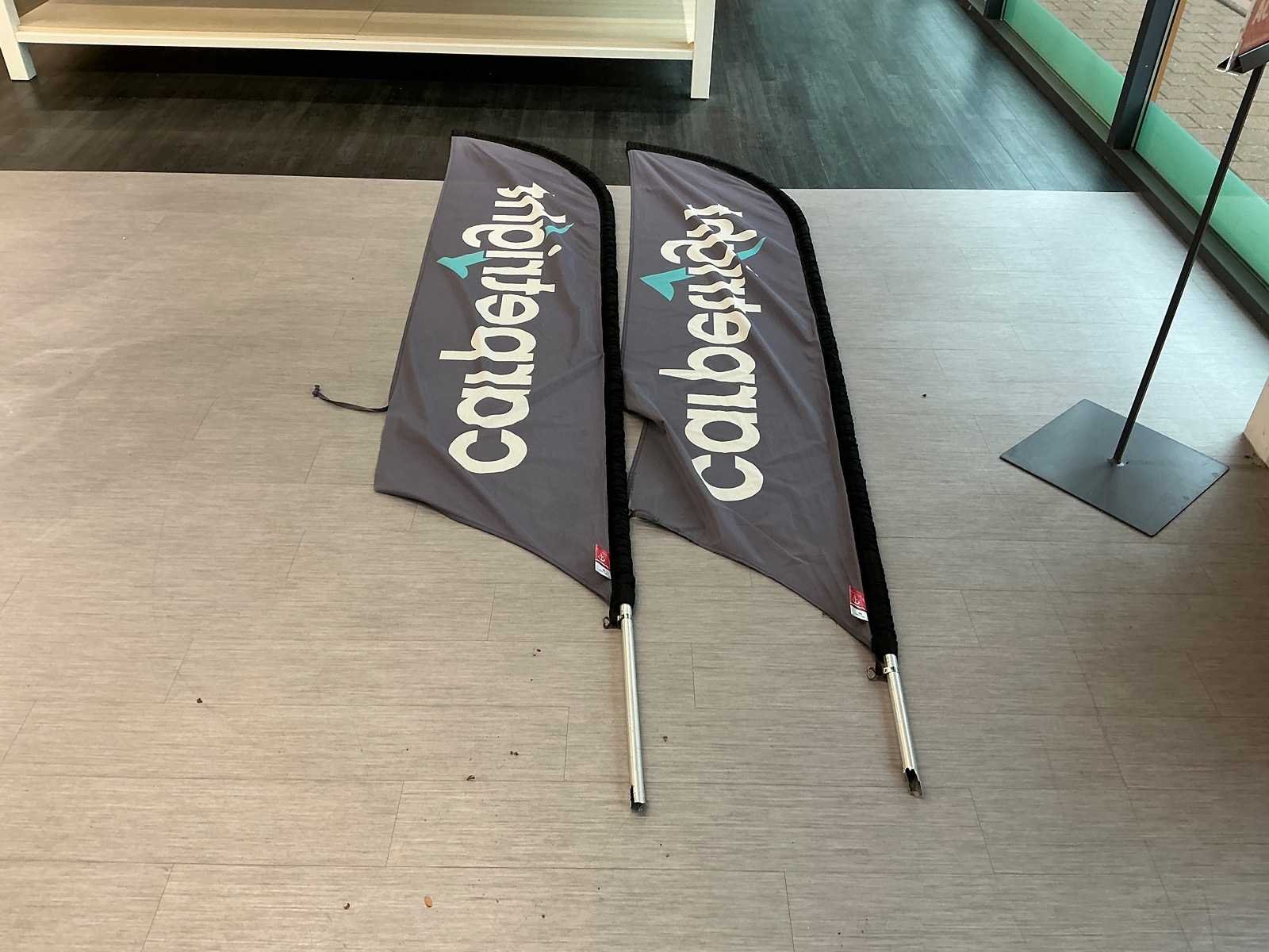 Stoepbord is 95x60x150 cm Vlaggen zijn 60x310 cm