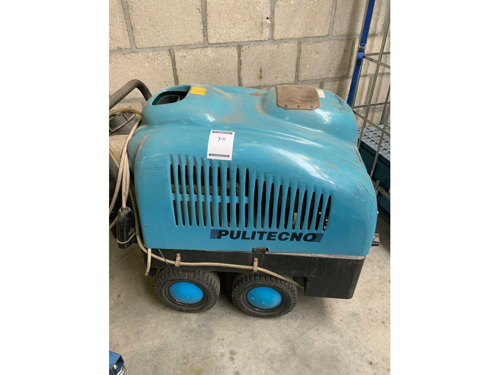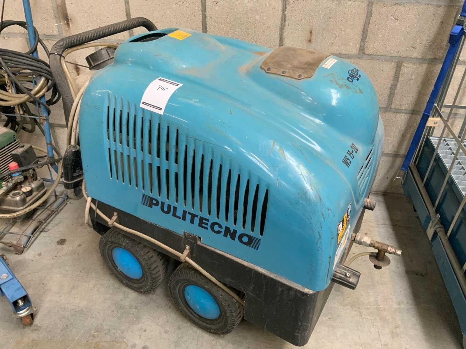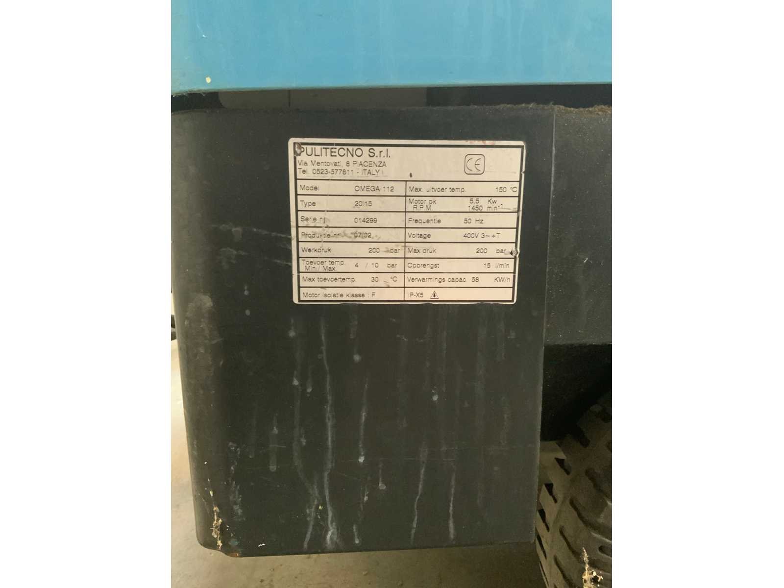 Heet water hogedrukreiniger op diesel Merk: Pulitecno Type: Omega 112 Bouwjaar: 20 Serienummer: 014299 Maximale werkdruk: 200bar Temperatuurbereik max.: 150°c Capaciteit.: 15l/hr Vermogen: 5.5kW