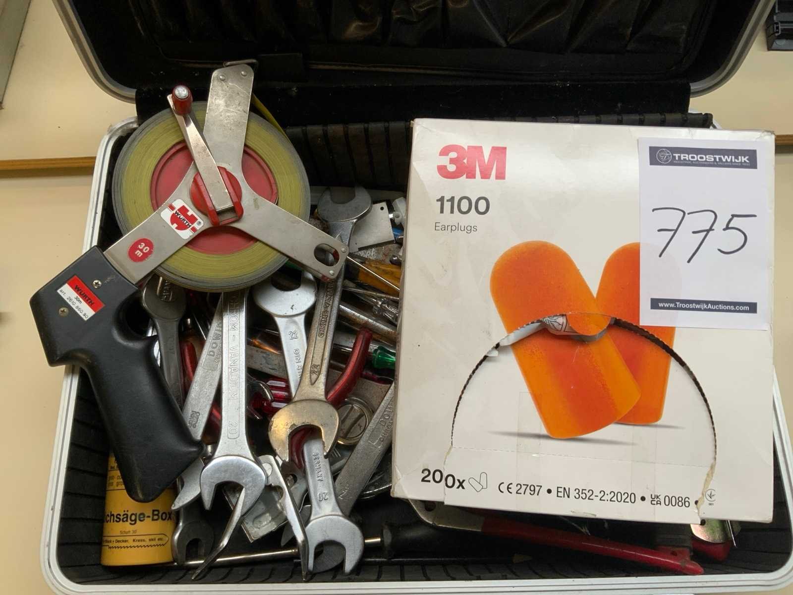 O.a. tangen, schroevendraaiers, würth meetlint (30m), 3m oordoppen etc