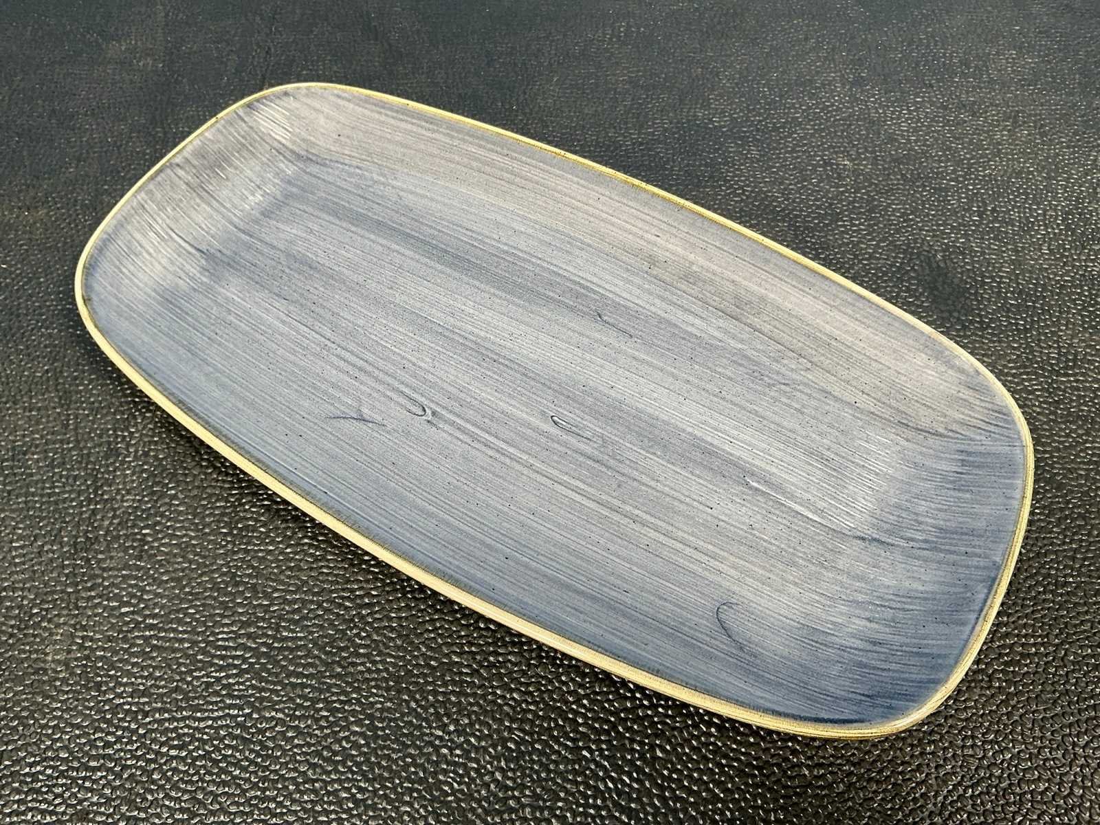 Bestaande uit: 30x Churchill Stonecast Chefs oblong bord Blueberry 35,5x19cm, 30x Churchill Stonecast Chefs oblong bord Java Blue 30,5x15,3cm. In en met 2 kratten. Merk: Churchill Model: Stonecast Materiaal: Super Vitrified porselein