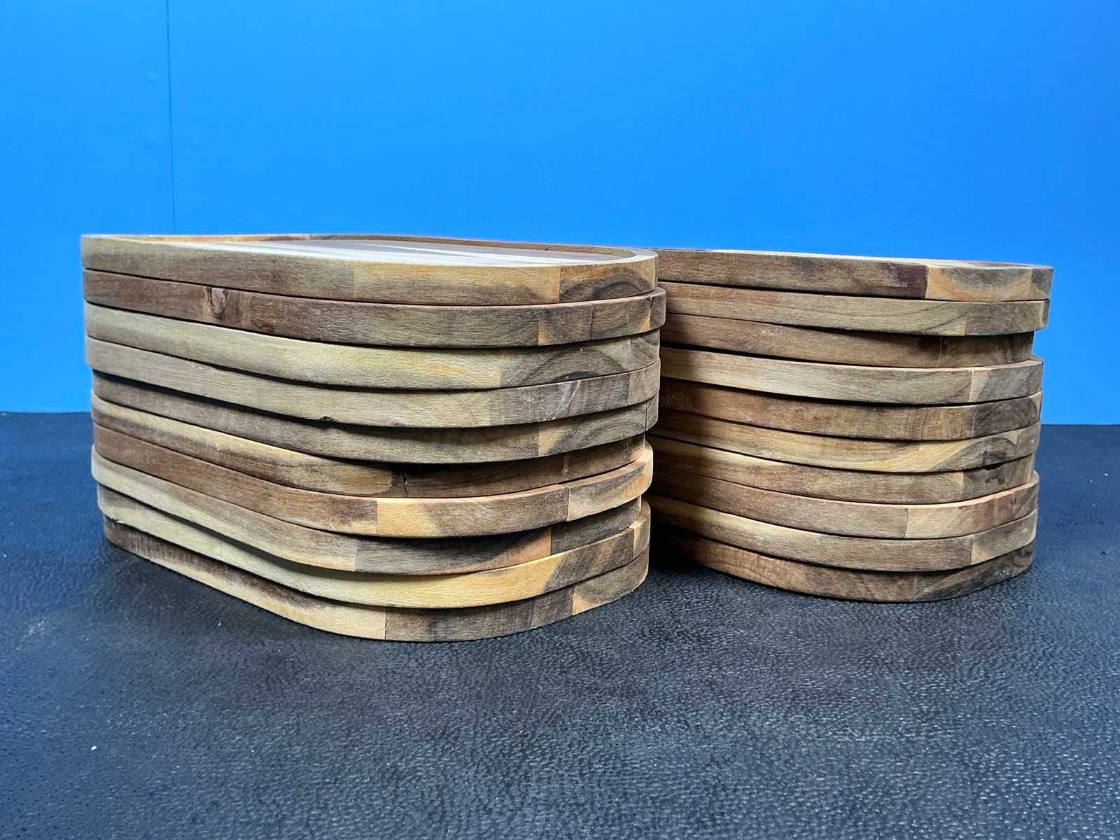 In en met een krat. Lengte: 30.5cm Breedte: 20.5cm Hoogte: 2cm Materiaal: Acaciahout