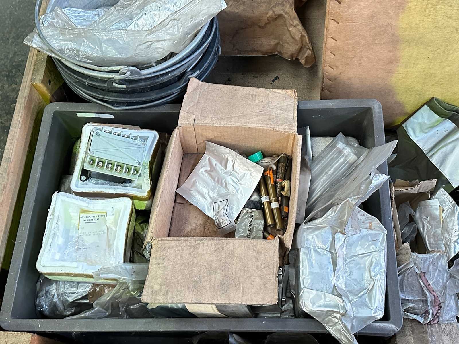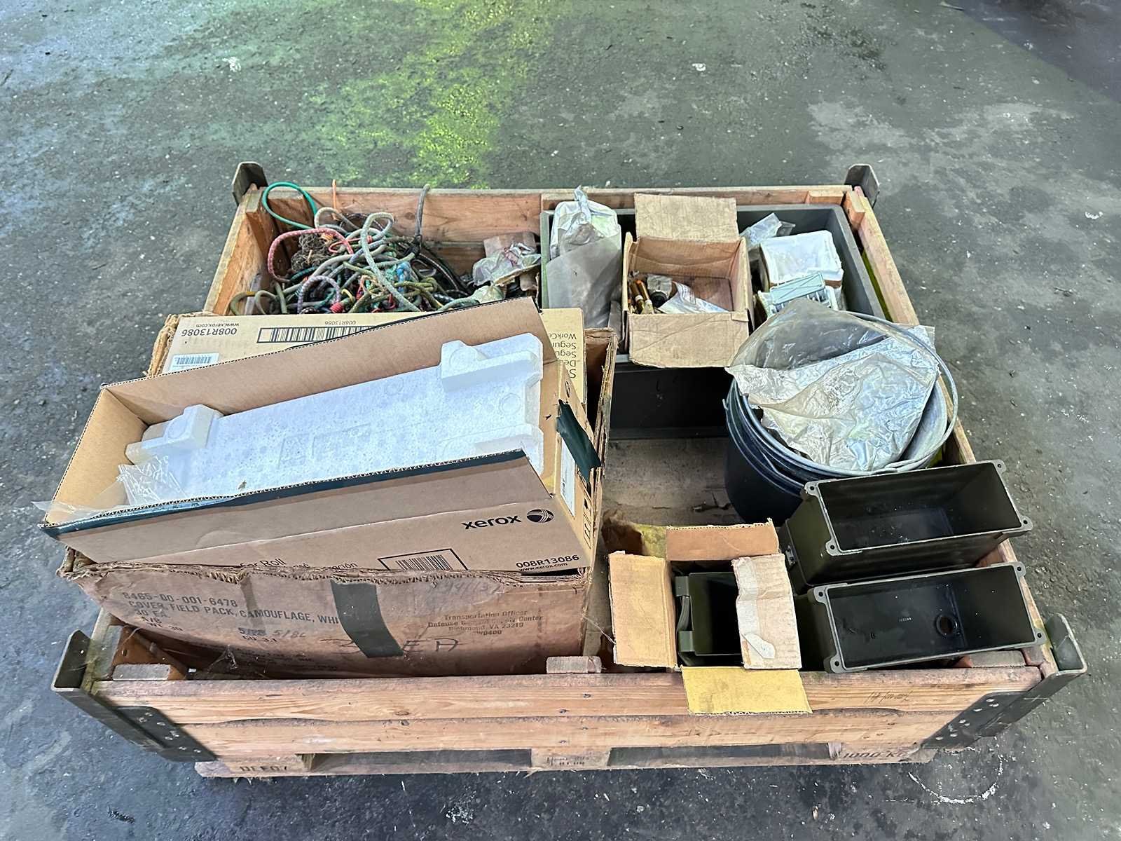 Deze partij bestaat uit emmers, elastische koorden, toiletborstels en Xerox cartridges