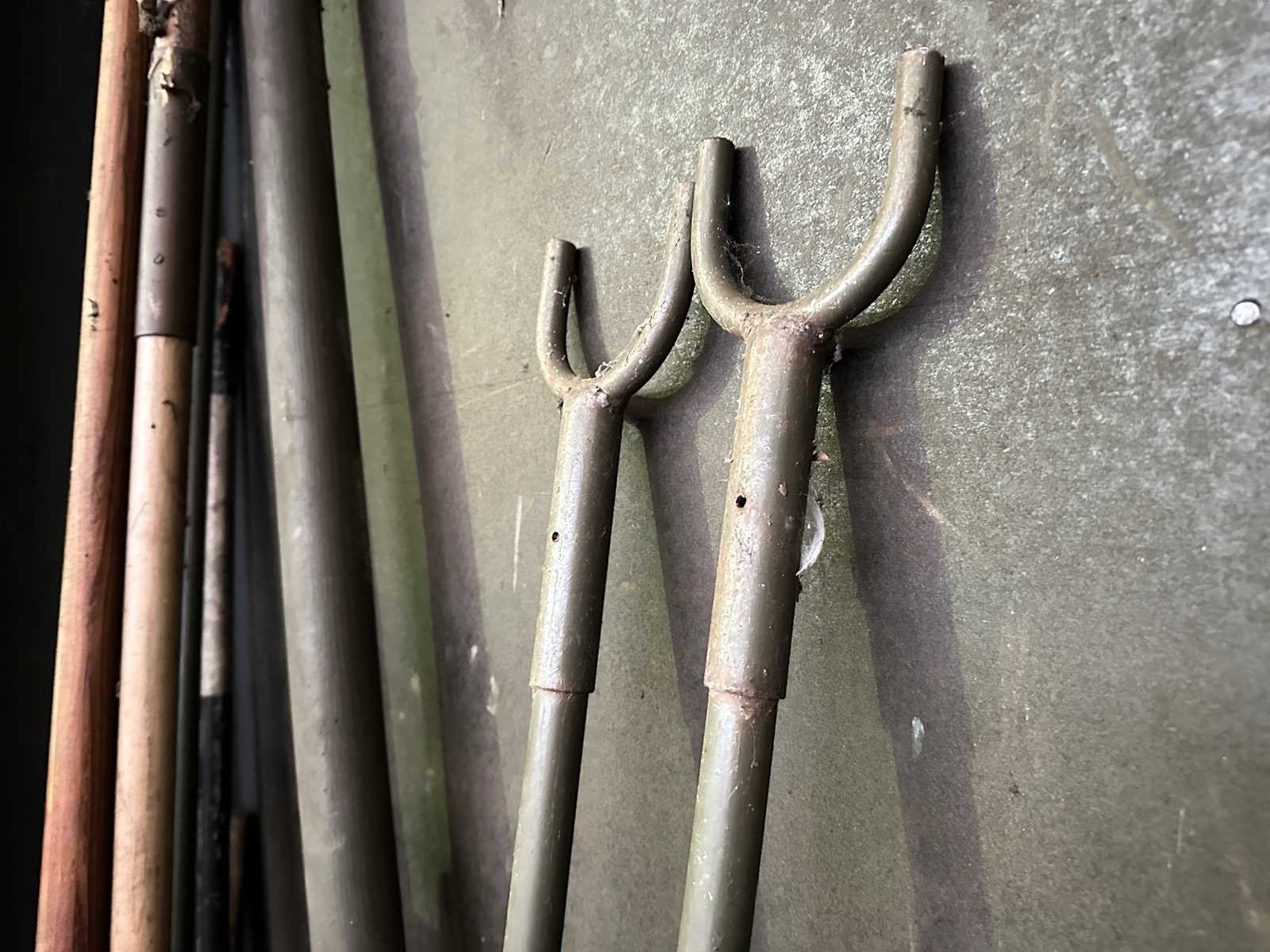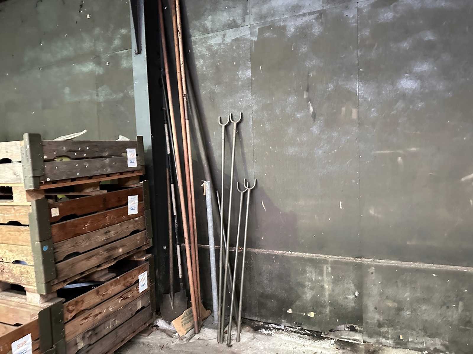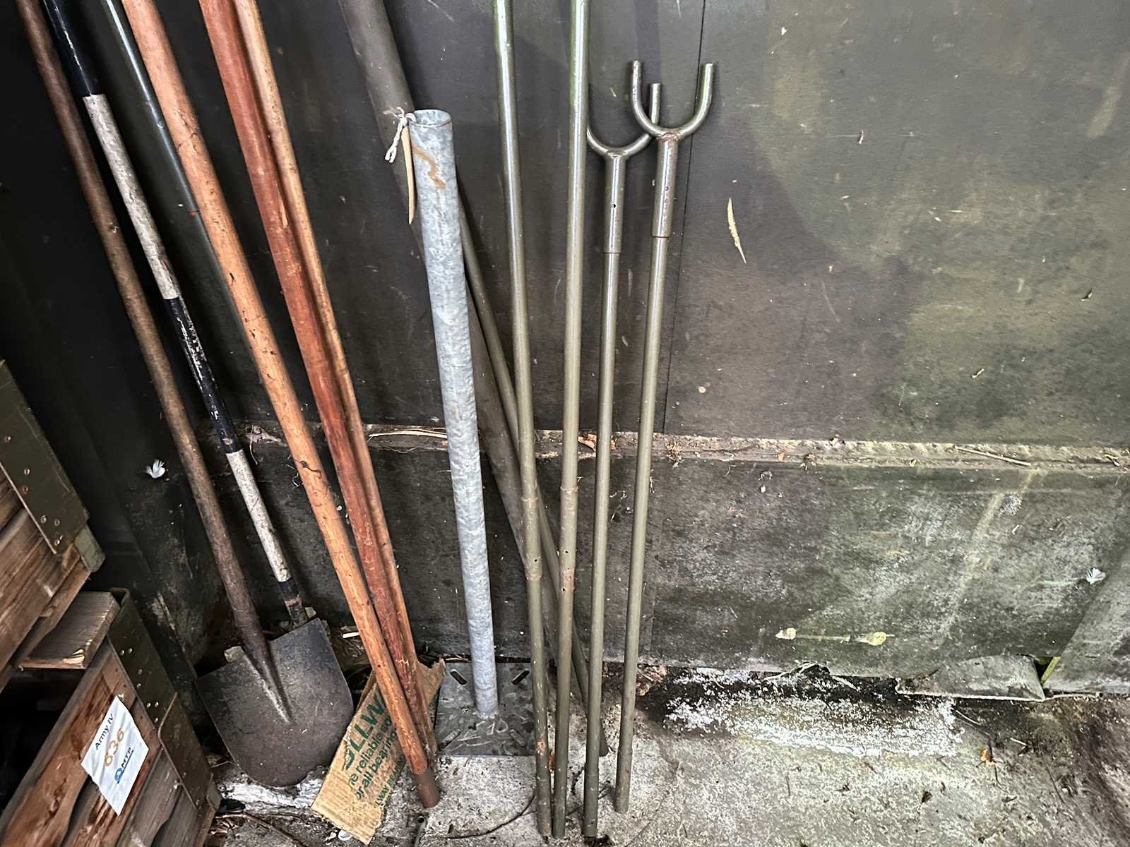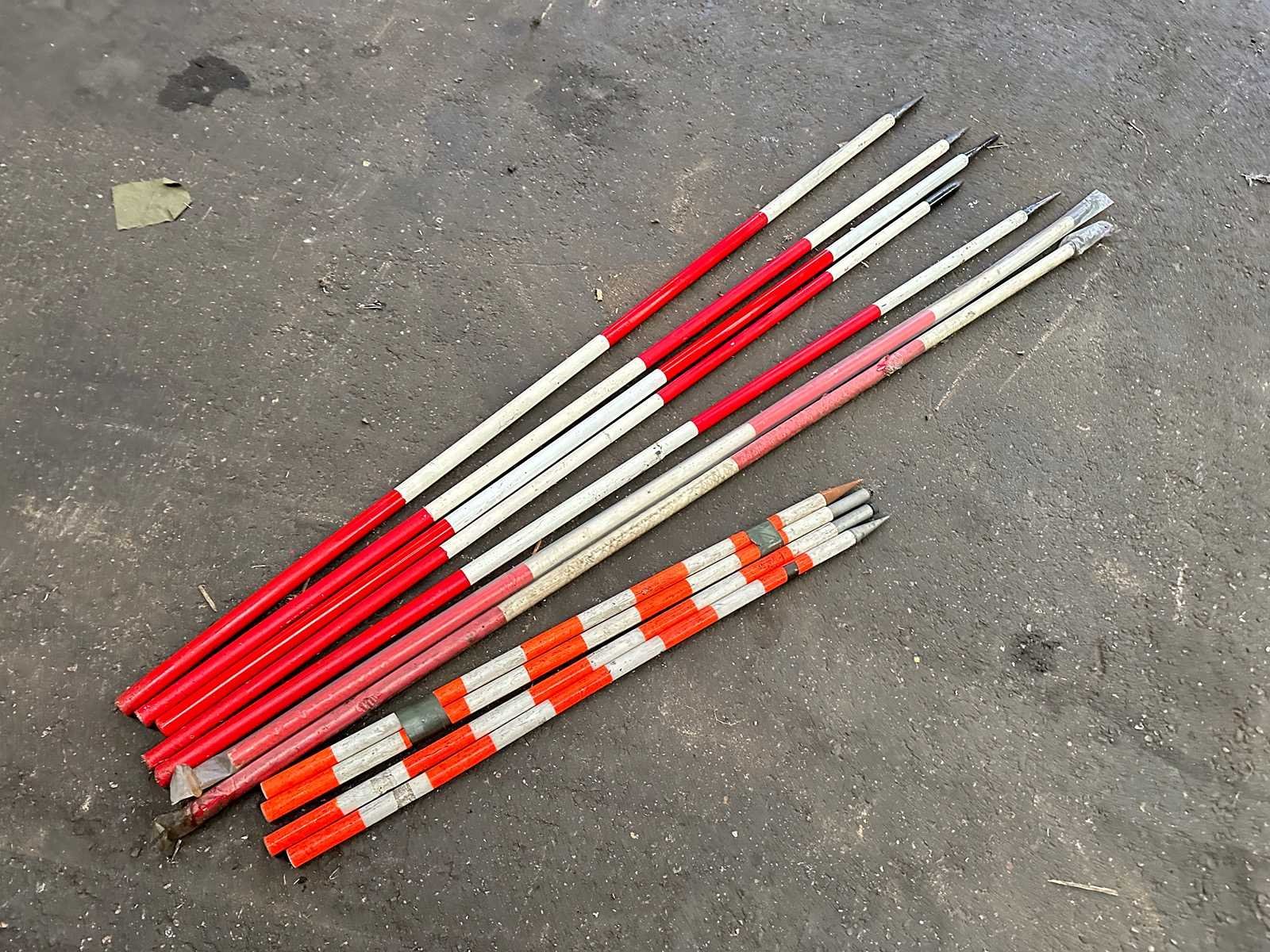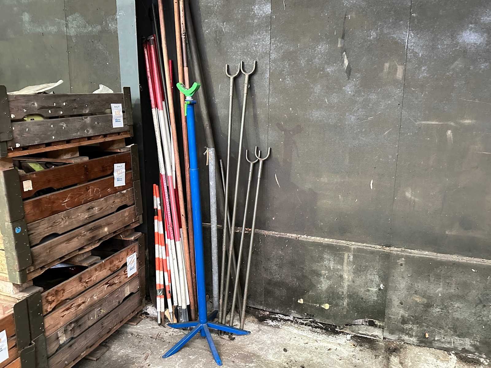 Deze partij bestaat uit jalons, een schop en een aantal houten stokken en metalen stangen en een verstelbare steun.