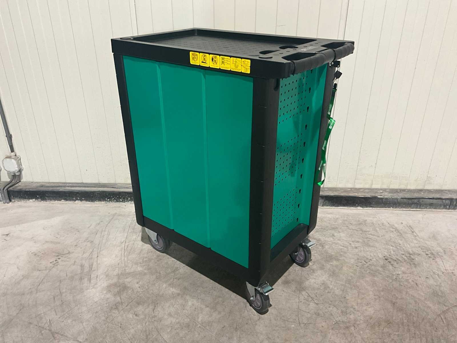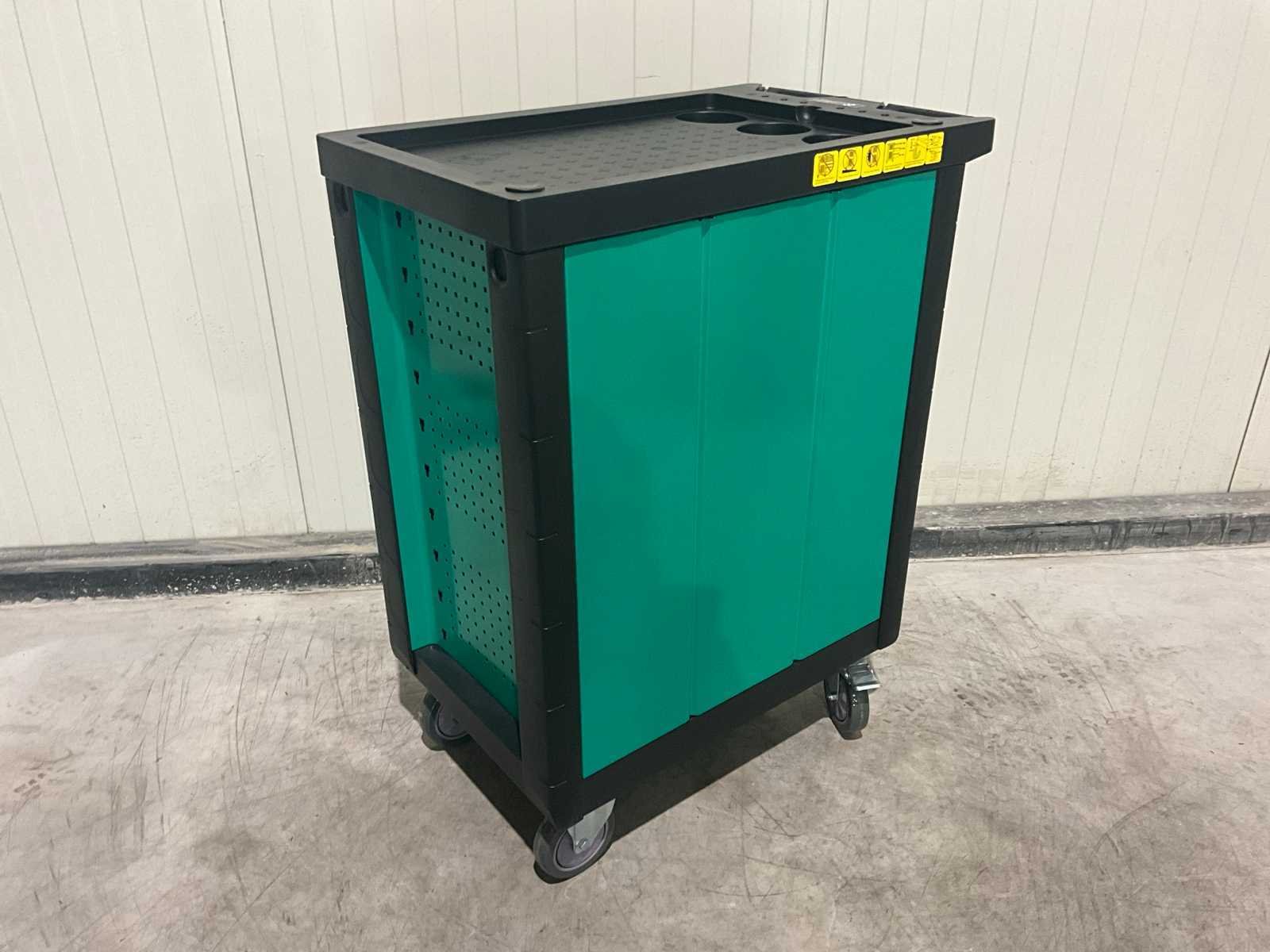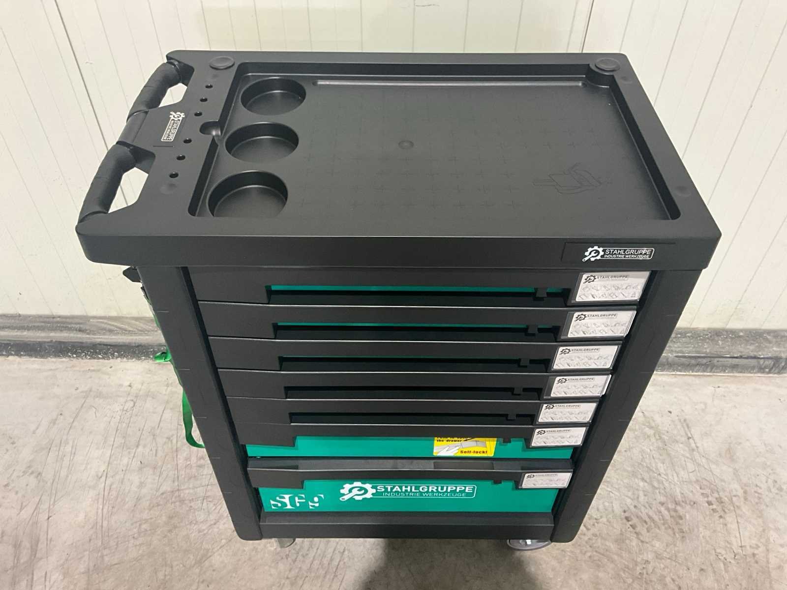 Voorzien van 7 lades waarvan 5 gevuld met gereedschap; professioneel chroom-vanadium gereedschap; heavy duty gereedschapswagen; stevig werkblad; 4 wielen; stevig handvat; ongebruikt in doos (transport afmetingen 80x50x105 cm) Merk: Stahlgruppe Type: SG9 Bouwjaar: 2025 Aantal laden: 7 Met inhoud: true Eigen gewicht: 78kg Totale afmeting L: 800mm Totale afmeting Breedte: 500mm Totale afmeting Hoogte: 1050mm