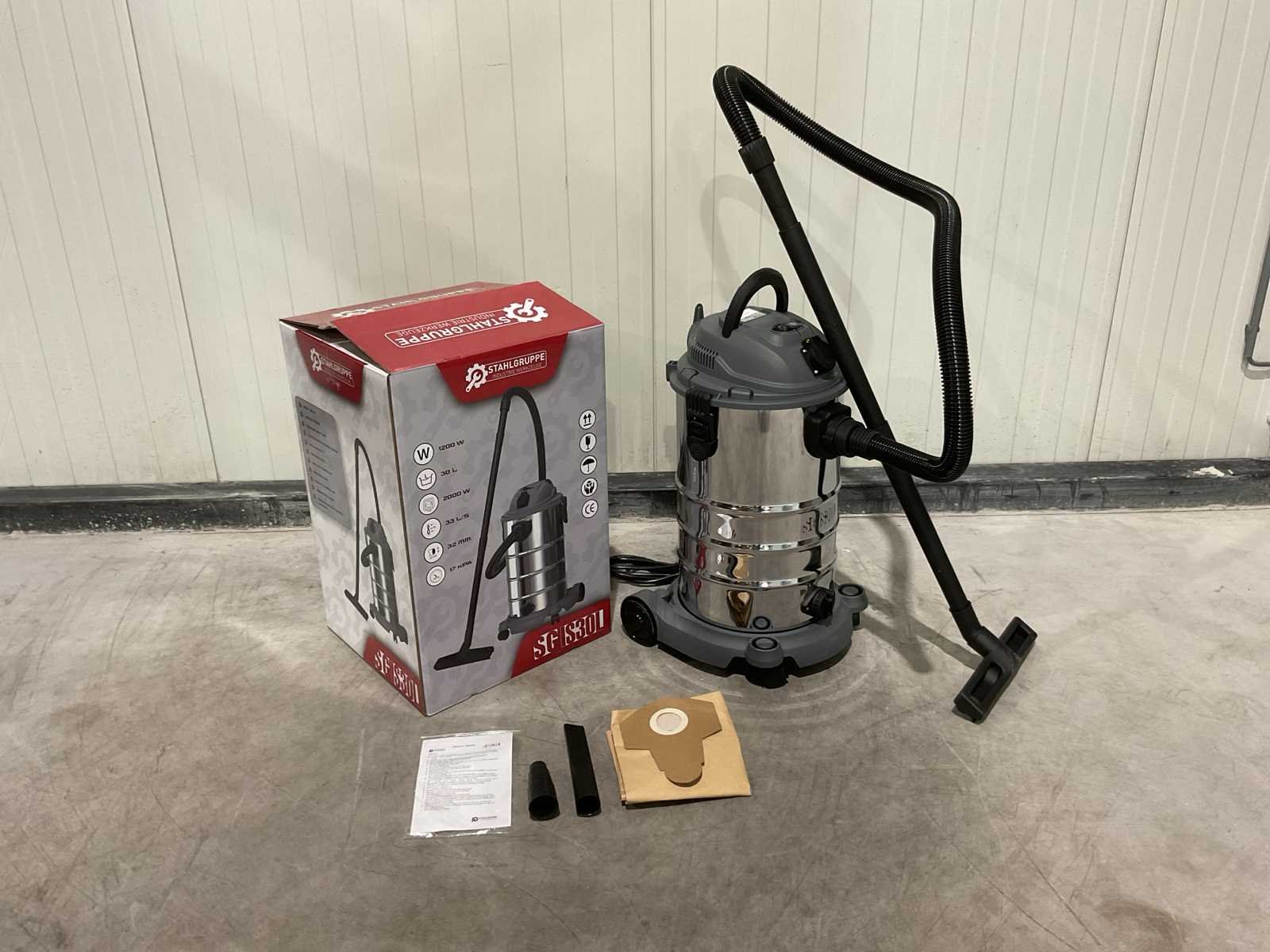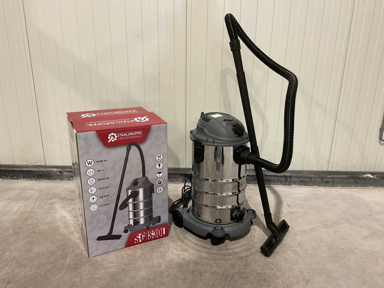 Voorzien van; 4 zwenkwielen; 4M stroomkabel; 1,5m Stofzuiger slang; Zuigkracht: 17 kPa; Extra stopcontact: 2000 W; Opbergruimte voor accessoires; 30ltr tank capaciteit; RVS Tank; Ongebruikt in doos (395x385x600 - 7,2 KG) Merk: Stahlgruppe Type: SG IS30L Bouwjaar: 2025 Vermogen: 1200W Zakloos: true Nat/droog zuiger: true Stopcontact: true Aansluiting: 220V