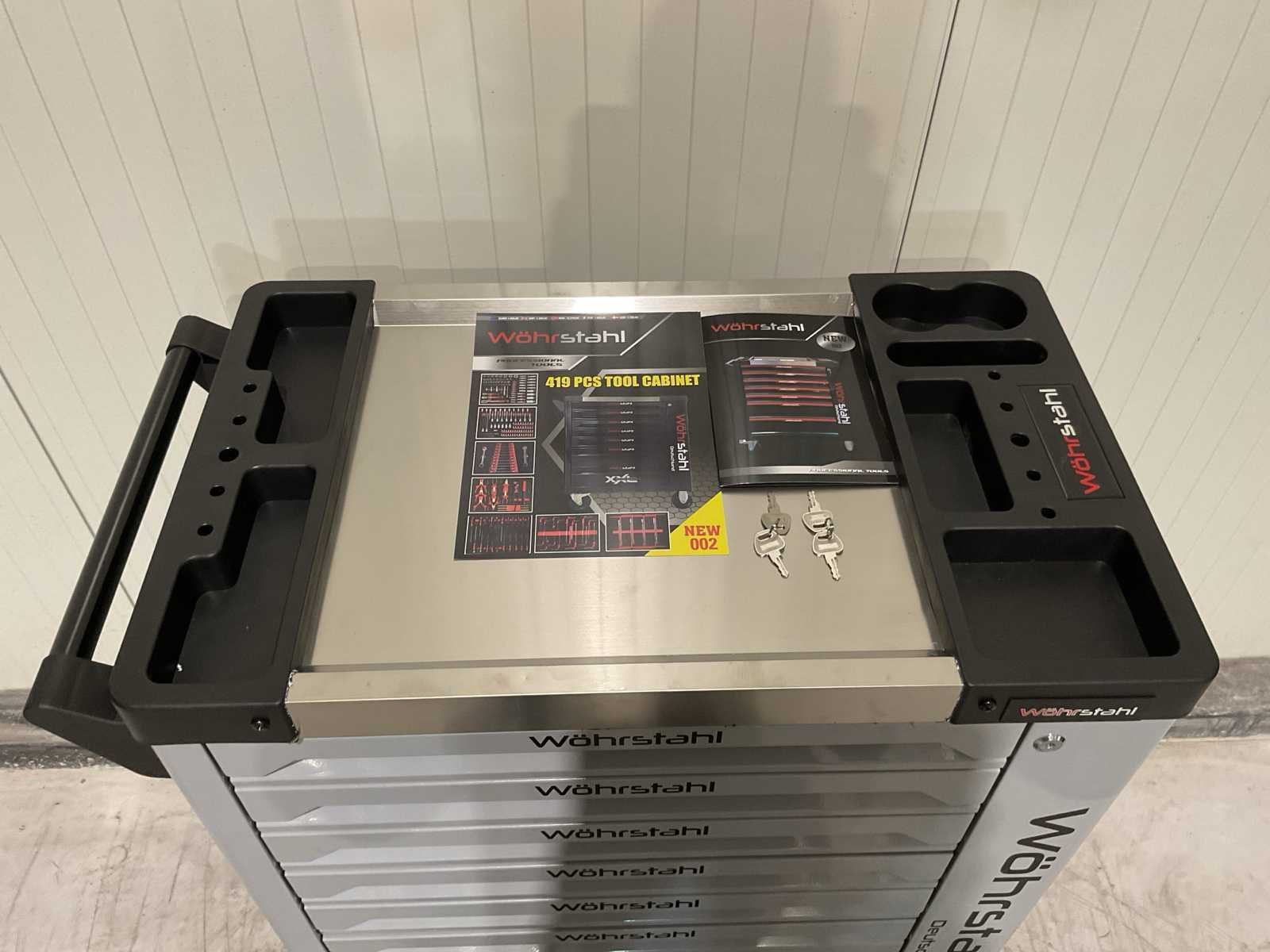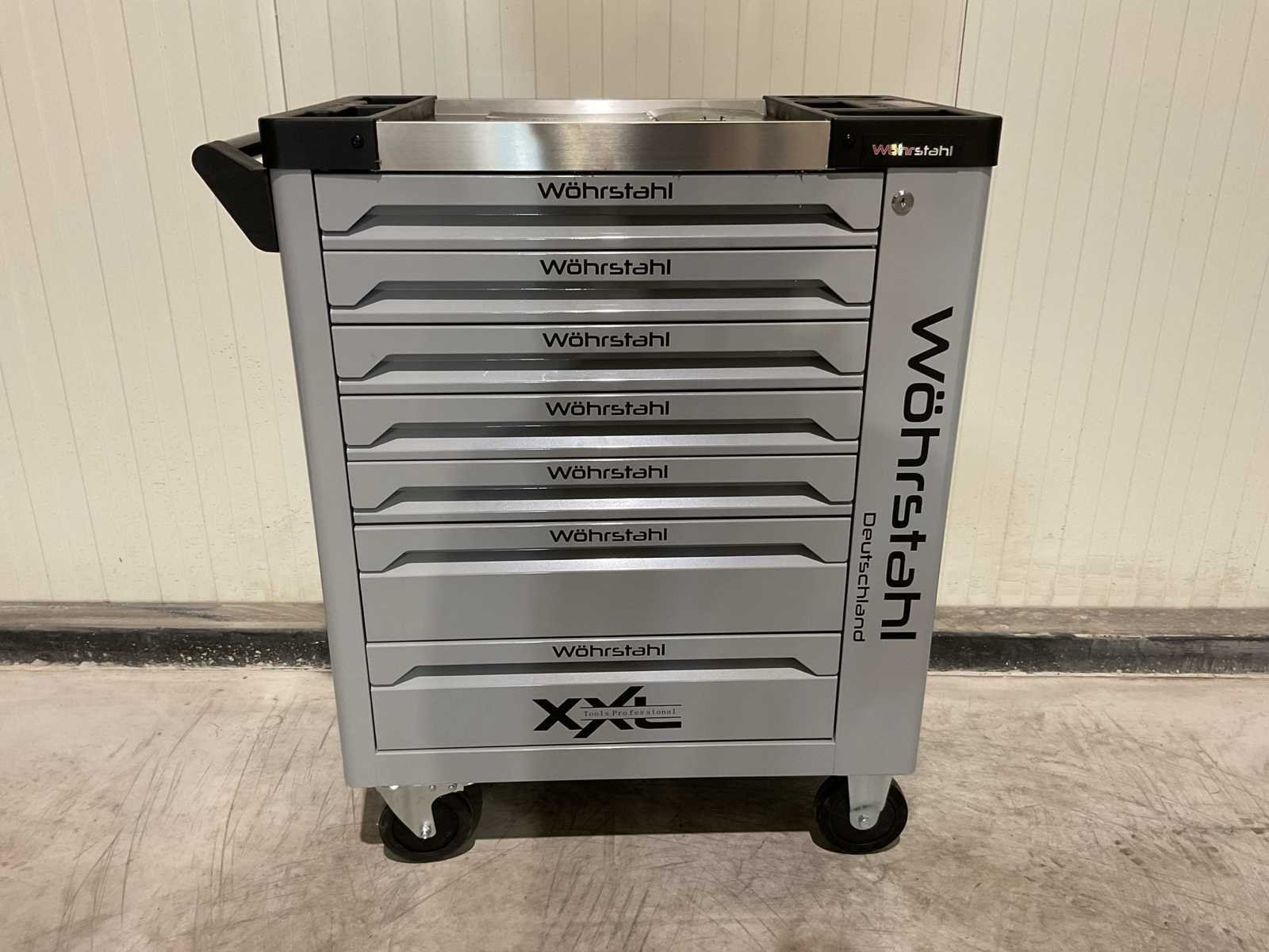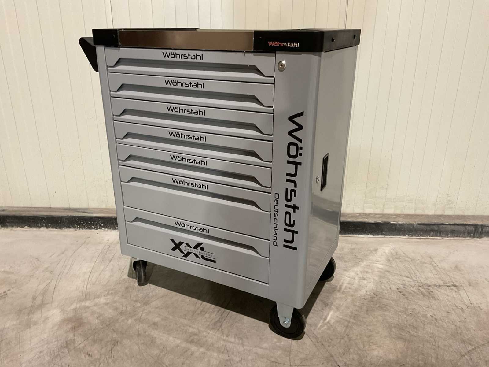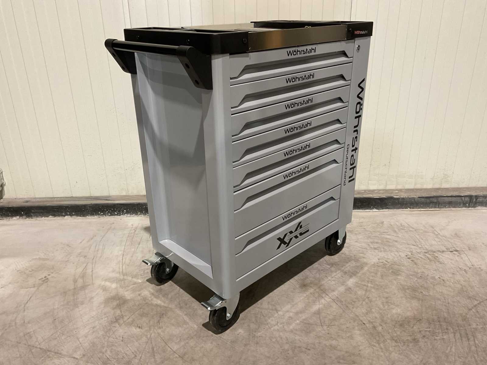Voorzien van 7 lades waarvan 7 gevuld met gereedschap; professioneel chroom-vanadium gereedschap; heavy duty gereedschapswagen; stevig werkblad; 4 wielen; stevig handvat; ongebruikt in doos (transport afmetingen 80x50x85 cm) Merk: Wöhrstahl Type: Deutschland 7/7 GRS Bouwjaar: 2025 Aantal laden: 7 Eigen gewicht: 75kg Totale afmeting L: 800mm Totale afmeting Breedte: 500mm Totale afmeting Hoogte: 850mm