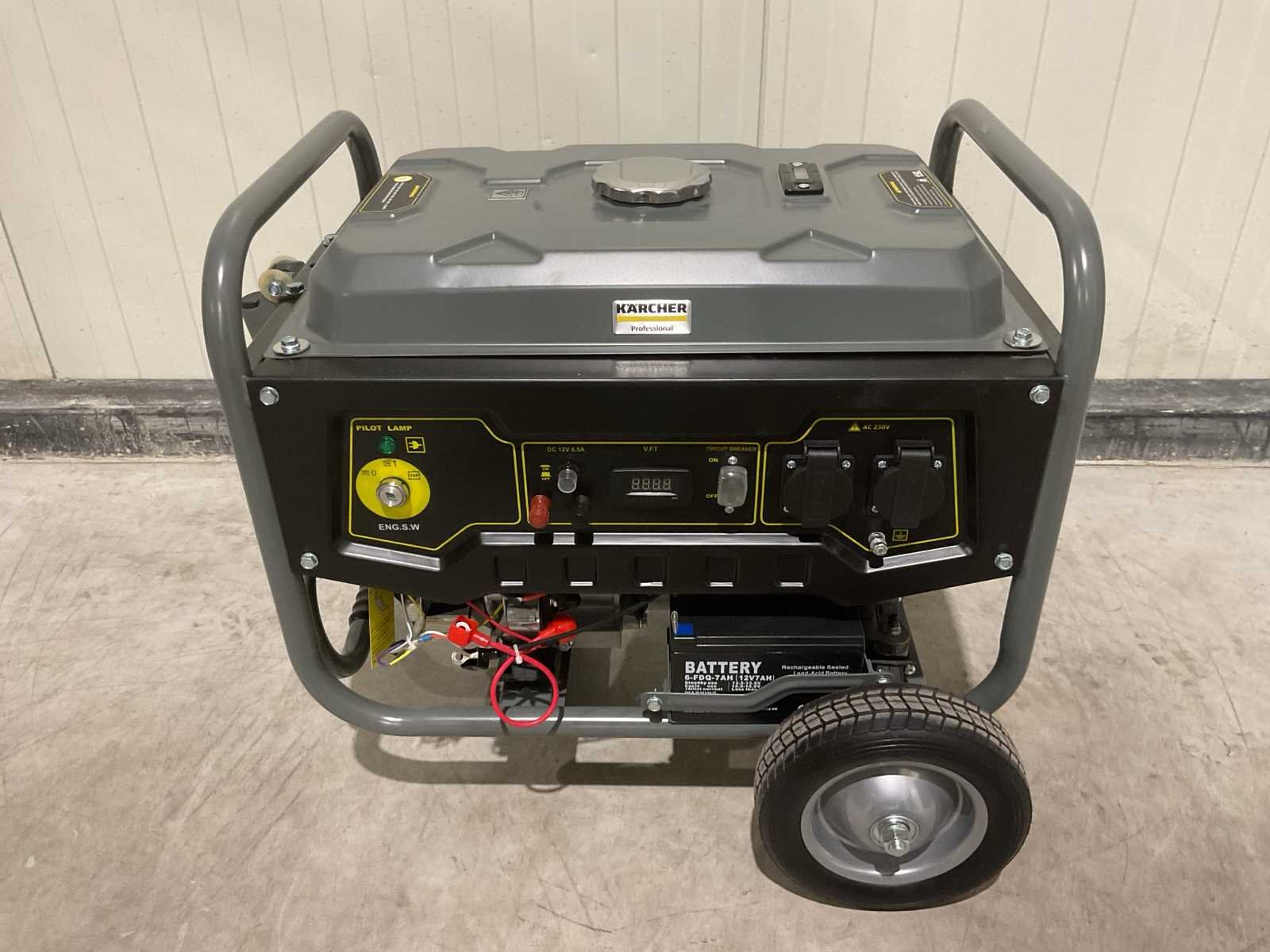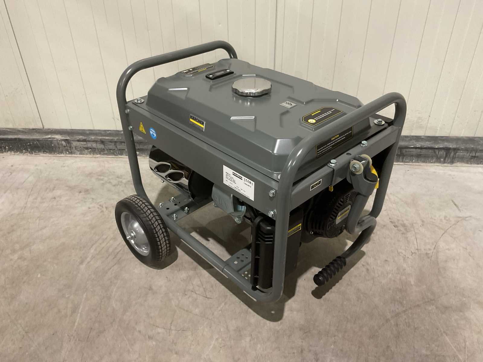 Voorzien van Spanning (Ph/V) 1 / 230; geluidsniveau (dB(A)) 74; Nominaal vermogen (kW)2,8; Vermogen (kW) 3; Type aandrijving: Benzine; Cilinderinhoud (cm³) 208; 1" adapter voor aansluiten van tuinslangen aan de drukzijde (kW/per uur) 4 / 5,4; Brandstofverbruik (l/u) 2,3; Tankinhoud (l) 15; Looptijd bij 50% output (u) 12; Looptijd bij 100% output (u) 6,5; DC-uitgang (12 V); Beschermingsklasse IP 23; Lage olie- en overbelastingsbeveiliging; Brandstofmeter; Eenfase-aansluiting type F (Schuko); Automatische spanningsregeling (AVR); Ongebruikt in doos Merk: Kärcher Type: PGG 3/1 Bouwjaar: 2025 Capaciteit.: 2.8kVA Benzine: true Motorvermogen (kW): 3kW Luchtgekoeld: true Mobiel: true Machinegewicht: 56.9kg Totale afmeting L: 7150mm Totale afmeting Breedte: 480mm Totale afmeting Hoogte: 470mm