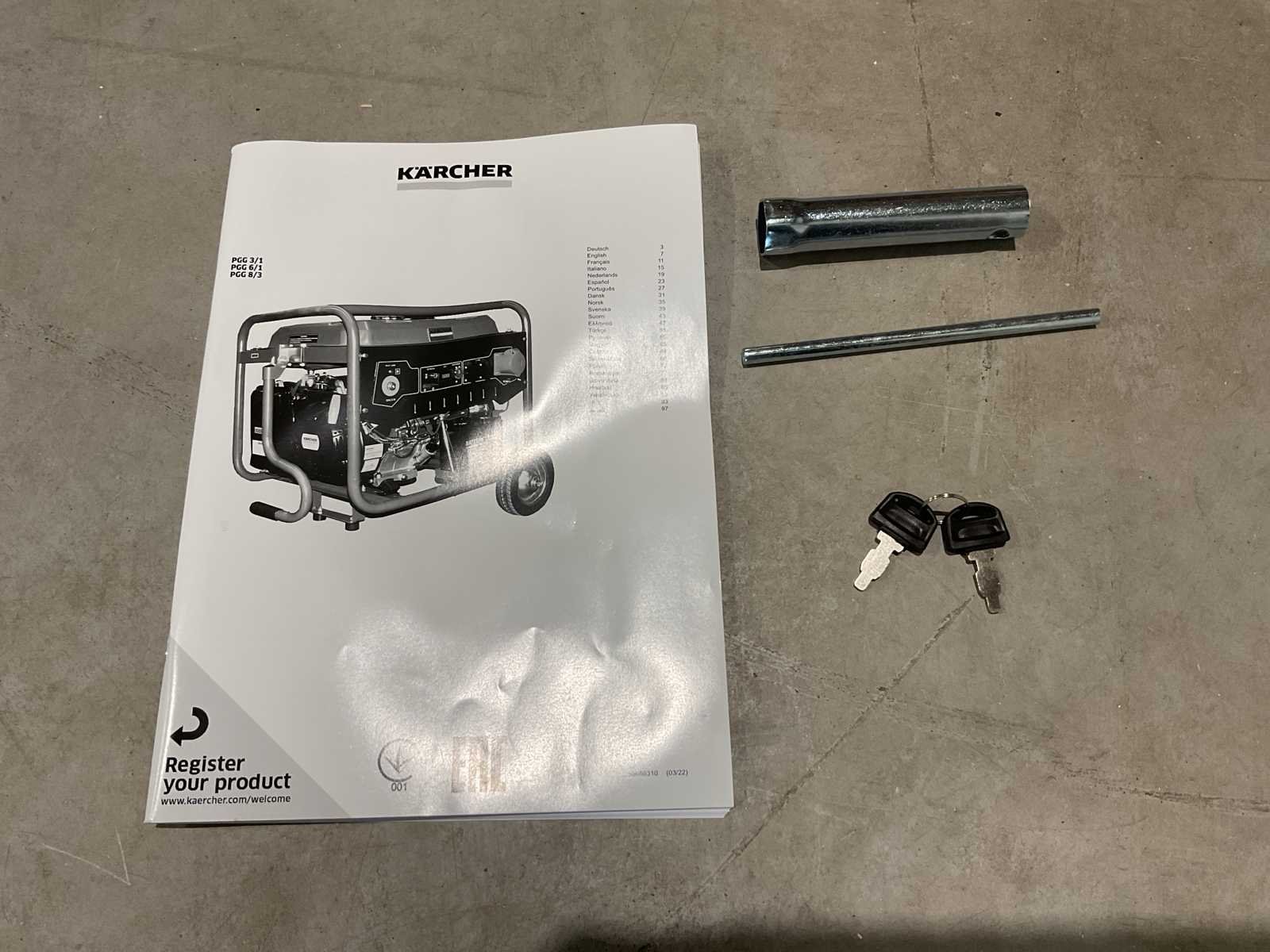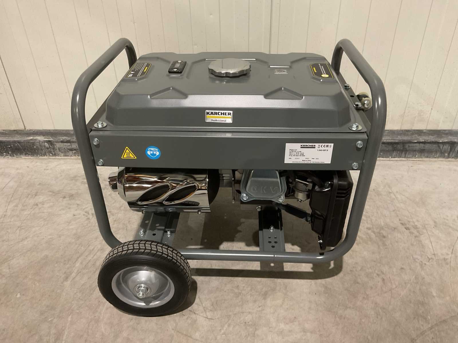 Voorzien van Spanning (Ph/V) 1 / 230; geluidsniveau (dB(A)) 74; Nominaal vermogen (kW)2,8; Vermogen (kW) 3; Type aandrijving: Benzine; Cilinderinhoud (cm³) 208; 1" adapter voor aansluiten van tuinslangen aan de drukzijde (kW/per uur) 4 / 5,4; Brandstofverbruik (l/u) 2,3; Tankinhoud (l) 15; Looptijd bij 50% output (u) 12; Looptijd bij 100% output (u) 6,5; DC-uitgang (12 V); Beschermingsklasse IP 23; Lage olie- en overbelastingsbeveiliging; Brandstofmeter; Eenfase-aansluiting type F (Schuko); Automatische spanningsregeling (AVR); Ongebruikt in doos Merk: Kärcher Type: PGG 3/1 Bouwjaar: 2025 Capaciteit.: 2.8kVA Benzine: true Motorvermogen (kW): 3kW Luchtgekoeld: true Mobiel: true Machinegewicht: 56.9kg Totale afmeting L: 7150mm Totale afmeting Breedte: 480mm Totale afmeting Hoogte: 470mm