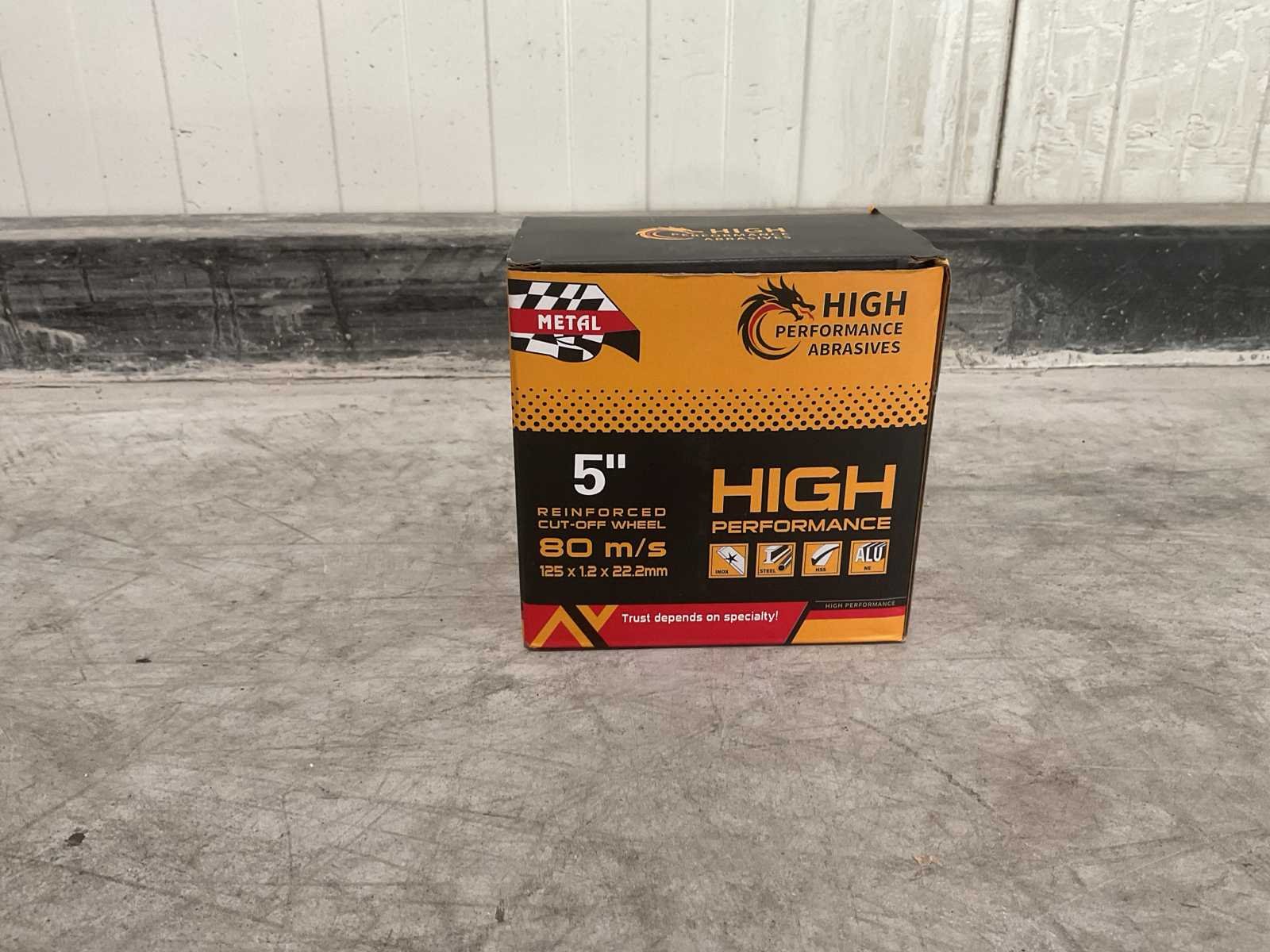 Voorzien van 1 doos met 6 doosjes van 50 stuks; ongebruikt in doos Merk: High Performance Abrasives Model: 125 mm Schijfdiameter: 125mm Geschikt voor: Inox,staal, HSS, ALU Gewicht: 19kg Lengte: 45cm Breedte: 30cm Hoogte: 20cm