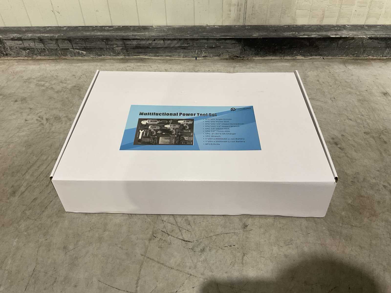 Voorzien van 1x Slagmoersleutel 1/2" Model: R8001; 1x Boormachine Model: R7002; 1x Slagschroefmachine 1/4" Model: R7201-1; 1x Haakse slijper Model: AP18-03; 1x Li-ion Accu lader; 1x Li-ion Accu 20V 2Ah; 1x Li-ion Accu 20V 4Ah; 5x Doorslijp schijf;1x Borenset 9 Pcs; 1x 1/4" 65mm ADA; 1x 1/2"73mm ADA; 1x Sleutel Spankop Haakse slijpers; Ongebruikt in doos (Afmeting 55x39,5x10,5 - 7,3kg) Merk: Stahlgruppe Type: Multifunctioneel power tool set Bouwjaar: 2025 Delig: 24 Met koffer: true Aansluiting: 220V