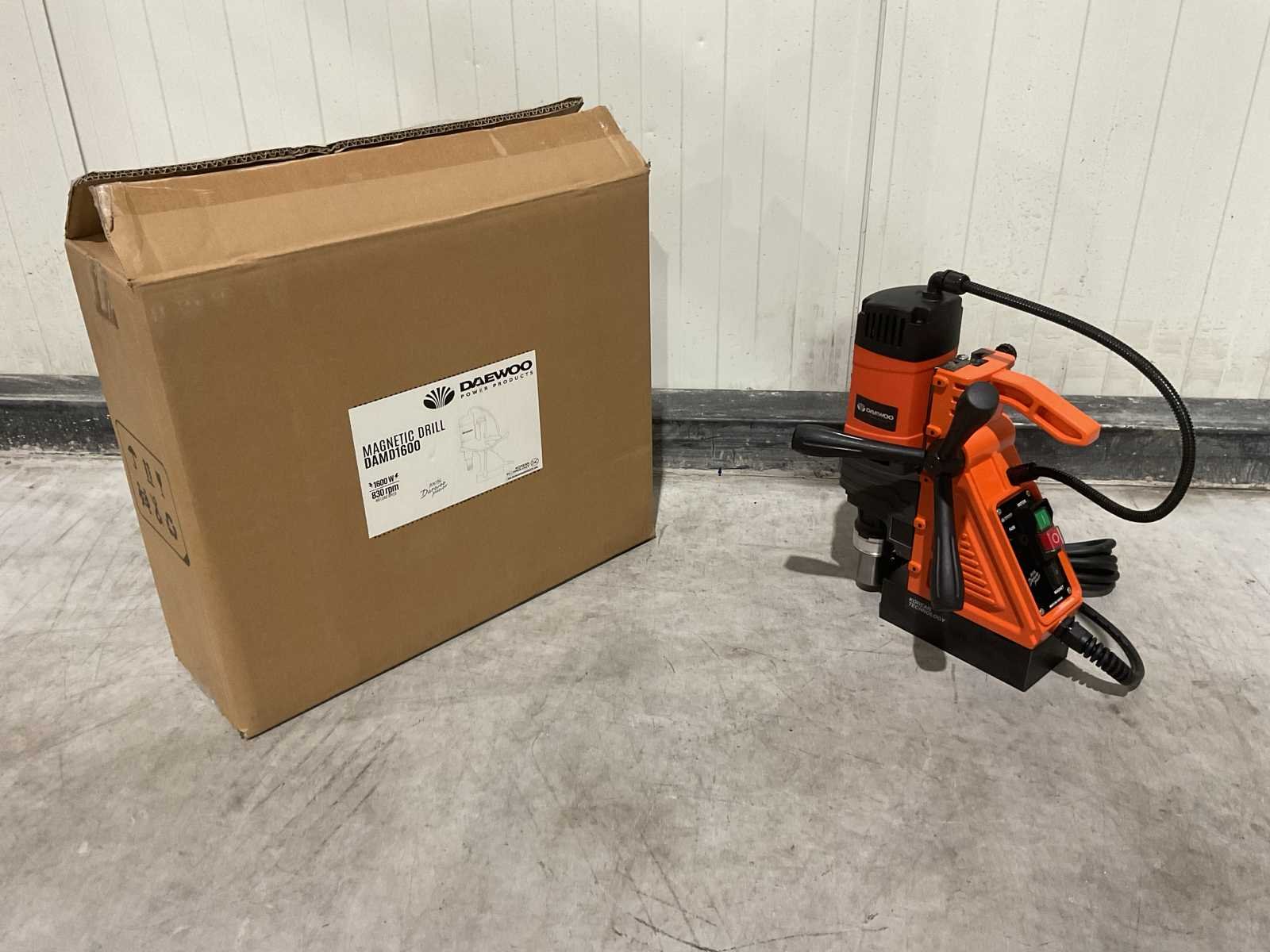 Voorzien van zekering; 3 inbussleutels; snelbinder; 3 handvaten; Boorcapaciteit: 35 mm; Boordiepte: 210 mm; Snelheid: Tot 830 rpm; Kleefkracht: 16000 N; Vermogen: 1600 kW; Aansluiting: 230 V; Automatisch koelsysteem; ongebruikt in doos Merk: Daewoo Type: DAMD1600 Bouwjaar: 2025 Boorcapaciteit: 35mm Boordiepte: 210mm Snelheid van n =: 830rpm Snelheid tot n =: 830rpm Kleefkracht: 16000N Vermogen: 1600kW Aansluiting: 230V Met koffer: true