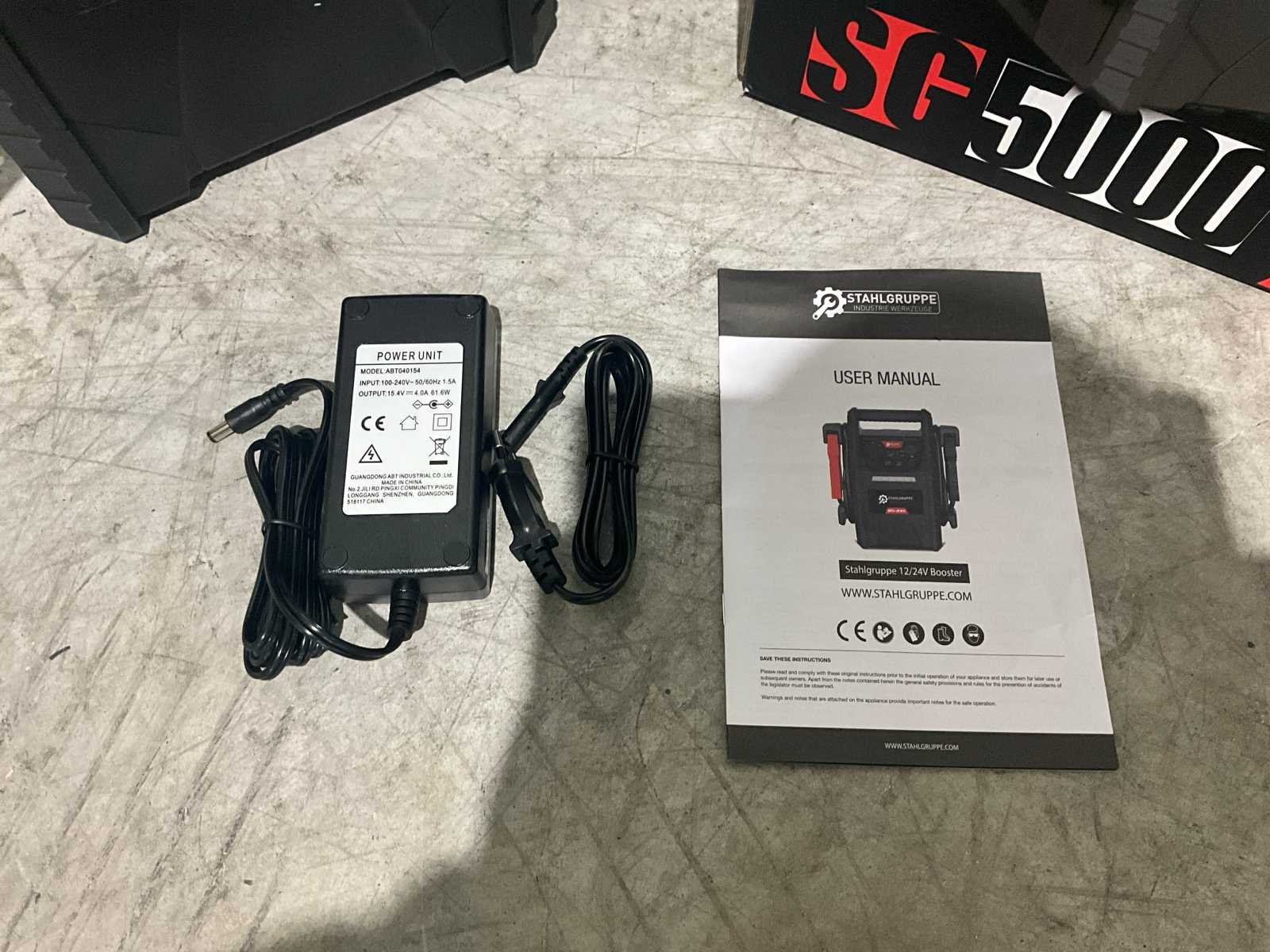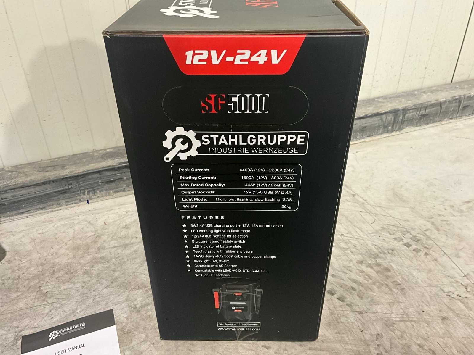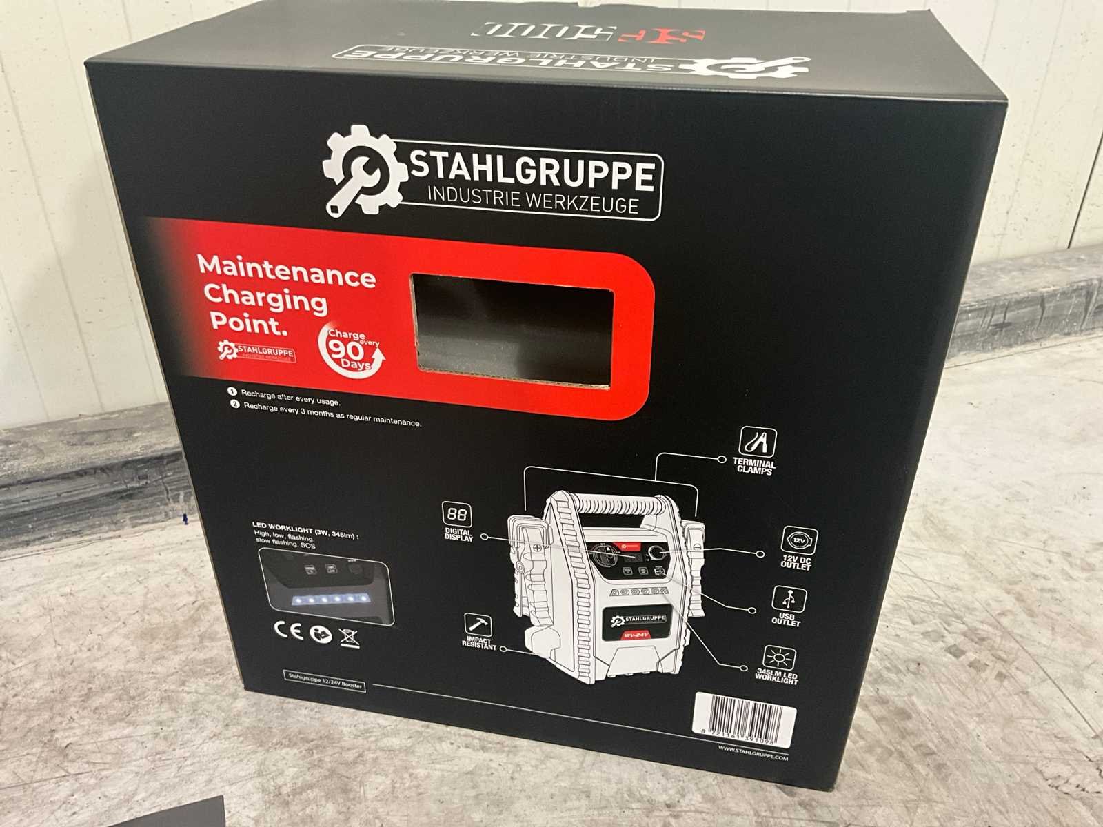 Voorzien van USB lader; 12V lader; led werklamp met diverse standen; 12V 2200A/4400A; 24V 800A/1600A; ongebruikt in doos Merk: Stahlgruppe Type: 4400A Bouwjaar: 2025 Laadstroom: 4400A Aansluiting: 230V Eigen gewicht: 22kg Totale afmeting L: 500mm Totale afmeting Breedte: 300mm Totale afmeting Hoogte: 500mm