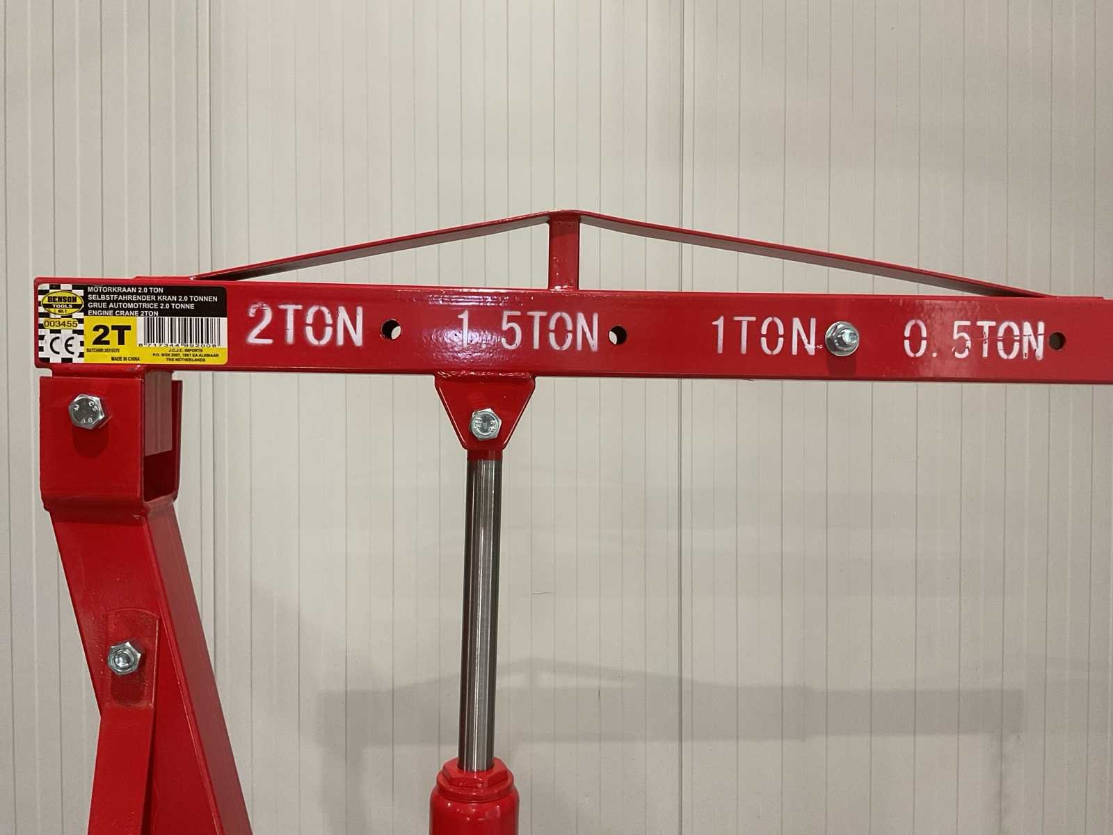 Voorzien van zwenk wielen; telescoop arm; 4 verschillende standen (500, 1000, 1500 en 2000 kilo); lengte van 107 tot 160 cm; Maximale reikhoogte van 270 cm; Binnenbreedte tussen de wielen: 88 cm en de hoogte van de wielen bedraagt 12 cm; Ongebruikt in doos (Afmeting transport verpakking doos 1 - 1385x310x155 mm / Doos 2 - 830x580x80 lxbxh, gewicht 75 kg) Merk: Benson Tools Type: 2 Ton Bouwjaar: 2025 Eigen gewicht: 75kg Totale afmeting Hoogte: 2700mm