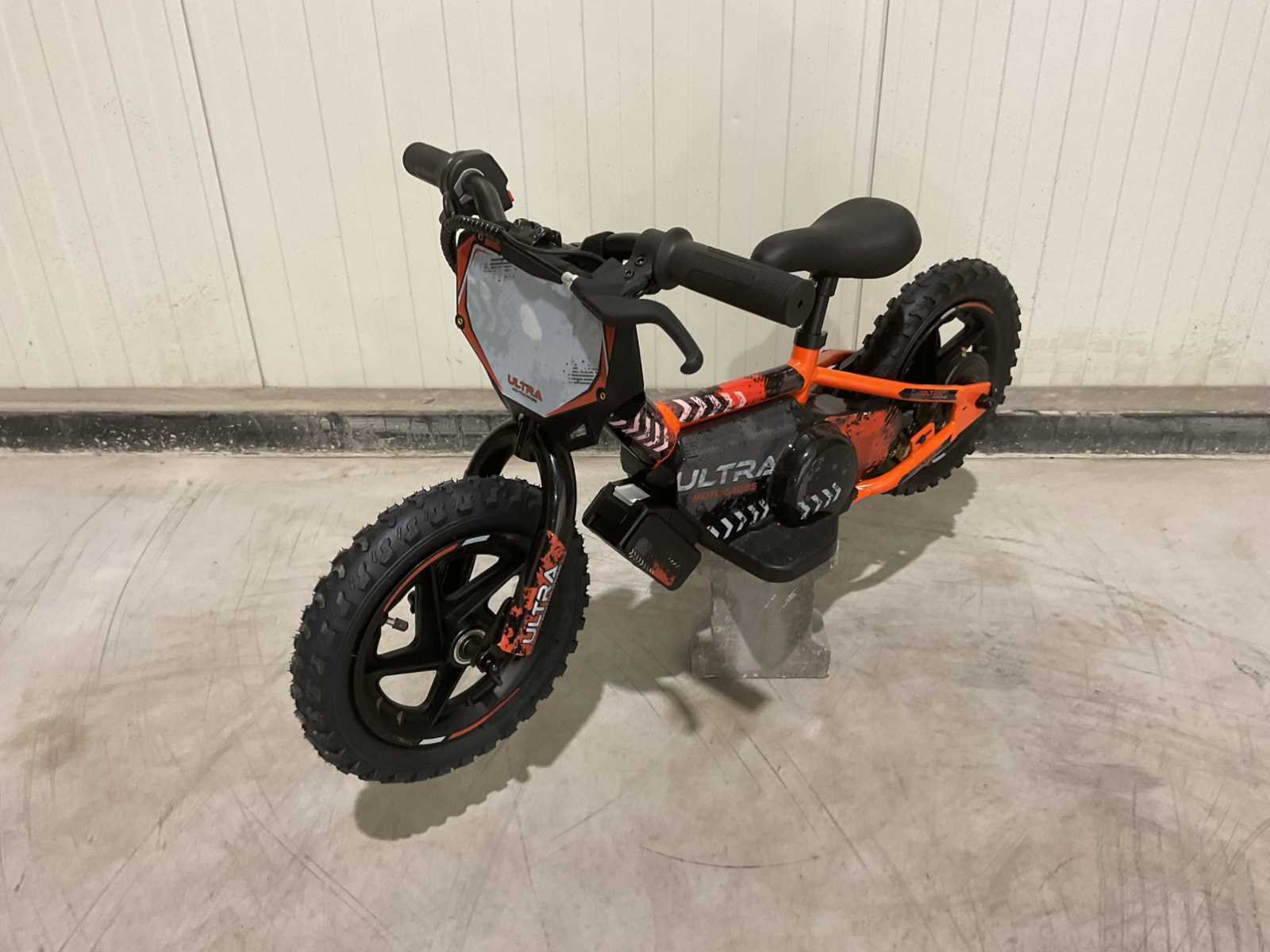 Voorzien van 200W elektrische motor; 2 verschillende snelheden; verstelbaar zadel; verwijderbare accu; bandenmaat 12” inch; ongebruikt in doos (transport afmetingen 90x25x45 cm) Merk: Ultra Motocross Product type: TRX200 Gewicht: 10kg