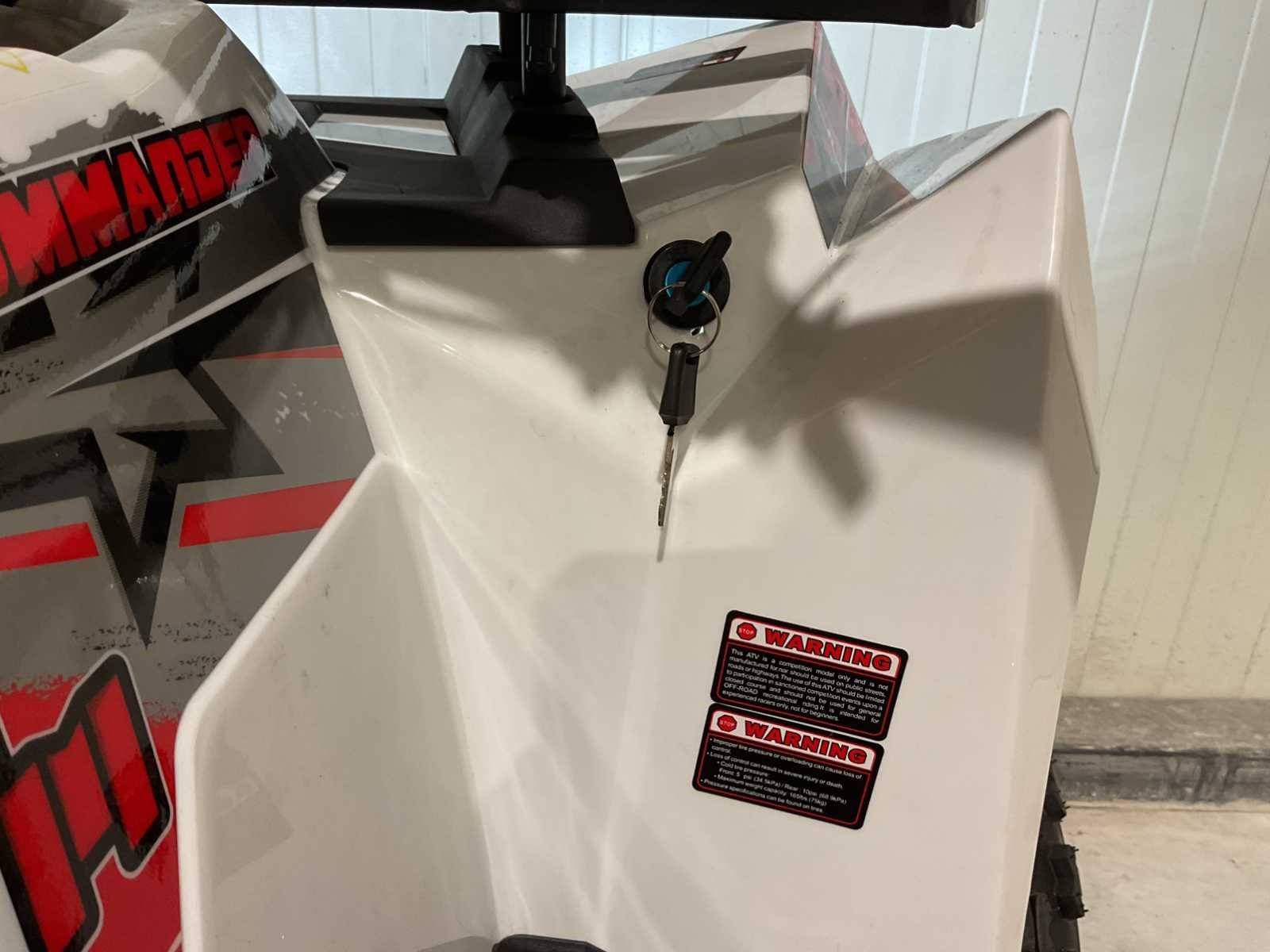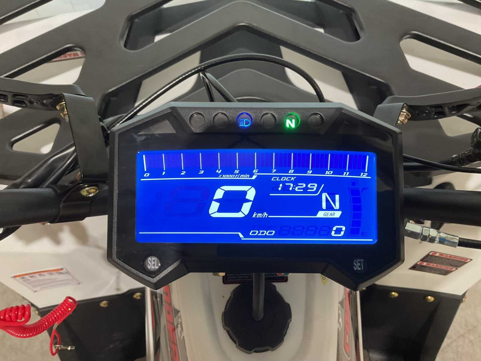 Voorzien van elektrische start; bandenmaat 8” inch; hydraulische schijfremmen; LCD scherm; 2 sleutels; ongebruikt in krat (transport afmeting 135x80x70 cm) Merk: Ultra Motocross Product type: Commander 125 Gewicht: 142kg Transmissie: Semi automaat Bouwjaar: 2025 Cilinderinhoud: 125cc Brandstof: Benzine