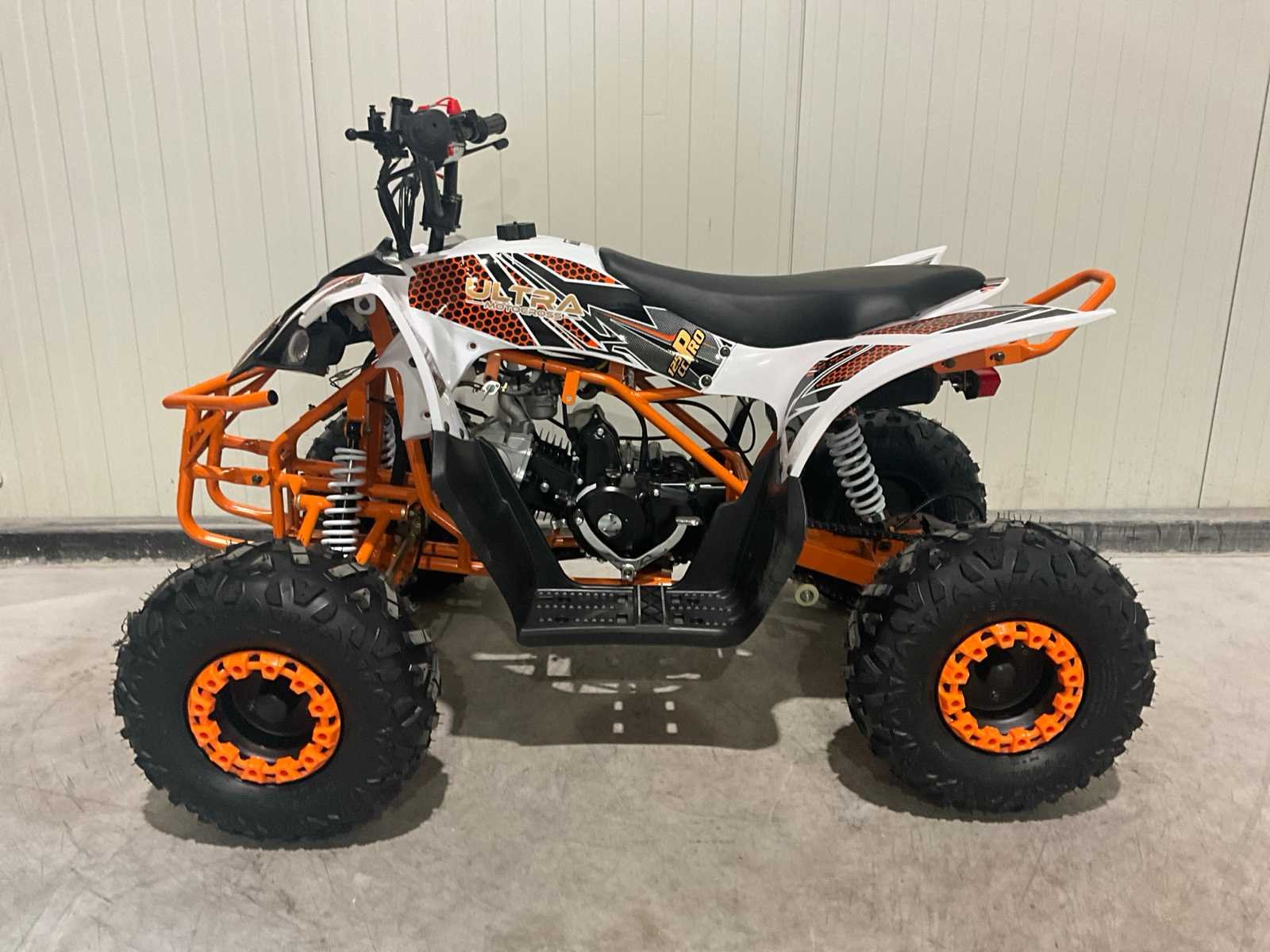 Voorzien van elektrische start; 4 takt; 125 cc; hydraulische schijfremmen; bandenmaat 7” inch; 2 sleutels; ongebruikt in krat (transport afmetingen 130x80x70 cm) Merk: Ultra Motocross Product type: ATX 125 Revolt Gewicht: 83kg Transmissie: Semi automaat Bouwjaar: 2025 Vermogen (pk): 9hp Cilinderinhoud: 125cc