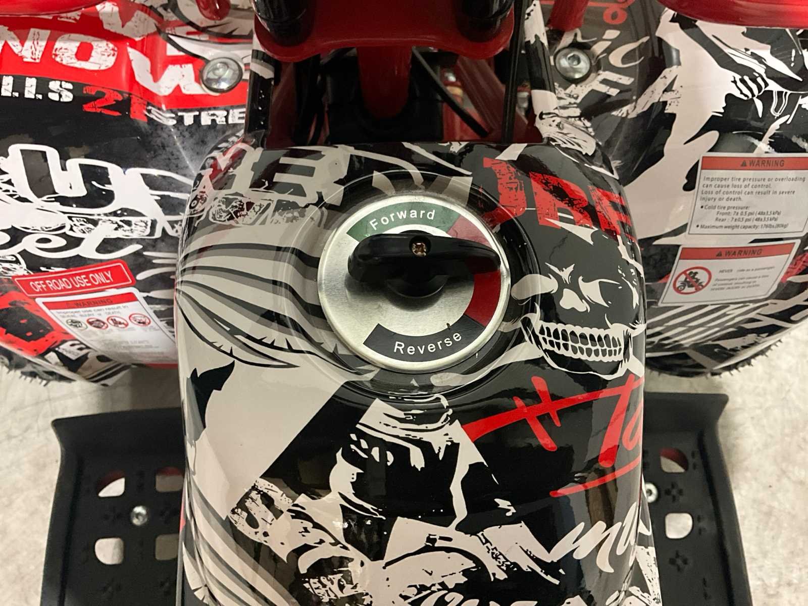 Voorzien van 1000W 48V elektrische motor; ouderen sleutel 3 verschillende snelheden; achterwielaandrijving; bandenmaat 6” inch; 2 sleutels; ongebruikt in doos (transport afmetingen 100x60x55 cm) Merk: Ultra Motocross Model: Met rekje Product type: ATX 1000 Gewicht: 60kg Aantal sleutels: 2 Transmissie: Automaat Bouwjaar: 2025 Vermogen (kW): 1kW Brandstof: Elektrisch