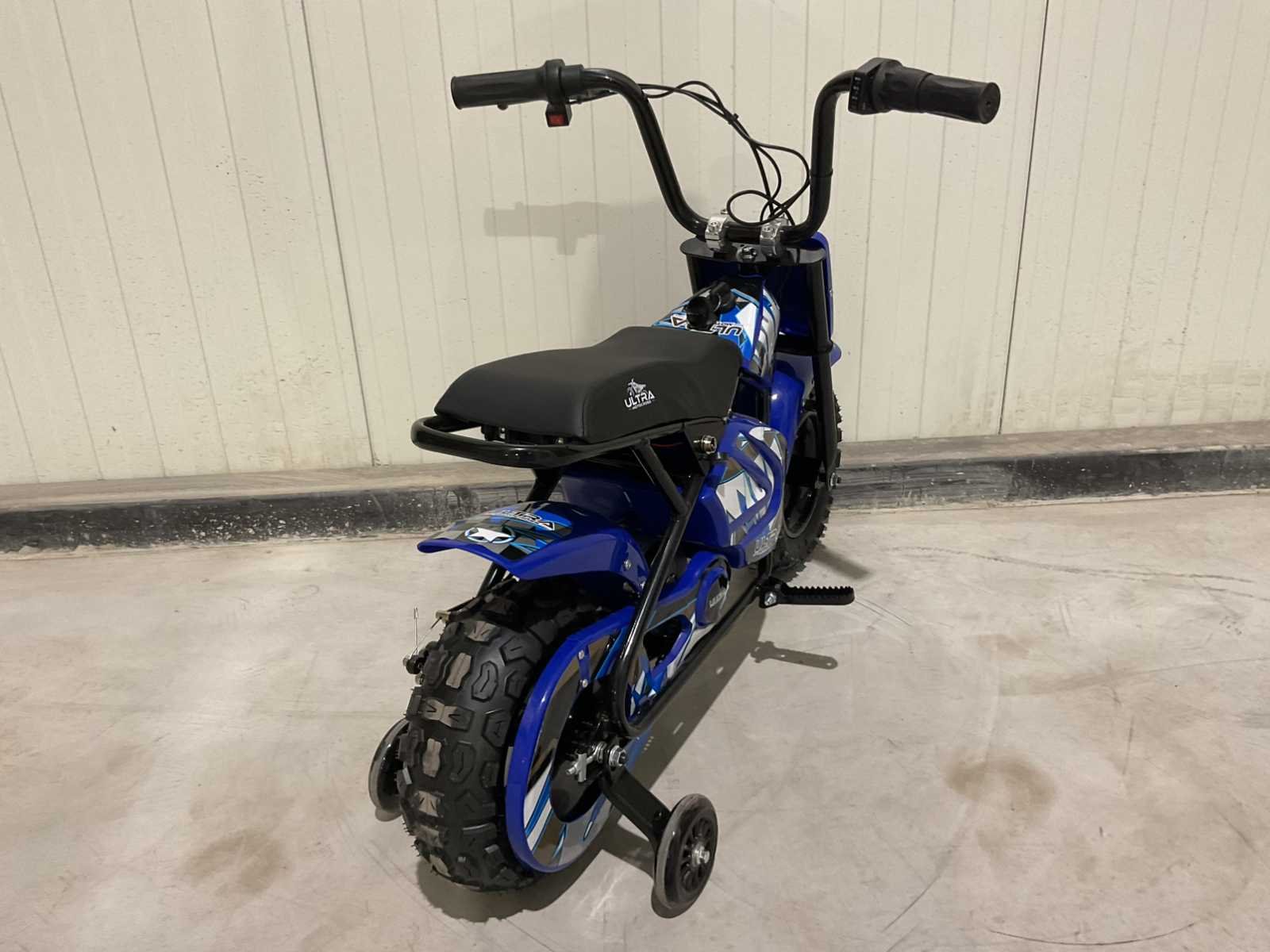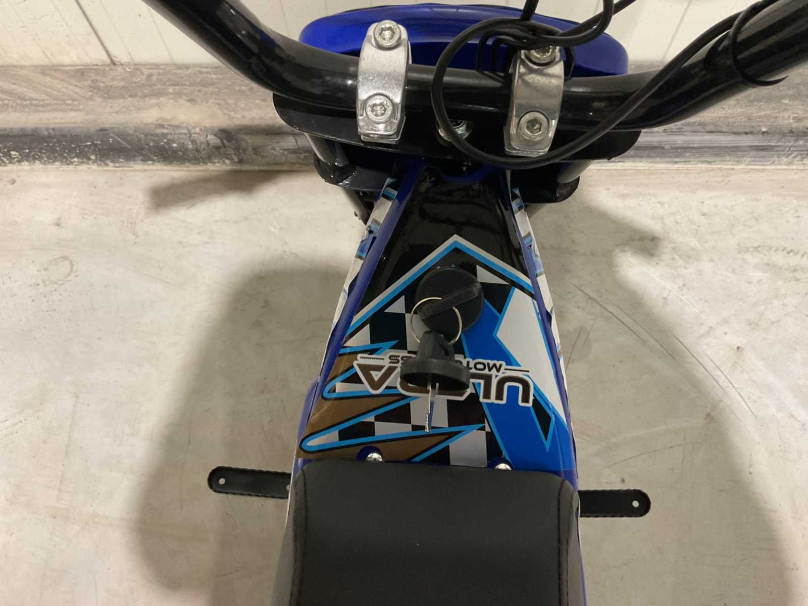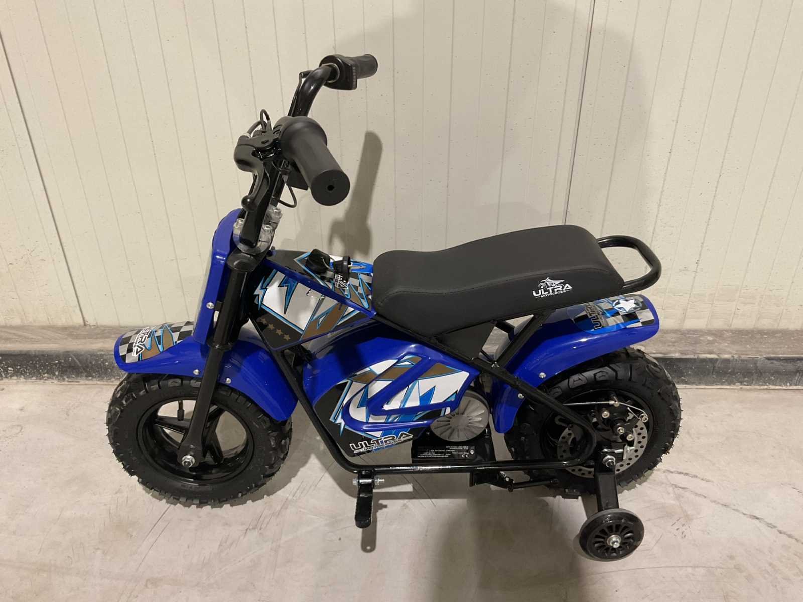 Voorzien van 250W elektrische motor; bandenmaat 7,5” inch; ongebruikt in doos (transport afmetingen 95x25x50 cm) Merk: Ultra Motocross Type: Monkey bike Gewicht: 23kg Transmissie: Automaat Aantal sleutels: 2 Bouwjaar: 2025